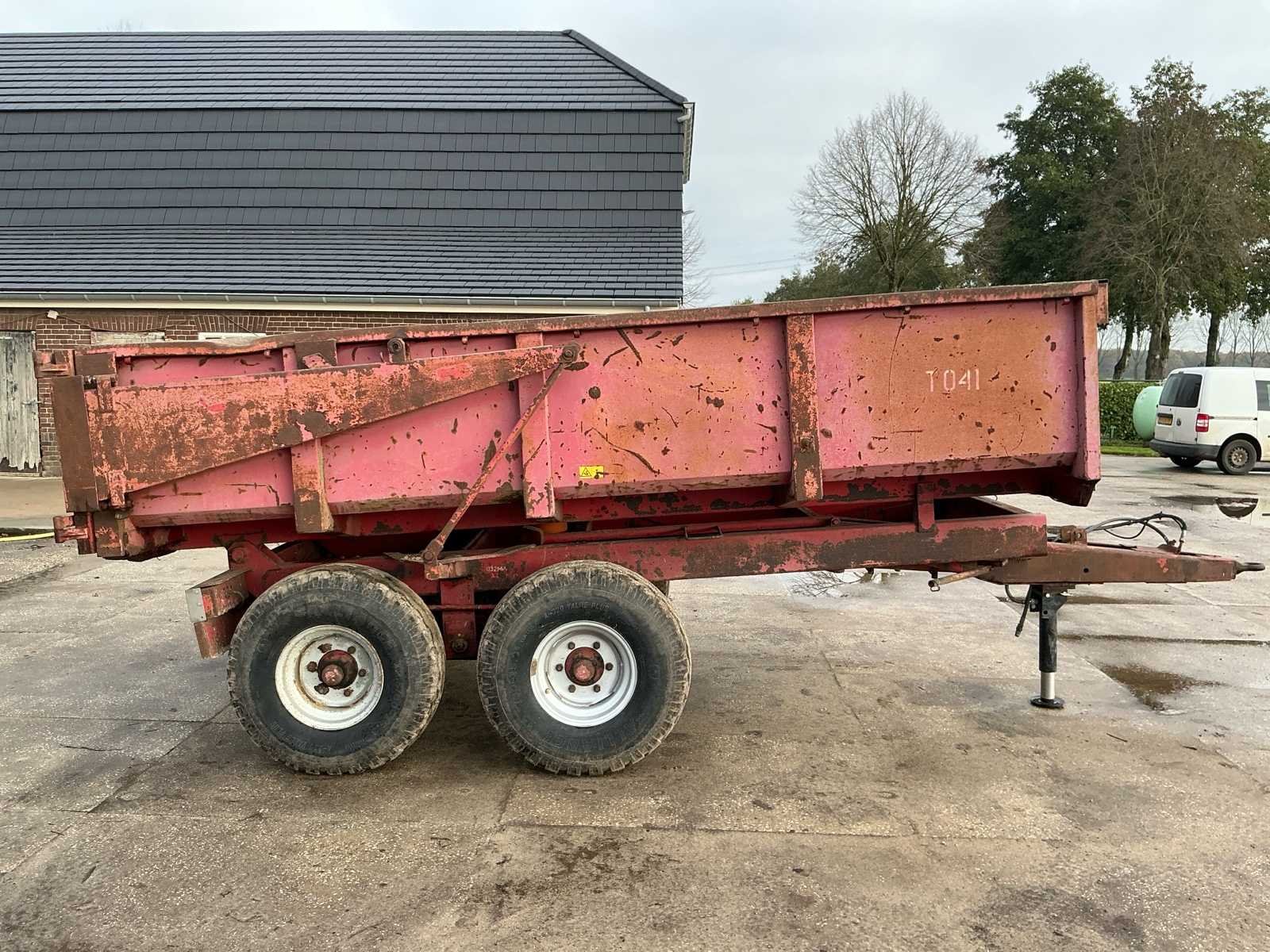 Nee Merk: Agromet Type: T041 Bouwjaar: 1984 Serienummer: 840405 Kenteken: LGB-67-D Opslag cap.: 8m³ Aantal assen: 2 Bandenmaat: 12.5/80-153 Totaal max. gewicht: 8t Totale afmeting L: 5300mm Totale afmeting Breedte: 2300mm Totale afmeting Hoogte: 1980mm