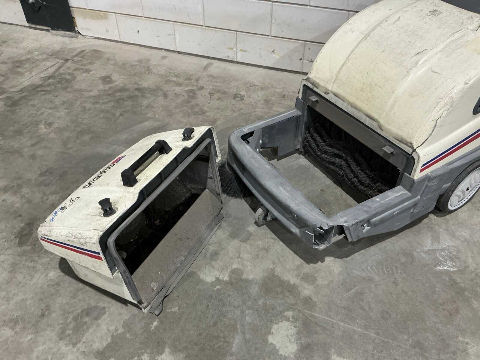 Voorzien van: 2 borstels, uitneembare afvalbak, afzuigfunctie, elektrische aandrijving, acculader Nee Merk: Dulevo Type: 700 Sprint Werkbreedte: 700mm Elektrisch: true Accu lader: true Aansluiting: 230V Totale afmeting L: 1300mm Totale afmeting Breedte: 800mm Totale afmeting Hoogte: 1000mm