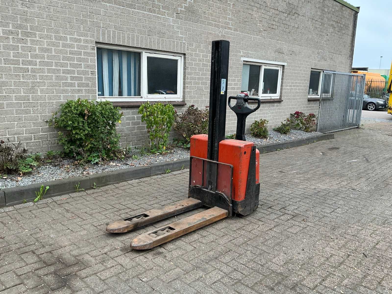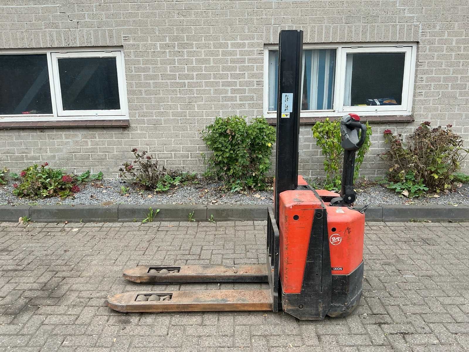 Voorzien van: achterloopstapelaar, dubbele lepels, ingebouwde oplader, electrisch rijden en heffen, dubbele looprollen Nee Merk: BT Type: SWE080L Bouwjaar: 2007 Serienummer: 993565/2007 Hefvermogen: 1600kg Hefhoogte: 1680mm Lepellengte: 1150mm Afgelezen urenstand: 2983 Eigen gewicht: 515kg Totale afmeting L: 1800mm Totale afmeting Breedte: 770mm Totale afmeting Hoogte: 1870mm Accu lader: true