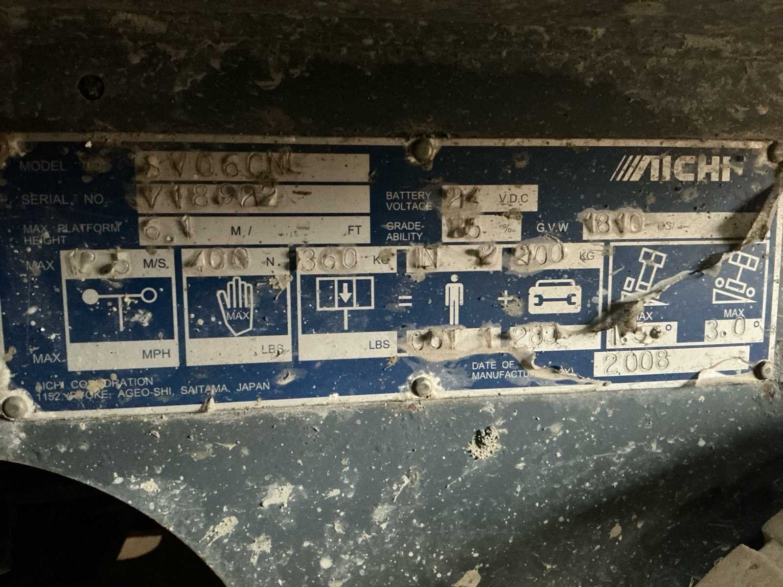Voorzien van: acculader, weinig uren. Nee Merk: Aichi Type: SV06CNL Bouwjaar: 2008 Serienummer: V18922 Elektrisch: true Schaarhoogwerker: true Werkhoogte: 8000mm Plateau afm. l: 2300mm Plateau afm. b: 800mm Platform capaciteit: 360kg Accu lader: true Afgelezen urenstand: 840 Totale afmeting Hoogte: 10000mm