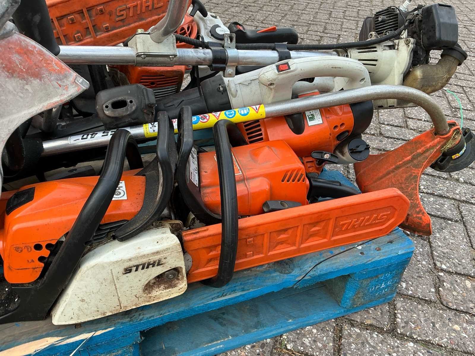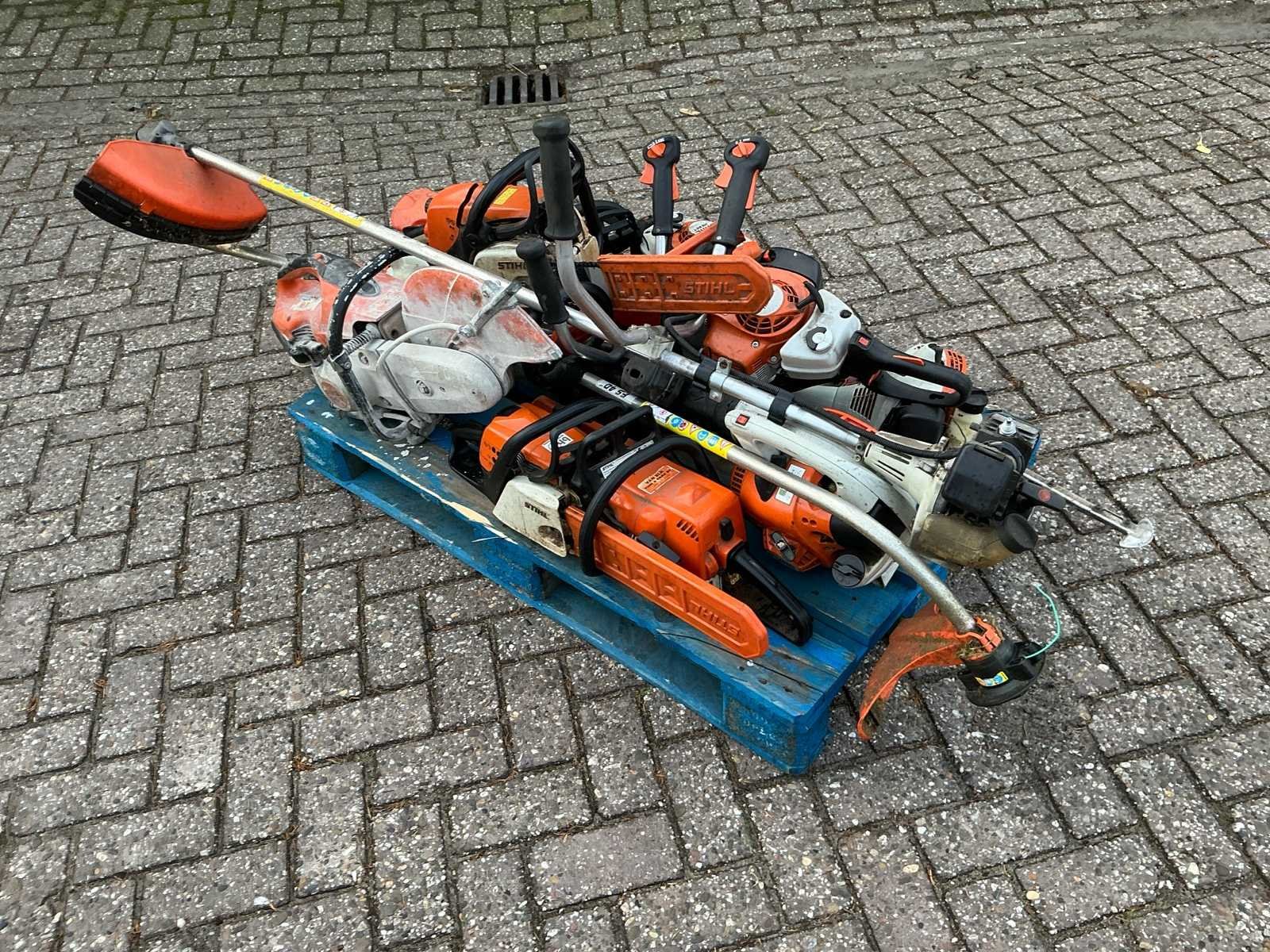 Nee Bestaande uit: Bestaande uit diverse 1e: Kettingzagen 2e: Heggenscharen 3e: Motorslijper ( loopt niet) 4e: Bladblazer 5e: Bosmaaier