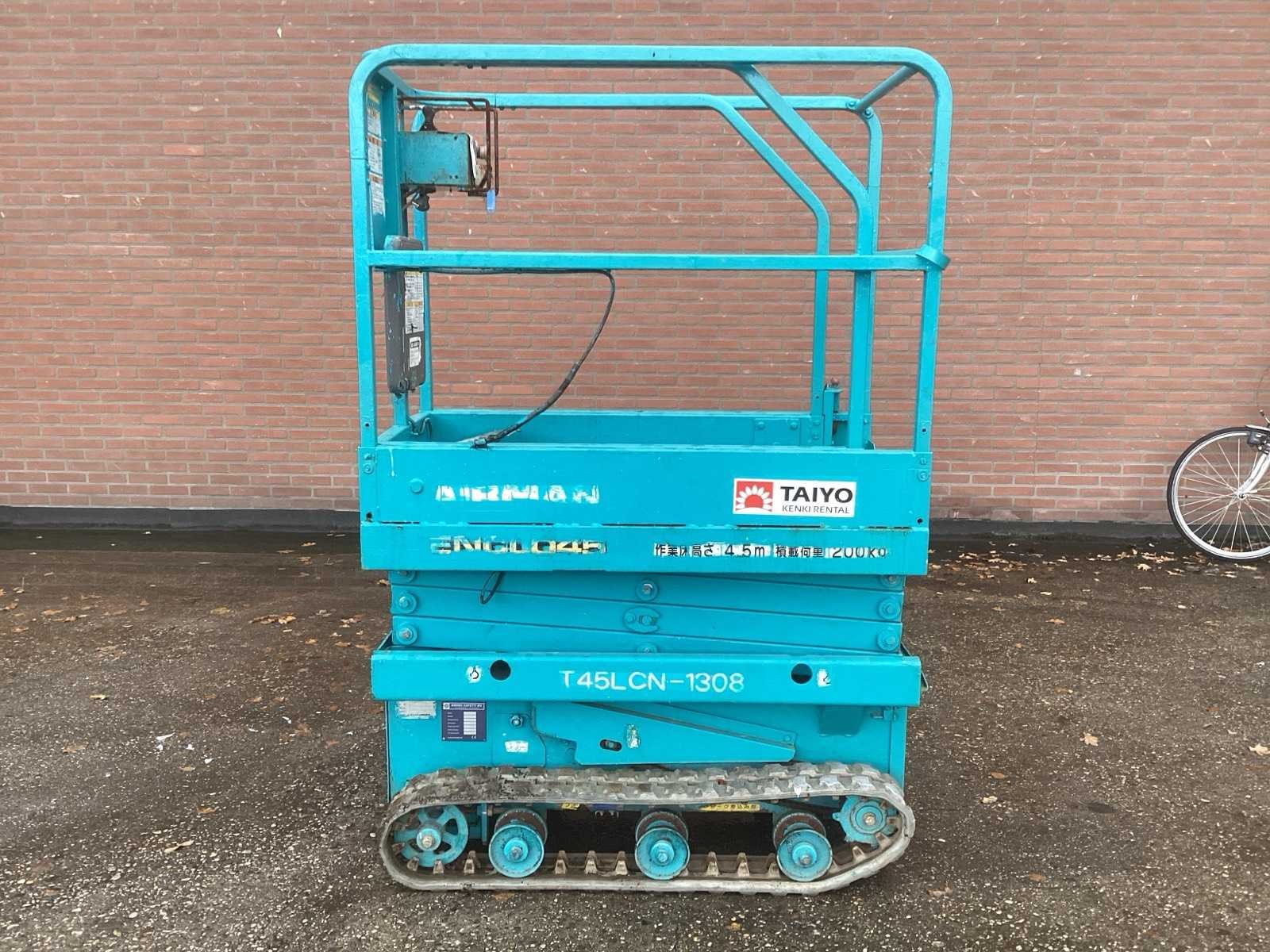 60 cm uitschuifbaar; met 1 jaar keuring; met CE papieren Nee Merk: AIRMAN Type: ENCL 045 Bouwjaar: 2009 Elektrisch: true Schaarhoogwerker: true Werkhoogte: 6500mm Plateau afm. l: 1250mm Plateau afm. b: 760mm Platform capaciteit: 200kg Eigen gewicht: 750kg Totale afmeting L: 1300mm Totale afmeting Breedte: 760mm Totale afmeting Hoogte: 1850mm