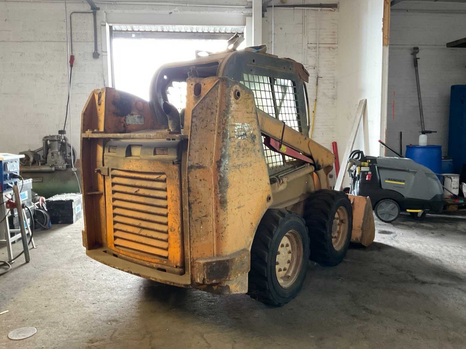 Voorzien van: schepbak (1490mm), hijsoog, hydraulische fuctie voorzijde, handmatige snelwissel, 4-cilinder dieselmotor. No Merk: Case Type: 410 Bouwjaar: 2010 Aantal cilinders: 4 Brandstof: diesel Bandenmaat: BKT skid power 10-16.5 Graafbak afm. b: 1490mm Afgelezen urenstand: 3165 Eigen gewicht: 2494kg Totale afmeting L: 3300mm Totale afmeting Breedte: 1500mm Totale afmeting Hoogte: 2040mm