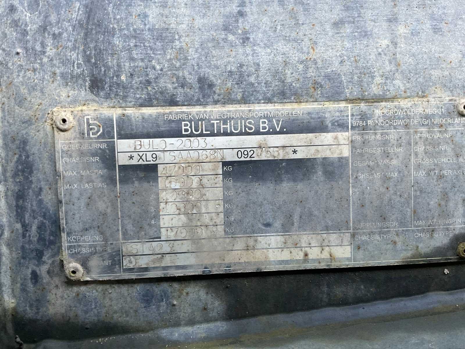 Max massa: 47000kg, voorzien van: automatisch smeersysteem, luchtvering, Nederlandse kentekenregistratie, Nee Merk: Bulthuis Type: TSTA23 Bouwjaar: 2008 Chassisnummer VIN: XL9TSAA068N Kenteken: OK-66-KR Datum eerste toelating (NL): 2008-05-29 Datum eerste toelating: 2008-05-29 APK vervaldatum: 2023-06-21 Aantal assen: 3 Laadvermogen: 34800kg Totale afmeting L: 9200mm Totale afmeting Breedte: 2460mm Totale afmeting Hoogte: 1350mm No self drive export!: true