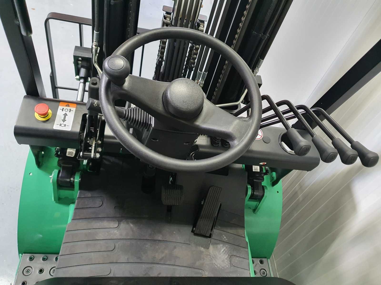 Led verlichting voor, Led verlichting achter, Dynamische knipperlichten voor, Zwaailamp achter, Bluespot achter, 220V stekker voor het opladen van de accu, Li-Ion accupakket 80V 280AH. Nee Merk: EP Type: EFXZ-251 Bouwjaar: 2025 Brandstof: Elektrisch Mast: Triplex Aantal wielen: 4 Accu lader: true Free-lift: true Side-shift: true Triple mast: true Eigen gewicht: 4094kg Hefvermogen: 2500kg Lepellengte: 1150mm Max. hefhoogte: 4800mm Hefhoogte: 4800mm Vol rubber banden: true Minimale doorrijhoogte: 2300mm Totale afmeting L: 3400mm Totale afmeting Breedte: 1100mm Totale afmeting Hoogte: 2300mm