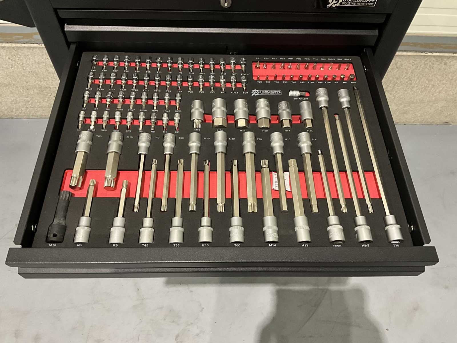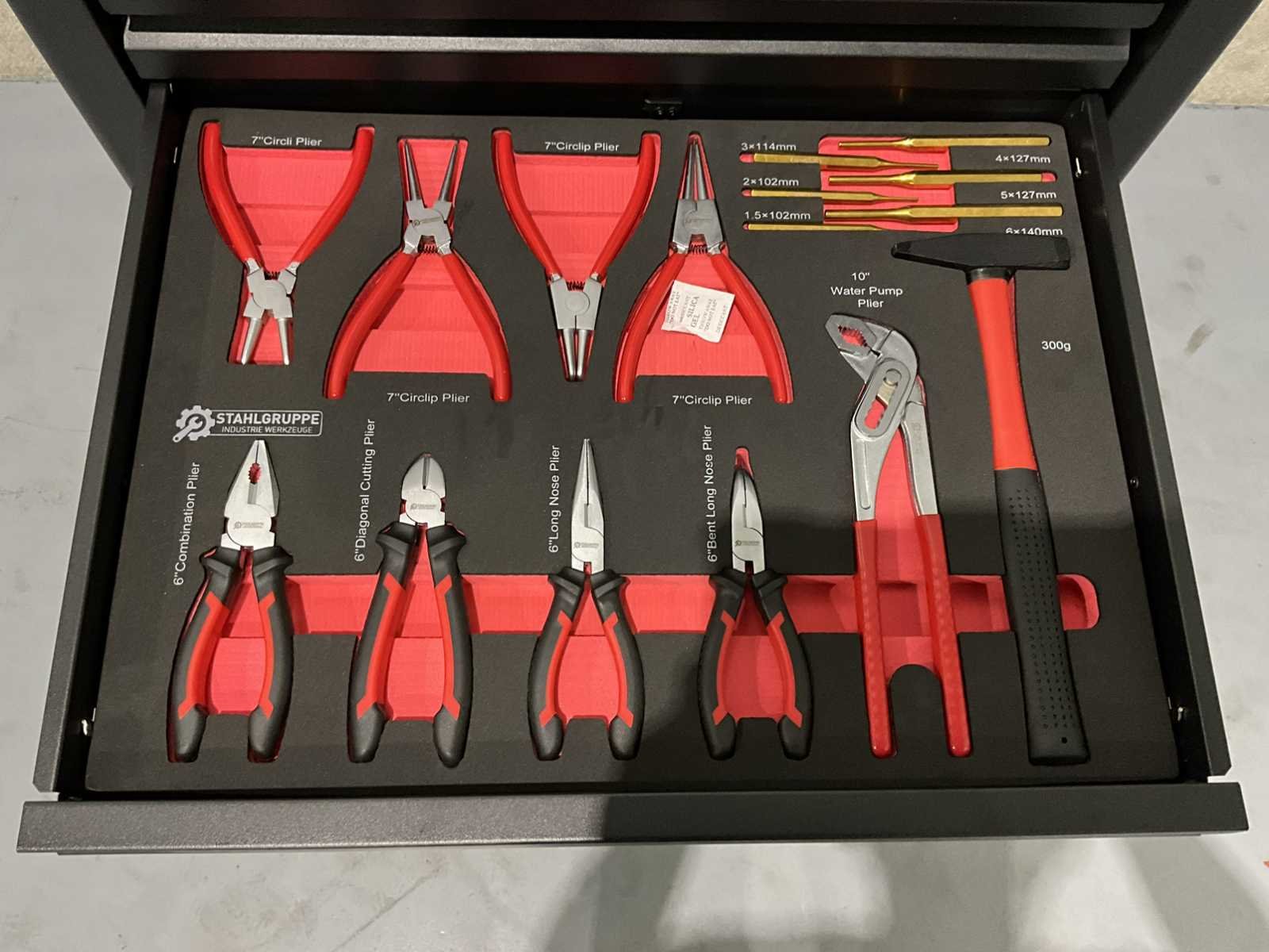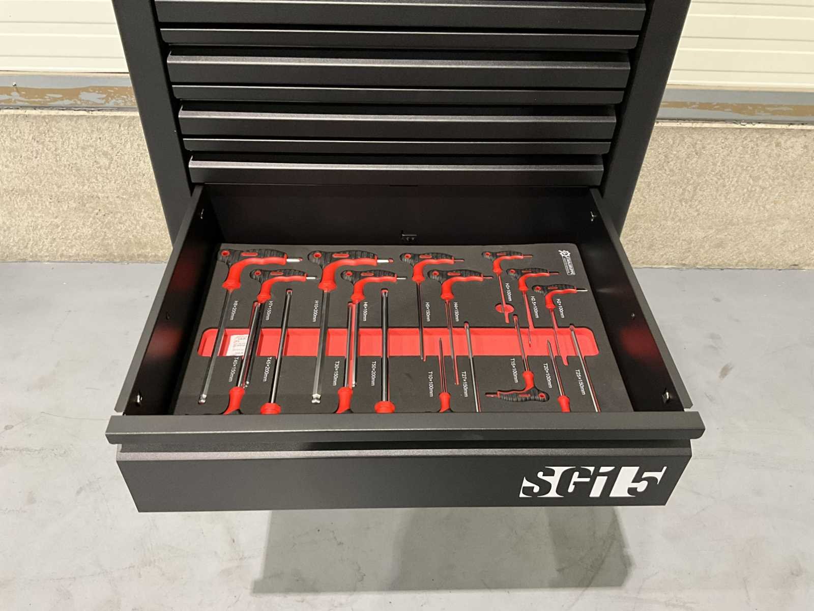 Aanvullende informatie Staat: ongebruikt, in de originele verpakking Merk: SG Tools Aantal laden: 7 laden Aantal gevulde laden: 6 gevulde laden Gereedschap: Chrome Vanadium gereedschap Inhoud: 3 dopsleutelsets (1/2”, 3/8” & 1/4”) bits- en doppenset ( 102 stuks) ring- steeksleutelset (6-32 mm) schroevendraaiers (21 stuks) diverse tangen (9 stuks) T-greep Torxsleutels (T10-T50) T-greep Inbussleutels (2-8mm) Nee Merk: SG Tools Type: SG 15 Pro Bouwjaar: 2025 Met inhoud: true Eigen gewicht: 80kg
