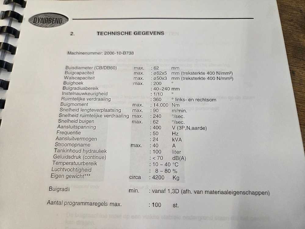 Voorzien van vernieuwde besturing; inclusief tooling sets: Rond 28 + 32 + 40 mm Nee Merk: Dynobend Type: CB 60 Bouwjaar: 2006 Serienummer: 2006-10-B738 Buighoek max.: 200° Aansluiting: 400V