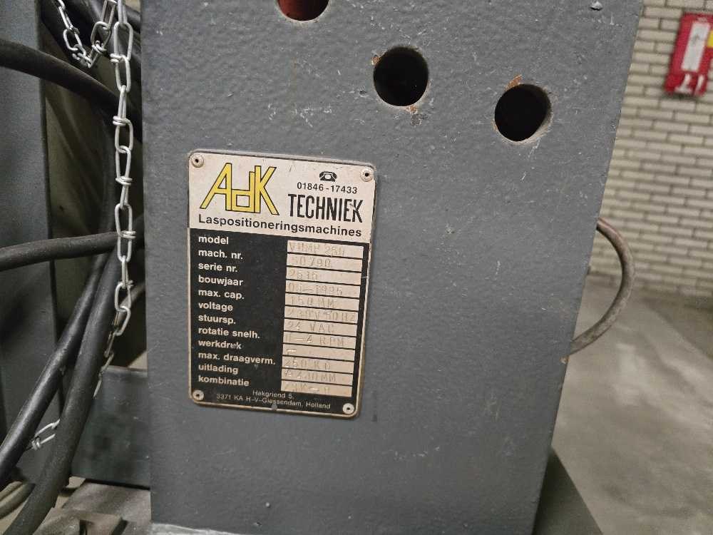 Nee Merk: ADK Type: VHMP 250 Bouwjaar: 1995 Draagcapaciteit: 250kg Kantelbaar: true Aansluiting: 400V