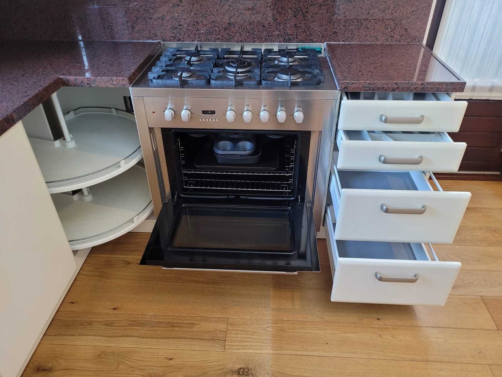 Conditie gebruikt; afmetingen linkerdeel lxb ca. 150x60cm; afmetingen rechte stuk lxb ca. 295x60 cm; afmetingen rechterdeel lxb ca. 250x60 cm; Reeds gedemonteerd en ingepakt op pallets. (afstapelen, omruilen of statiegeld per pallet); Pallets zijn niet inbegrepen; statiegeld betalen bij afhalen, of pallets afstapelen; werkblad niet ingepakt op pallets Nee Type keukenopstelling: U opstelling Kraan: Aanwezig Gootsteen: Aanwezig Aanrechtblad: Steen rood spikkel Fornuis: Siemens Oven: Siemens Afzuigkap: Siemens Vaatwasser: Miele Hoofdkleur: Wit
