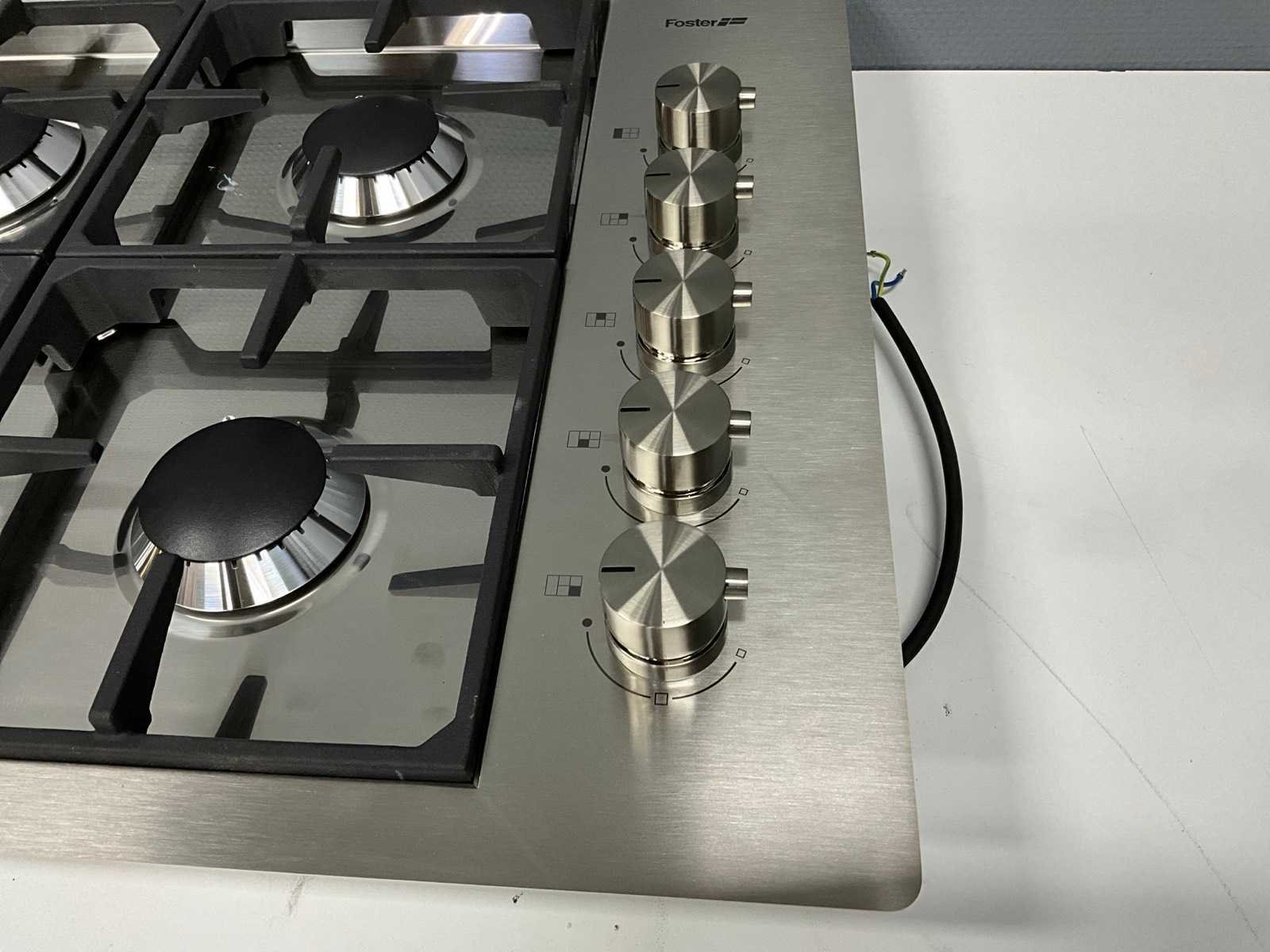Nee Merk: Foster Model: Artusi Product type: 5-pits gas Kleur: RVS Lengte: 92cm Breedte: 52cm