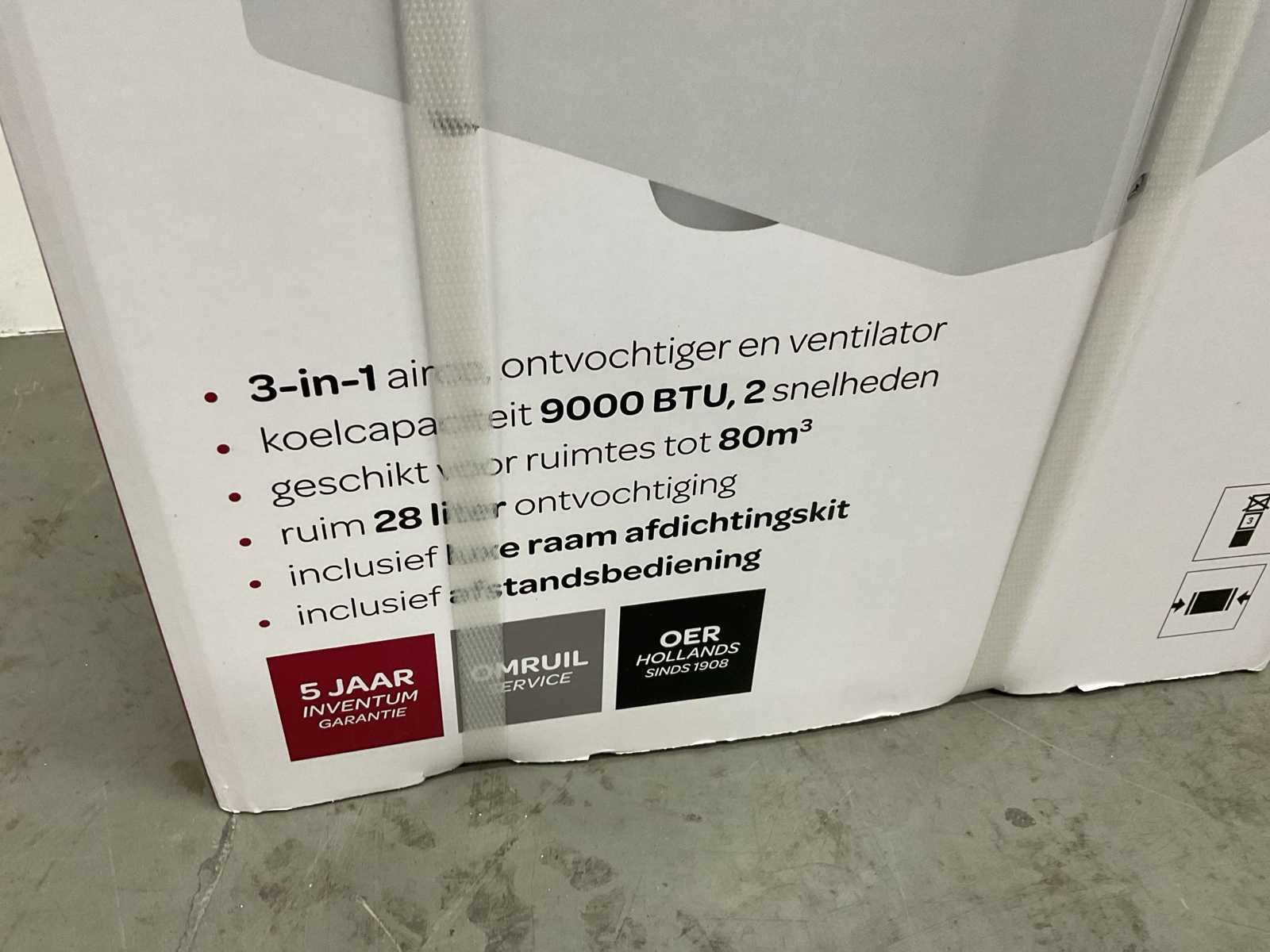 Nee Merk: Inventum Model: AC901 Kamer grootte: 80m² Airco: 28l Koelcapaciteit (W): 2600W Koelcapaciteit (BTU/h): 9000BTU/hr Vermogen: 1000W Spanning: 230V Kleur: Wit Lengte: 33cm Breedte: 28cm Hoogte: 68cm