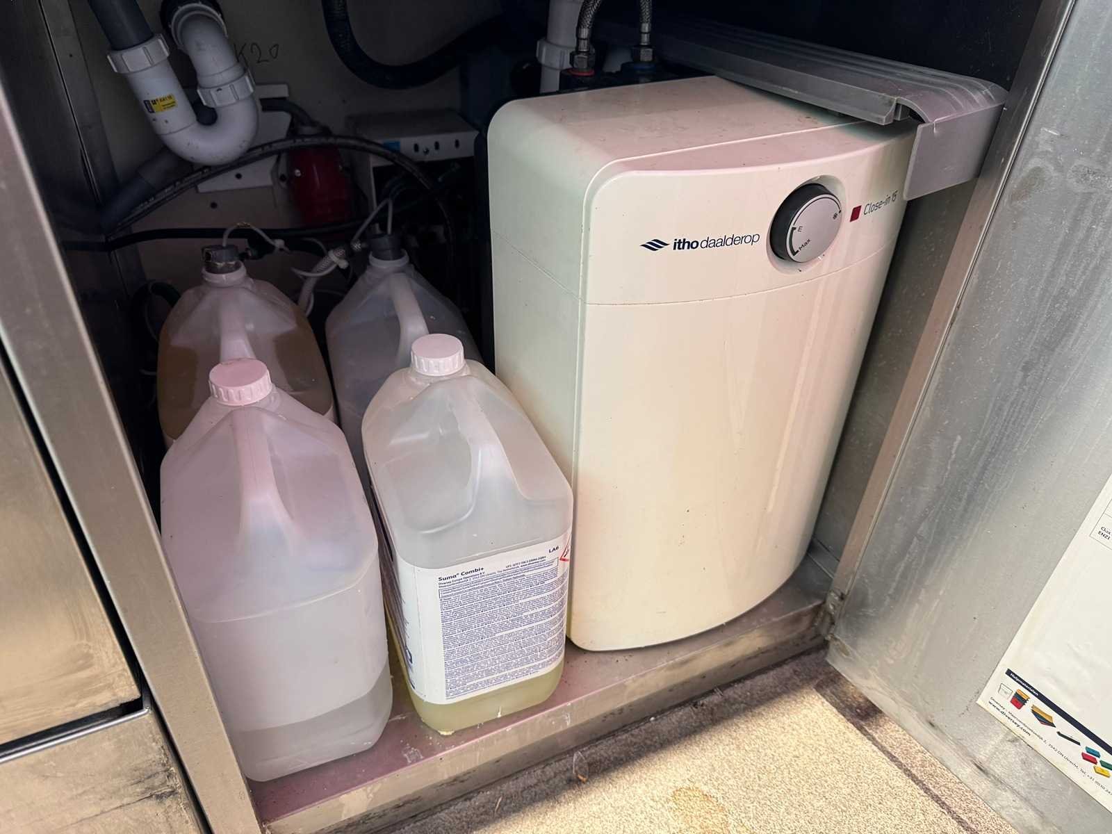 V.v. close-in boiler, uitklopbak, lades, spoelbak. Diepte werkblad: 70 cm. LET OP! Korvenvaatwasmachine, ijsblokjesmachine, glasdeur koelkast, RVS koelkast, koffiemachine en overige inhoud behoren niet tot de kavel. De koper is zelf verantwoordelijk voor het professioneel demonteren van de kavel. Kavel kan aangesloten zijn op het elektra-, water- en/of gasleidingnetwerk. Bekabeling en/of leidingen dienen netjes afgedopt en ordelijk achter gelaten te worden. Schade aan het pand of andere zaken zal op de koper worden verhaald. Wij adviseren u gebruik te maken van de kijkdag om een plan voor demontage op te stellen. Nee Totale afmeting L: 5600mm Totale afmeting Breedte: 7000mm Totale afmeting Hoogte: 2800mm