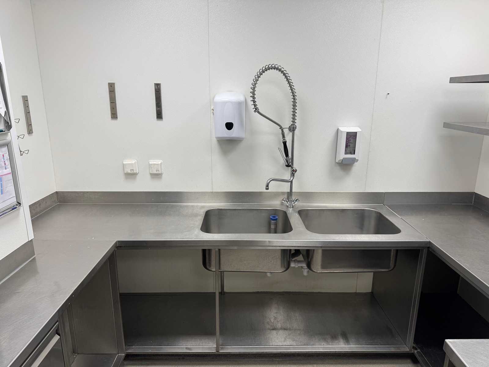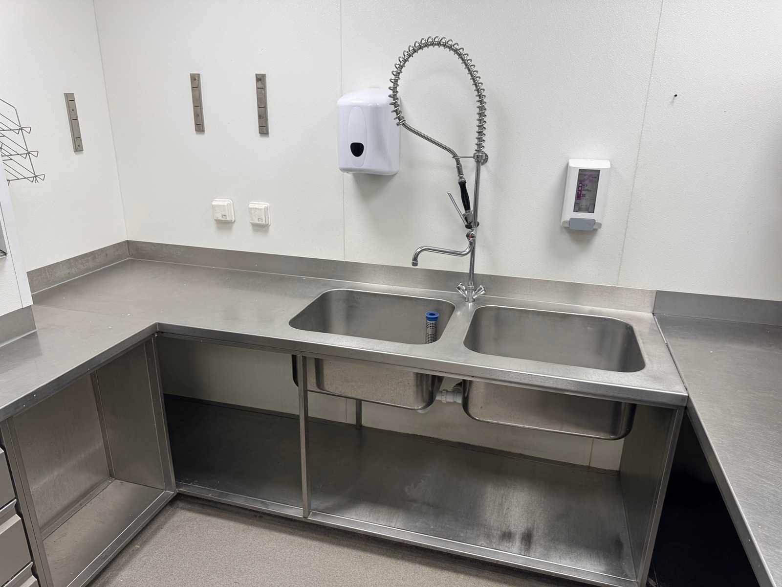 V.v. voorspoeldouche en dispensers zoals op foto's. De koper is zelf verantwoordelijk voor het professioneel demonteren van de kavel. Kavel kan aangesloten zijn op het elektra-, water- en/of gasleidingnetwerk. Bekabeling en/of leidingen dienen netjes afgedopt en ordelijk achter gelaten te worden. Schade aan het pand of andere zaken zal op de koper worden verhaald. Wij adviseren u gebruik te maken van de kijkdag om een plan voor demontage op te stellen. Nee Aantal spoelbakken: 2pcs Spoelkraan: true Rvs: true Lengte: 255cm Breedte: 70cm Hoogte: 80cm