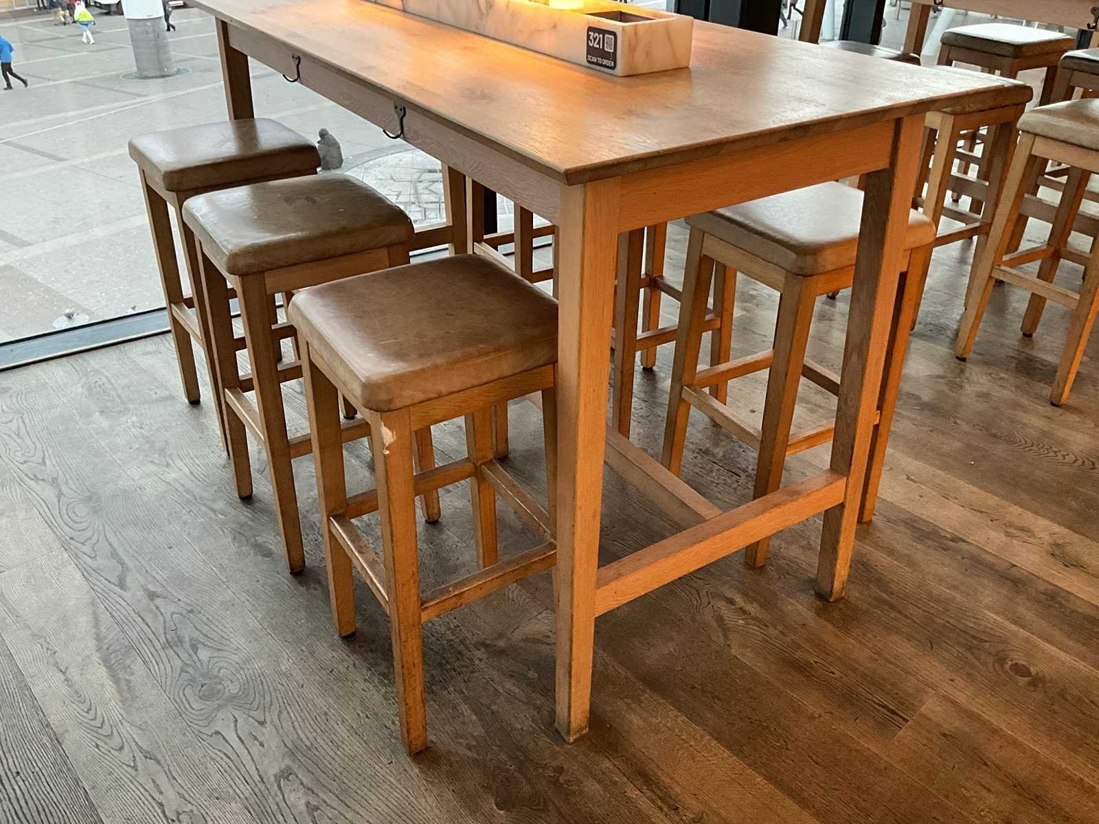 Bartafel met marmeren opbouw en verlichting en 6 barkrukken (37x37x75 cm). De tafel is reeds ontkoppeld van de vloeren en elektra. Hiervoor gelden de additionele kosten. Nee Merk: Hutten Totale afmeting L: 1800mm Totale afmeting Breedte: 800mm Totale afmeting Hoogte: 1050mm Hout: true