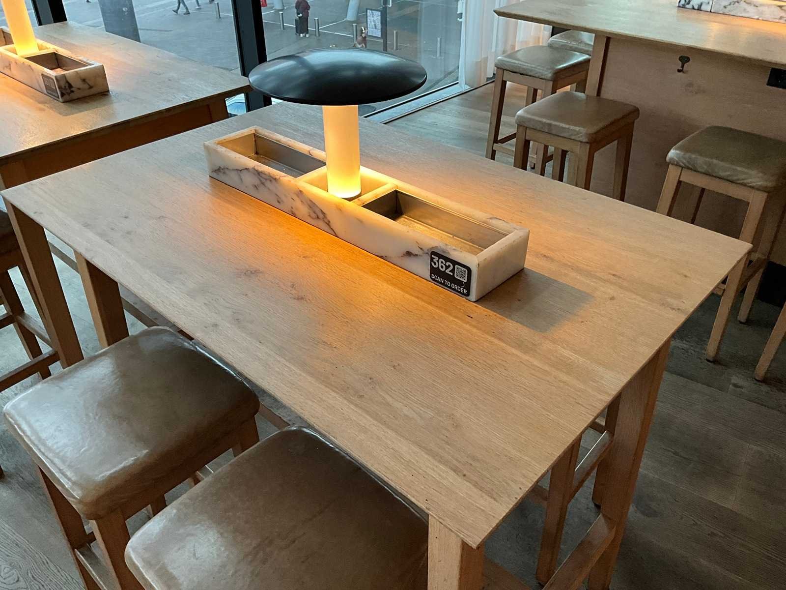 Bartafel met marmeren opbouw en verlichting en 4 barkrukken. De tafel is reeds ontkoppeld van de vloer en elektra. Hiervoor gelden de additionele kosten. Nee Merk: Hutten Totale afmeting L: 1200mm Totale afmeting Breedte: 800mm Totale afmeting Hoogte: 1050mm Hout: true