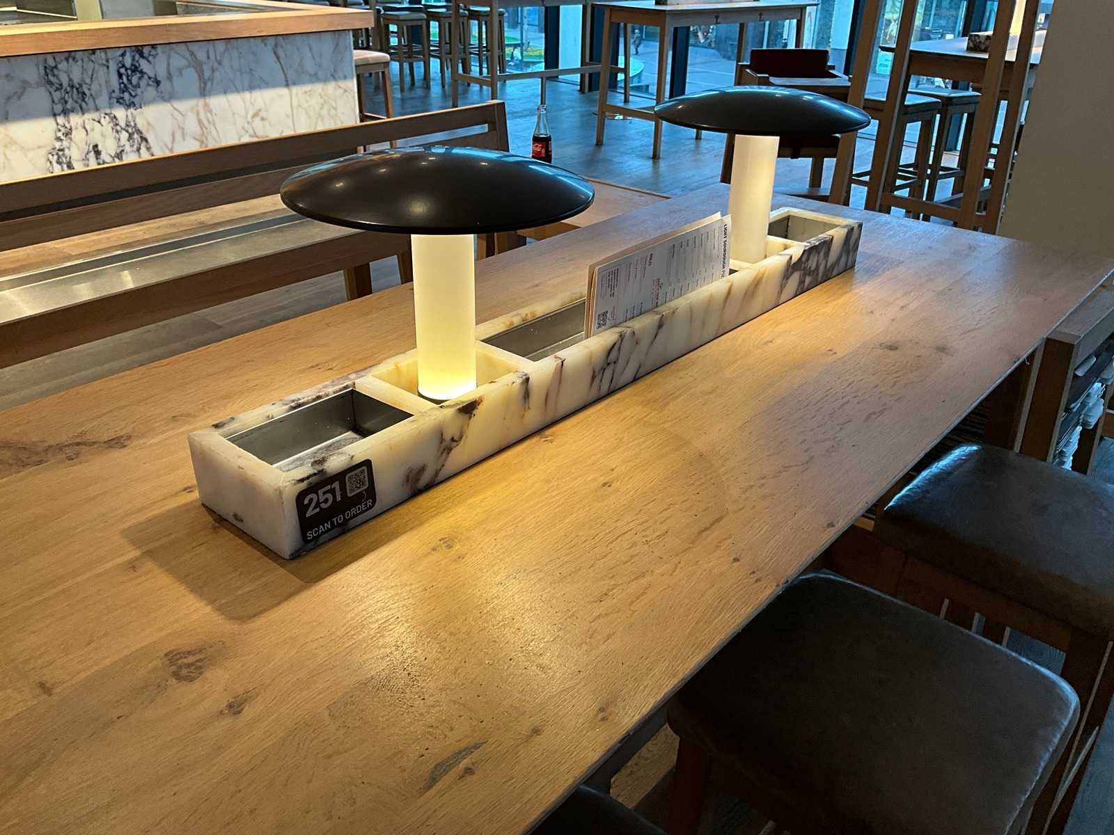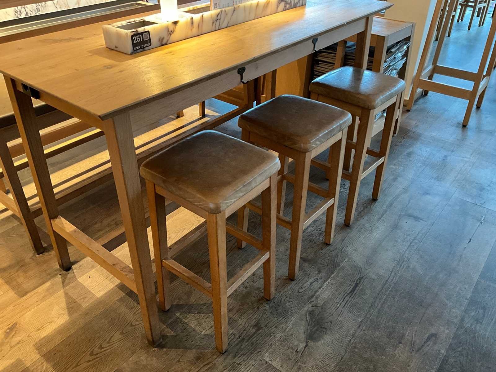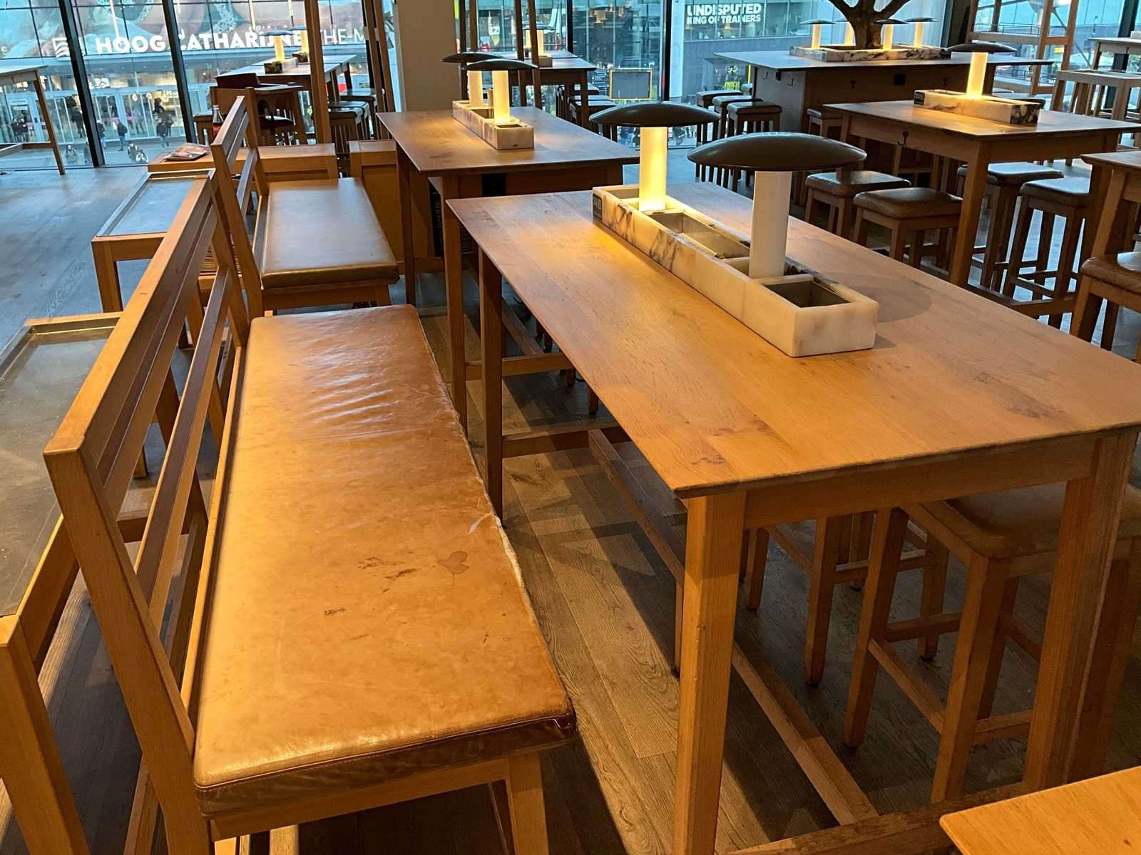Bartafel met marmeren opbouw en verlichting. Afmeting bank: 171x50x115 cm. Afmeting kruk 37x37x75 cm. De tafel is reeds ontkoppeld van de vloer en elektra. Hiervoor gelden de additionele kosten. Nee Merk: Hutten Totale afmeting L: 1800mm Totale afmeting Breedte: 800mm Totale afmeting Hoogte: 1050mm