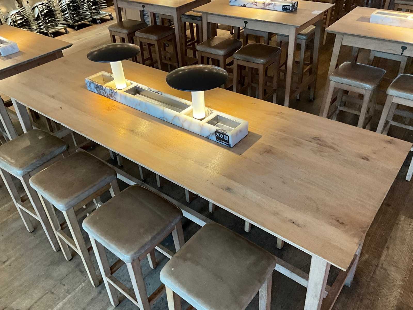 Bartafel met marmeren opbouw en verlichting. De tafel is reeds ontkoppeld van de vloer en elektra. Hiervoor zijn de additionele kosten van toepassing. Nee Merk: Hutten Totale afmeting L: 2400mm Totale afmeting Breedte: 800mm Totale afmeting Hoogte: 1050mm Hout: true