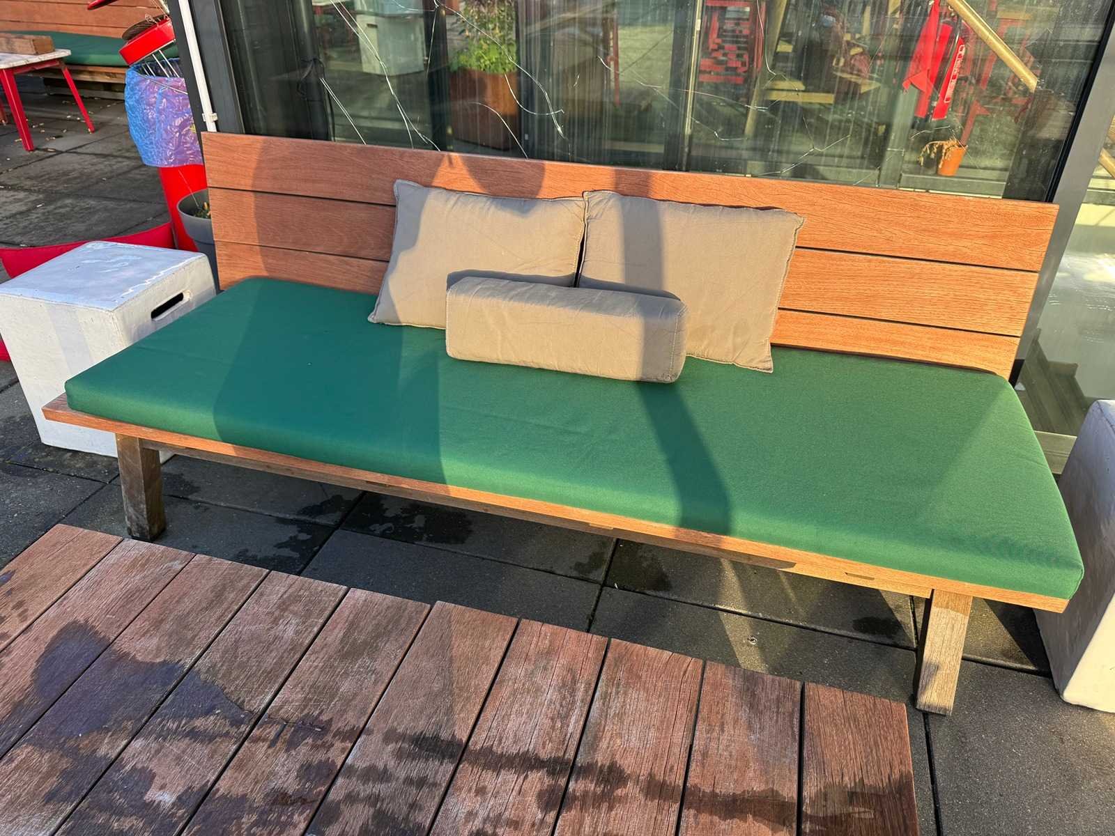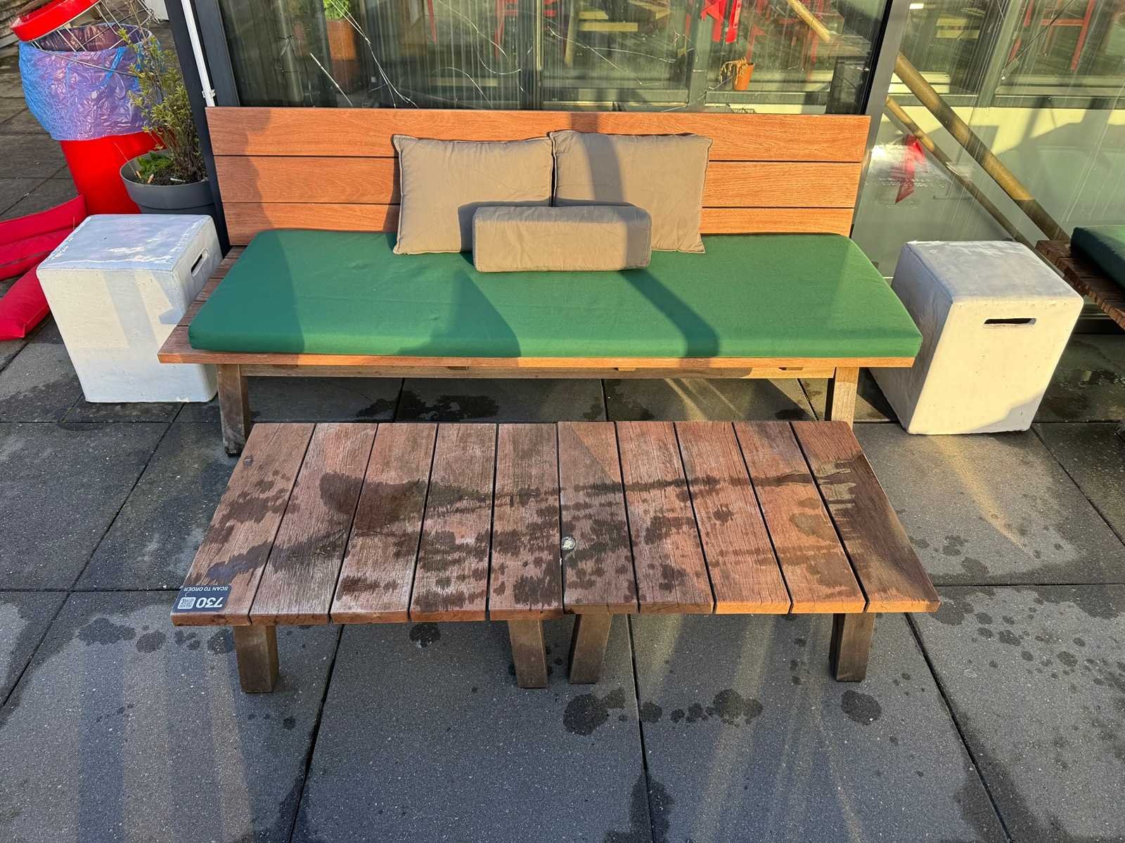 Bank met kussen en 2 tafeltjes. LET OP! Kavel bevindt zich op het dakterras. Nee Merk: Hutten