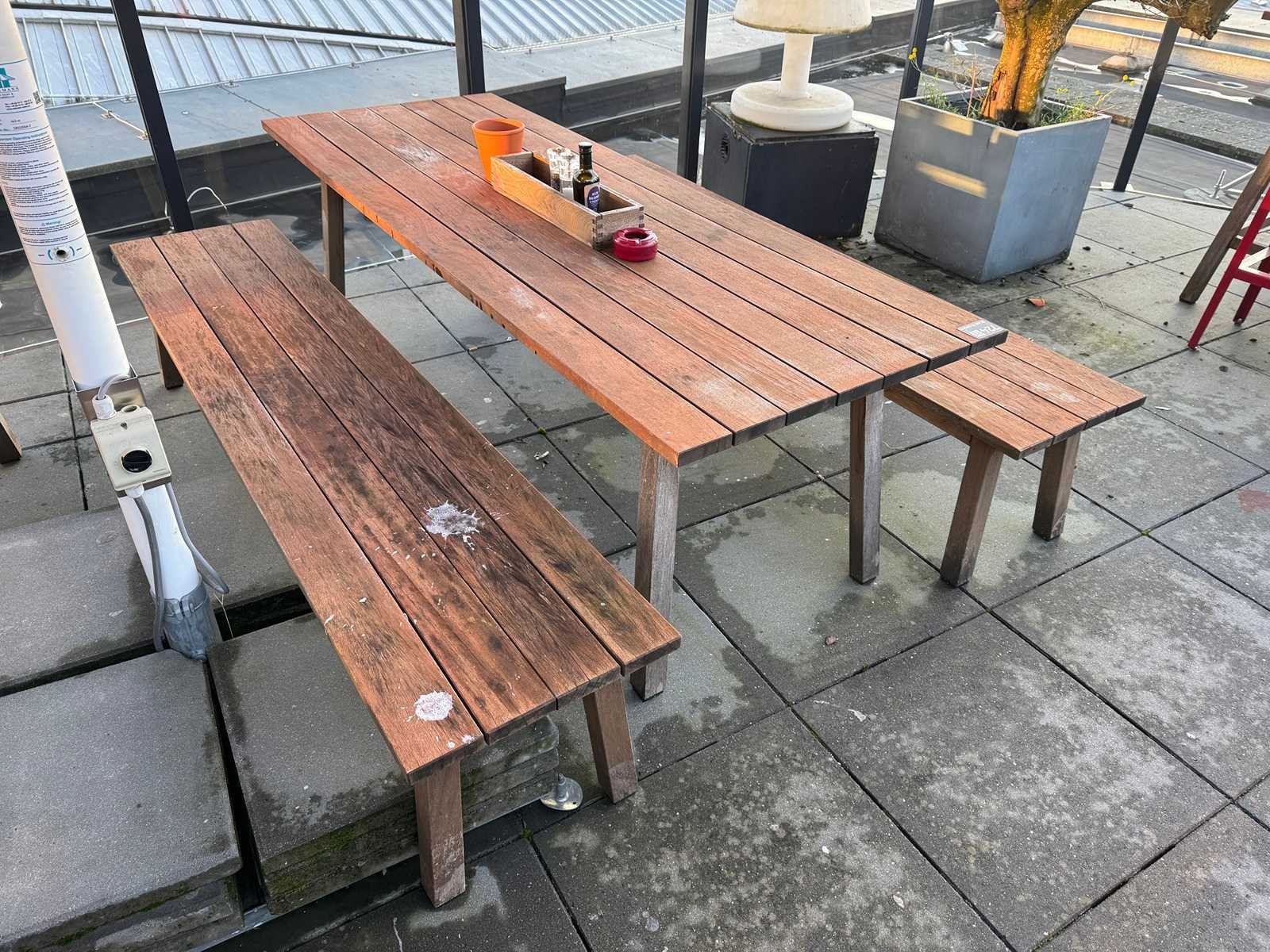 Hutten - houten terrasset tafel met 2 banken