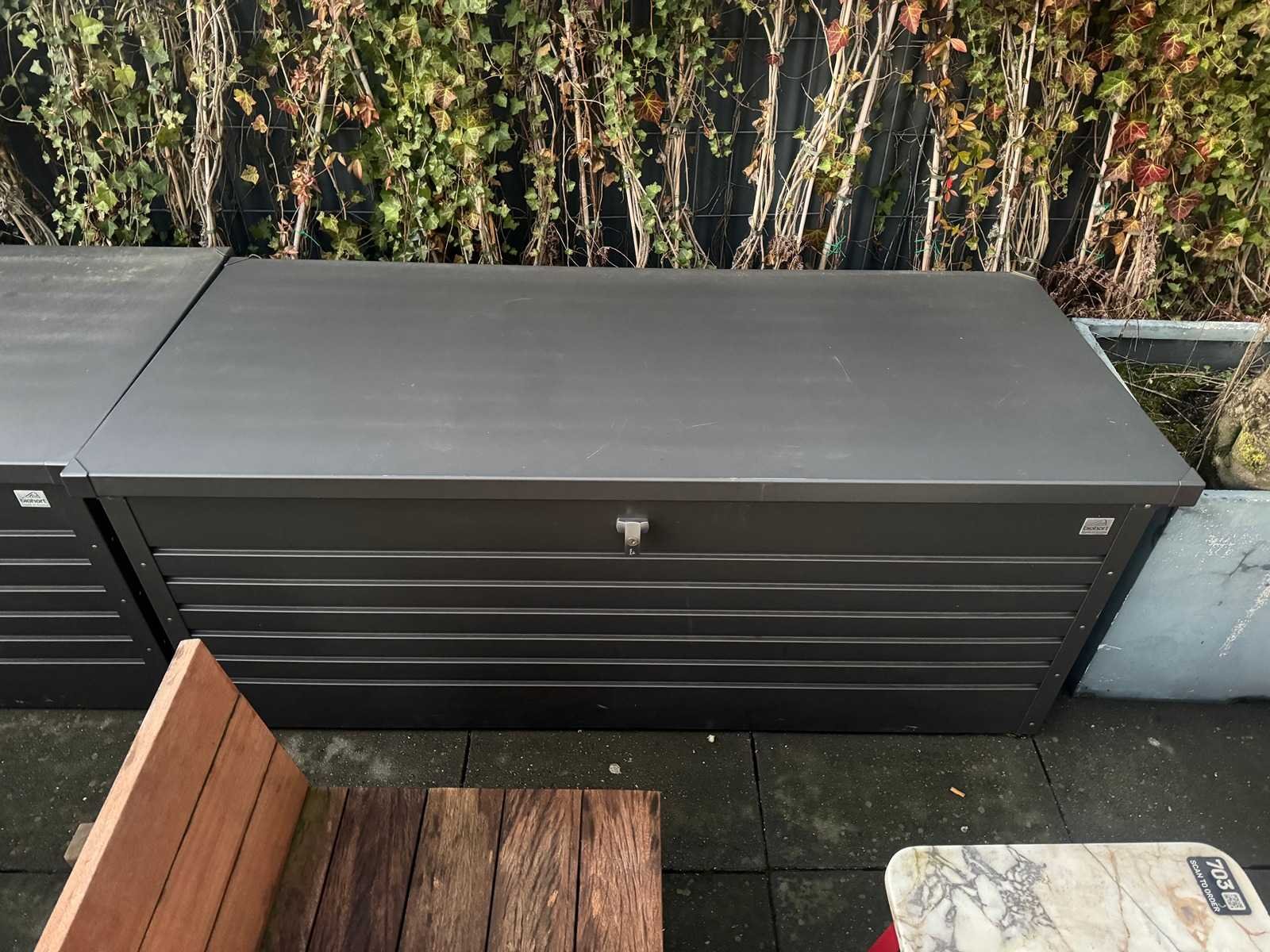 LET OP! Kavel bevindt zich op het dakterras. LET OP! Inhoud van de kist behoort niet tot de kavel. Nee Merk: Biohort Metaal: true