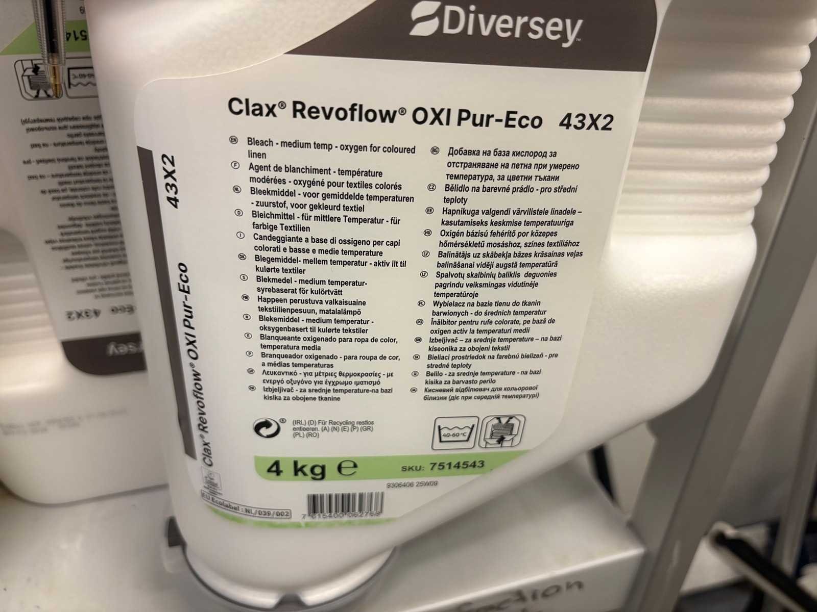 Diversey - clax revoflow oxi pur-eco - fles bleekmiddel voor gekleurd textiel (8x)