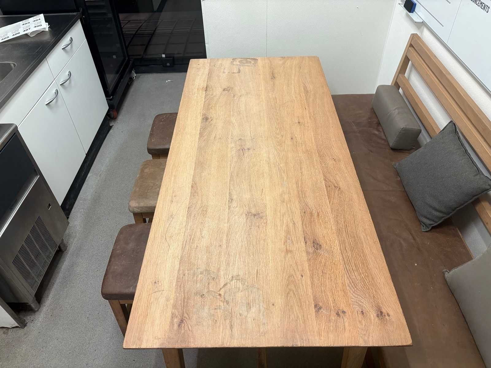 Hutten - restauranttafel met bank en 3 krukken