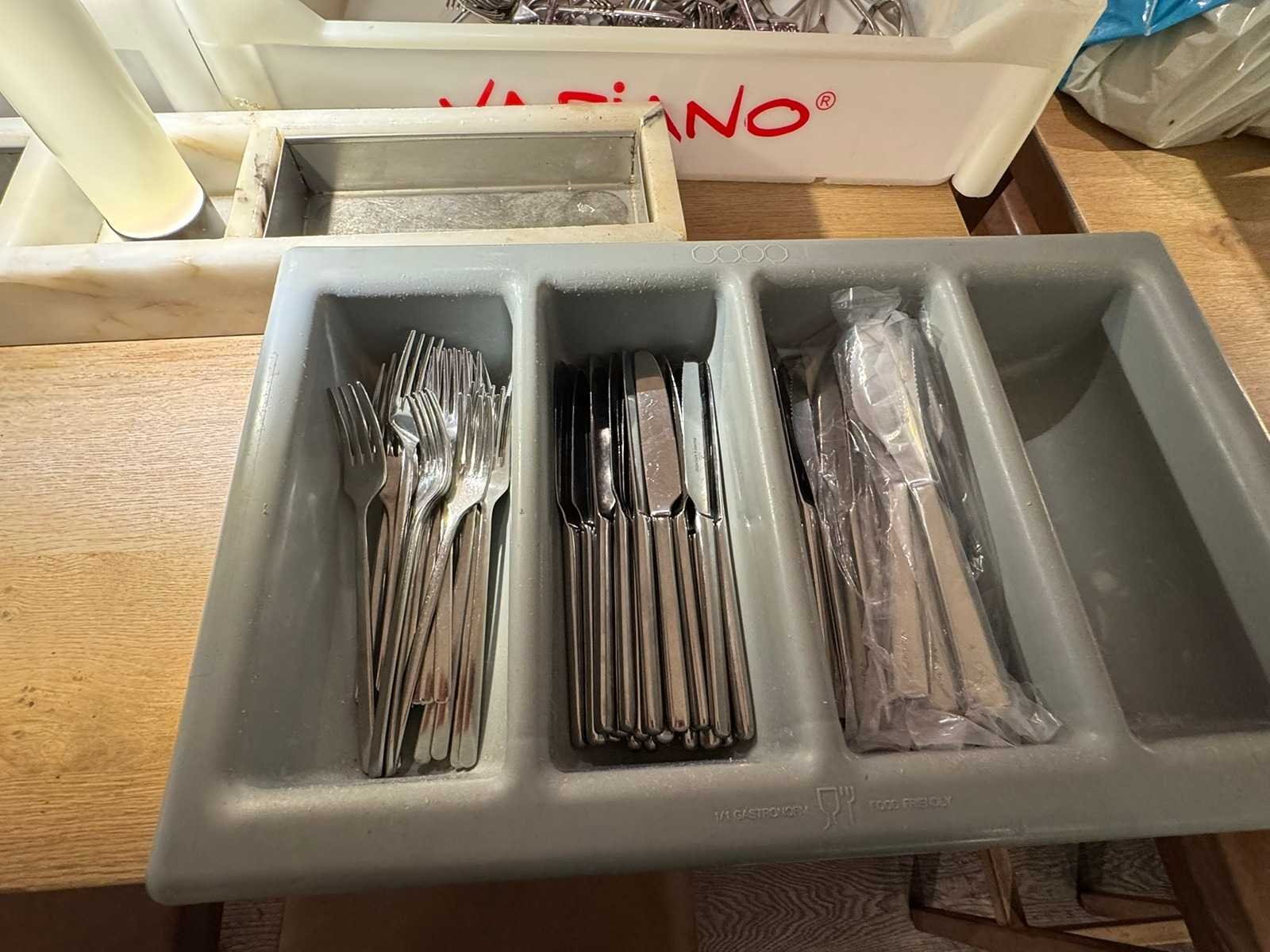 De set bestaat uit = - 25x Solingen vork 21 cm - 25x Solingen mes 22 cm - 25x Picard & Wielputz pizzames 23 cm Inclusief bestekbak. Nee Merk: Solingen