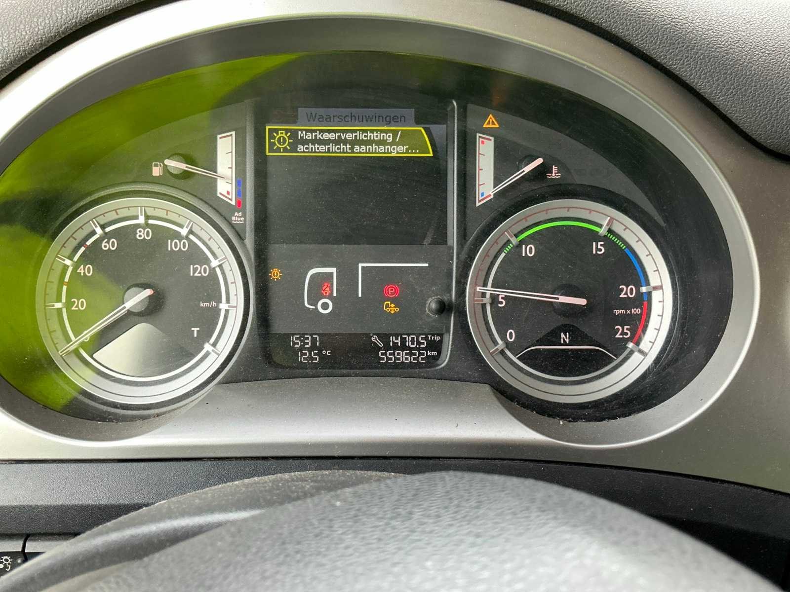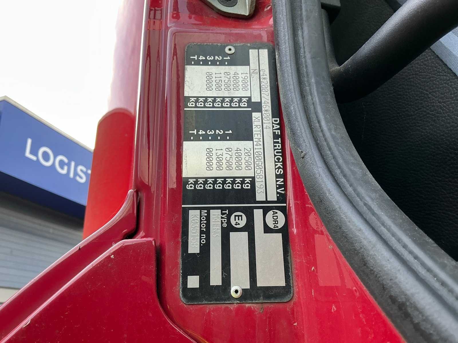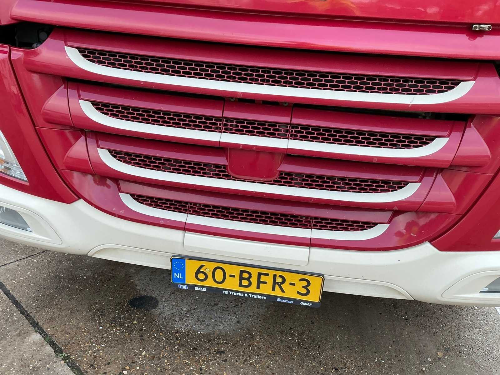Wettelijke max massa voertuig 19000kg, technische max massa voertuig 20500kg, max massa samenstel 40000kg, max opleggertrekgewicht 32730kg.voorzien van ALCOA lichtmetalen velgen, LED dimlicht, airco, lane departure warning, koelkast, cruise control, elektrische ramen en spiegels, President 27mc, storing in alarmsysteem. Tankdop ontbreekt Nee Kenteken: 60-BFR-3 Merk: DAF Type: CF370FT Bouwjaar: 2015 Chassisnummer VIN: XLRTEM4100G058193 Cilinderinhoud: 10837cc Kilometerstand bij opname: 559623km APK vervaldatum: 2025-11-14 Datum eerste toelating: 2015-02-25 Datum eerste toelating (NL): 2015-02-25 Type transmissie: Automaat Aantal assen: 2 Asconfiguratie: 4x2 Fuel Type: Diesel Laadvermogen: 11830kg Aantal sleutels: 2 Emissieklasse: 6 Aantal zitplaatsen: 2 Zelf rijdend exporteren: Nee No self drive export!: true