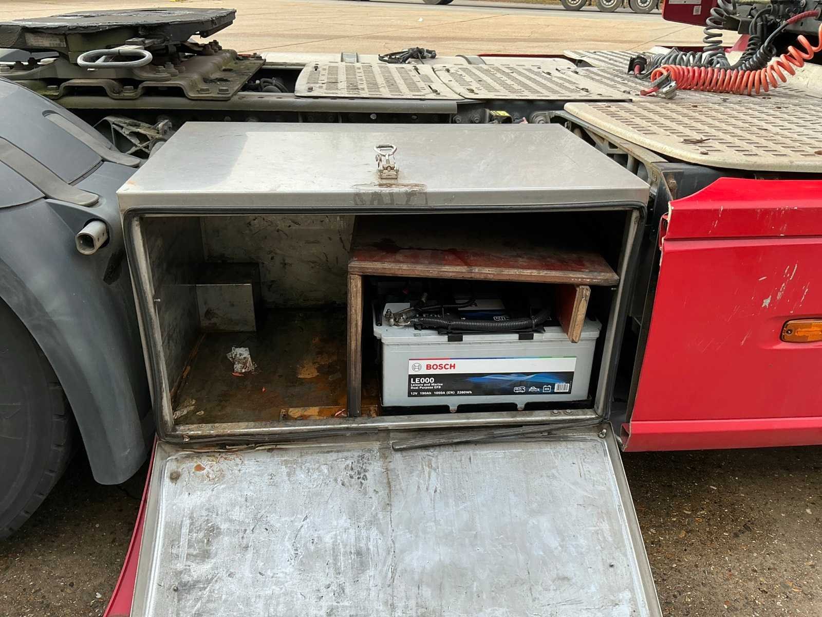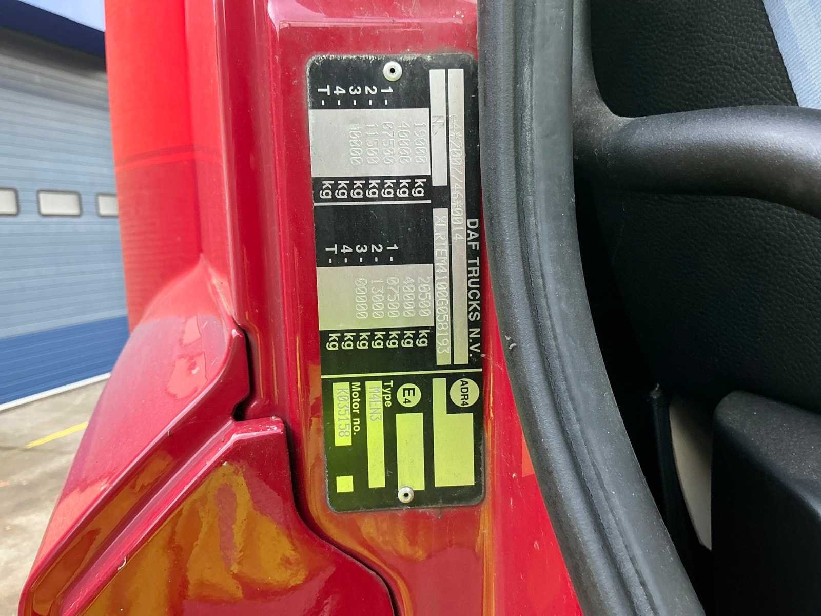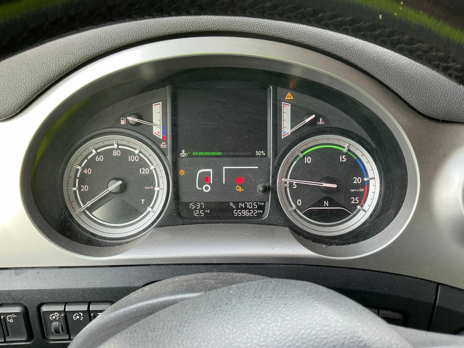Wettelijke max massa voertuig 19000kg, technische max massa voertuig 20500kg, max massa samenstel 40000kg, max opleggertrekgewicht 32730kg.voorzien van ALCOA lichtmetalen velgen, LED dimlicht, airco, lane departure warning, koelkast, cruise control, elektrische ramen en spiegels, President 27mc, storing in alarmsysteem. Tankdop ontbreekt Nee Kenteken: 60-BFR-3 Merk: DAF Type: CF370FT Bouwjaar: 2015 Chassisnummer VIN: XLRTEM4100G058193 Cilinderinhoud: 10837cc Kilometerstand bij opname: 559623km APK vervaldatum: 2025-11-14 Datum eerste toelating: 2015-02-25 Datum eerste toelating (NL): 2015-02-25 Type transmissie: Automaat Aantal assen: 2 Asconfiguratie: 4x2 Fuel Type: Diesel Laadvermogen: 11830kg Aantal sleutels: 2 Emissieklasse: 6 Aantal zitplaatsen: 2 Zelf rijdend exporteren: Nee No self drive export!: true