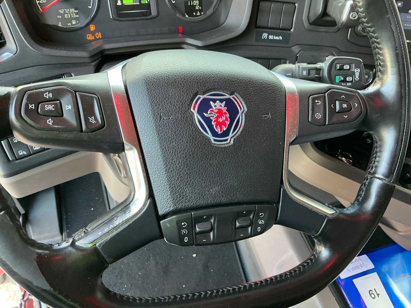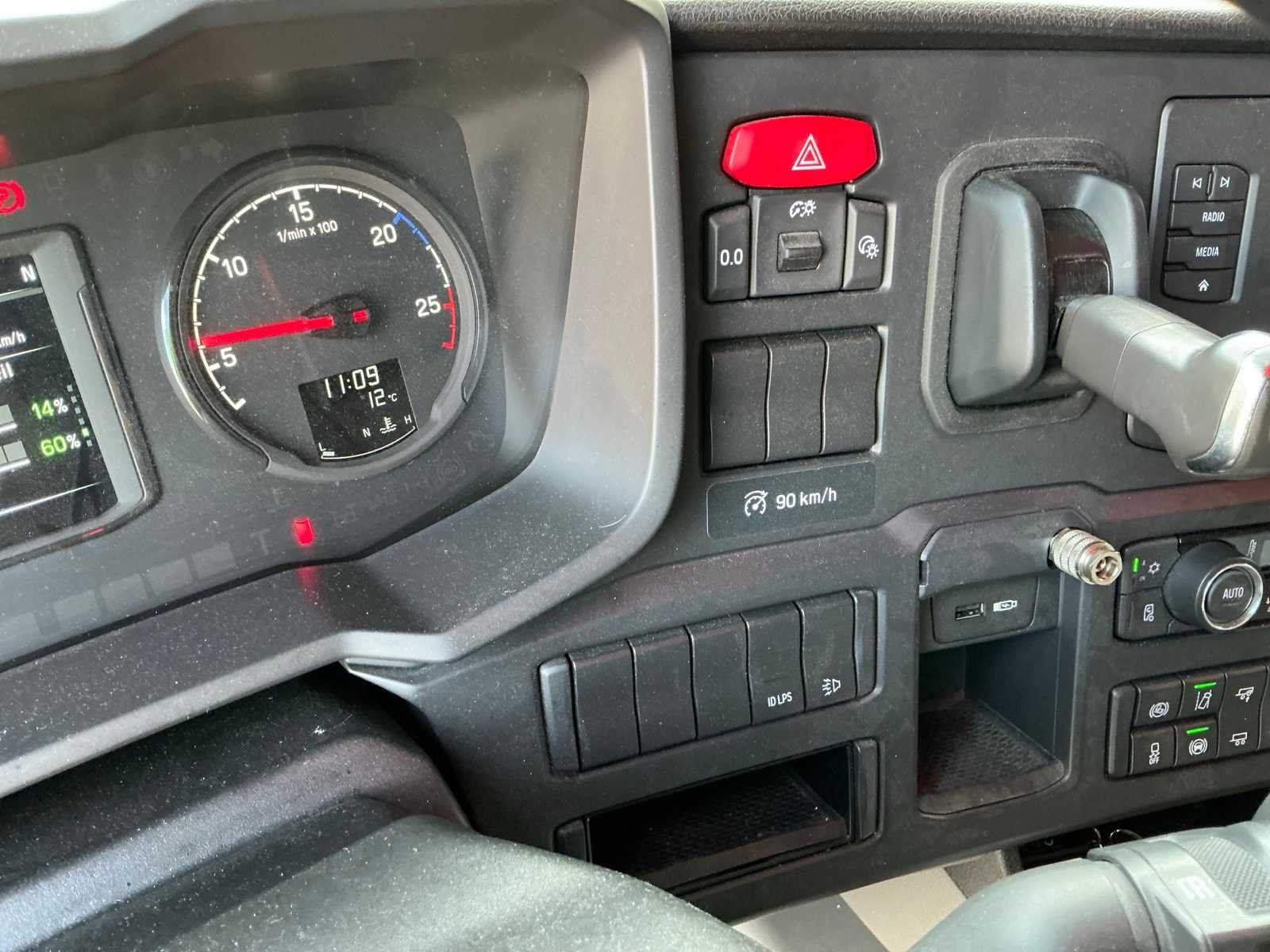 Wettelijke max massa voertuig 19000kg, technische max massa voertuig 20500kg, max massa samenstel 50000kg, max opleggertrekgewicht 41765kg, voorzien van retarder, 700 liter brandstoftank links en 300 liter rechts, 24/230volt inverter, 1 bed, lane departure warning, climatecontrol/airco, dak airco, koelkast, 1 bed, audio, koelkast, standverwarming, Nee Kenteken: 28-BRP-9 Merk: Scania Type: R450 Bouwjaar: 2021 Chassisnummer VIN: YS2R4X20005629594 Cilinderinhoud: 12742cc Kilometerstand bij opname: 427240km APK vervaldatum: 2026-05-07 Datum eerste toelating: 2021-07-08 Datum eerste toelating (NL): 2021-07-08 Type transmissie: Automaat Aantal assen: 2 Asconfiguratie: 4x2 Fuel Type: Diesel Laadvermogen: 10865kg Aantal sleutels: 2 Emissieklasse: 6 Eigen gewicht: 8235kg Nationaliteit documenten: Nederlands Aantal zitplaatsen: 2 Zelf rijdend exporteren: Ja