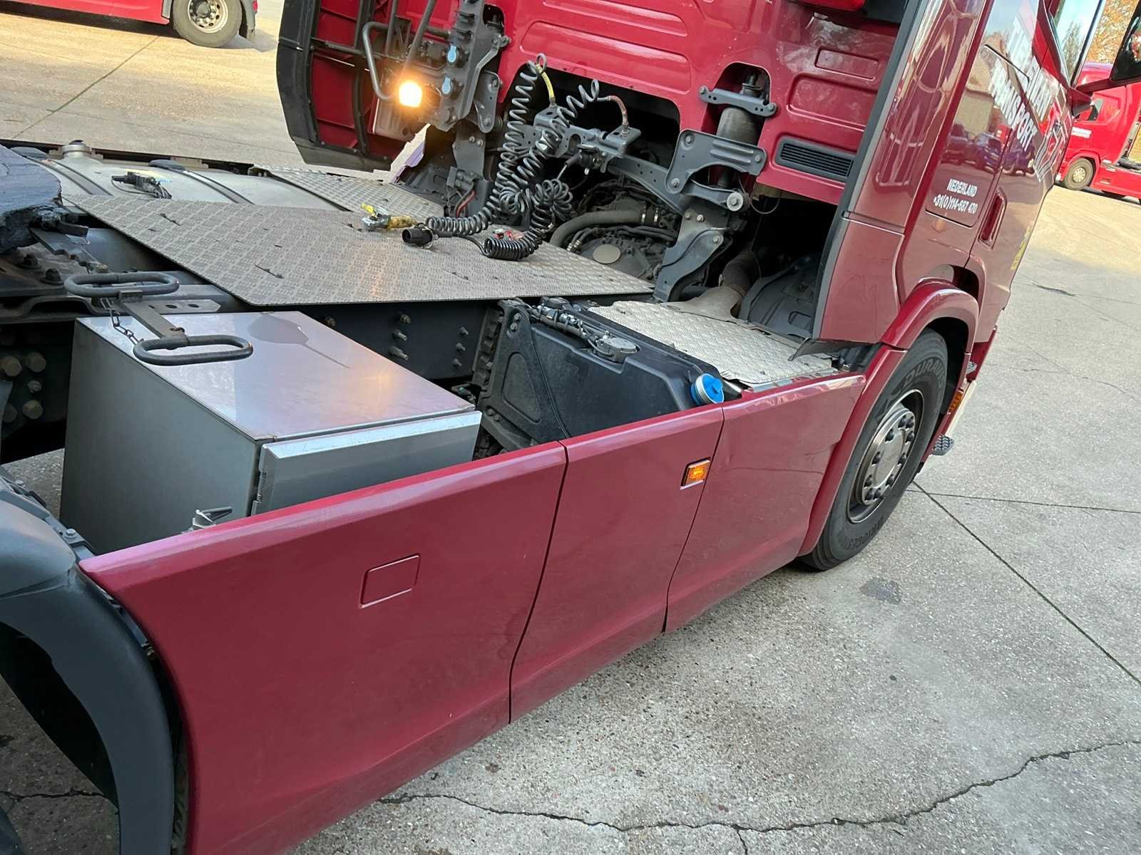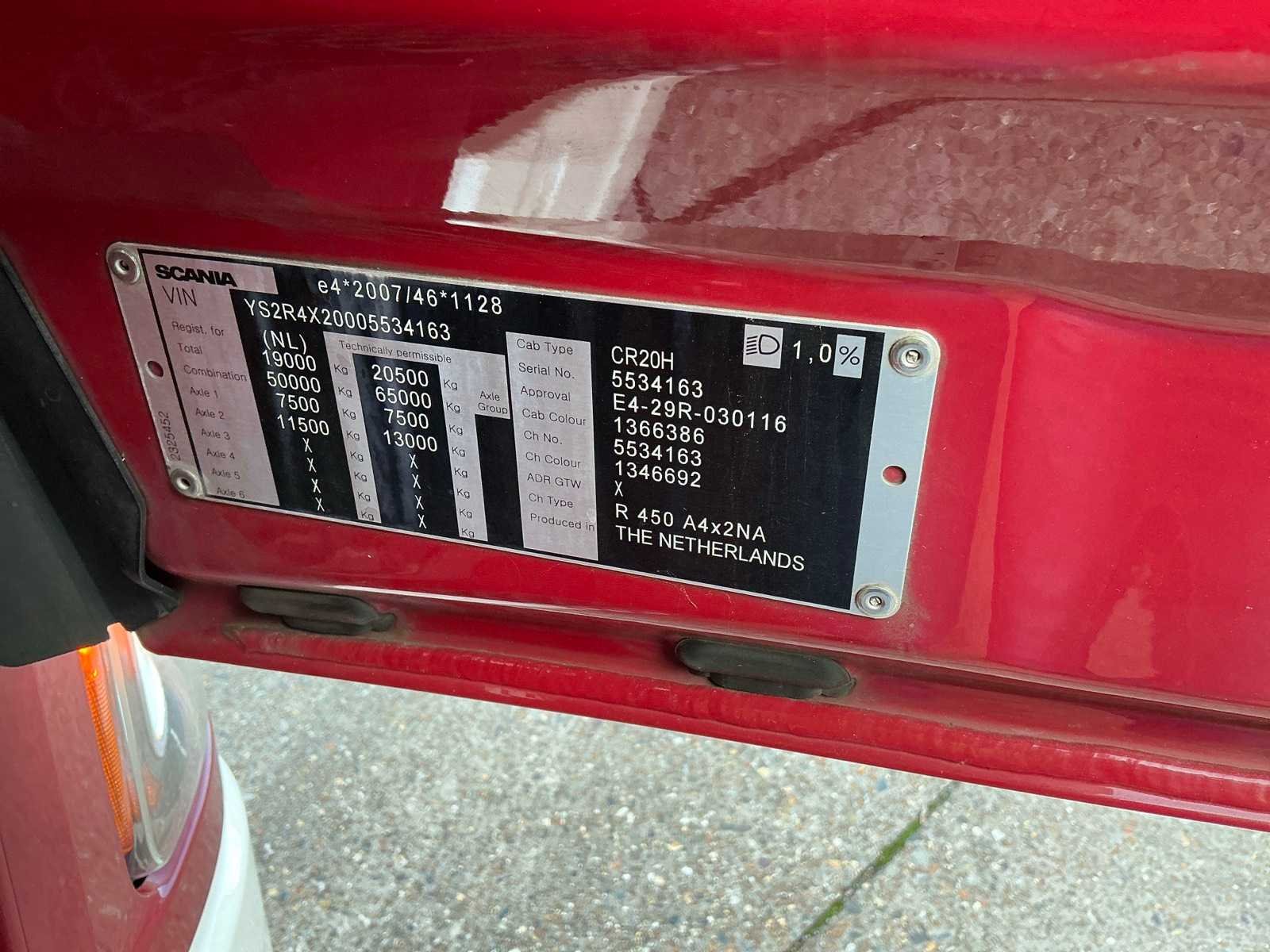 Wettelijke max massa 19000kg, technische max massa 20500kg, max massa samenstel 50000kg, max oplegger trekgewicht 41489kg. Voorzien van retarder, luchtgeveerde achter-as, 1000 liter brandstoftank, climatecontrol/airco, 2 bedden, koelkast, audio, lane departure warning, 24/230 volt inverter, BE-GE chauffeur stoel, koelkast, standverwarming. Nee Kenteken: 57-BLR-5 Merk: Scania Type: R450 Bouwjaar: 2018 Chassisnummer VIN: YS2R4X20005534163 Cilinderinhoud: 12742cc Kilometerstand bij opname: 578645km APK vervaldatum: 2026-01-19 Datum eerste toelating: 2019-01-18 Datum eerste toelating (NL): 2019-01-18 Type transmissie: Automaat Aantal assen: 2 Asconfiguratie: 4x2 Fuel Type: Diesel Laadvermogen: 10589kg Aantal sleutels: 2 Emissieklasse: 6 Slaapcabine: true Eigen gewicht: 8511kg Nationaliteit documenten: Nederlands Aantal zitplaatsen: 2 Zelf rijdend exporteren: Ja