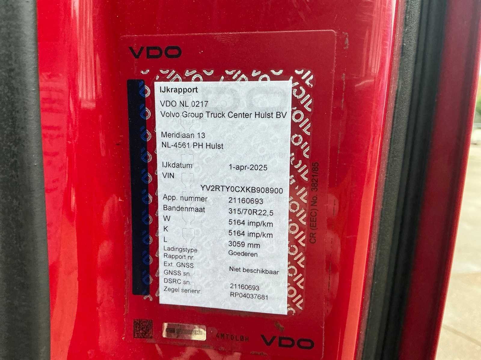 Technische max massa voertuig 27500kg, max massa samenstel 50000kg; wielbasis 657cm; 3e as is liftas, dubbele brandstoftank, luchtgeveerde bestuurdersstoel,1 bed, koelkast, driver alert support (DAS), Hill start aid, lane keeping support No Kenteken: 39-BNV-9 Merk: Volvo Type: FH Bouwjaar: 2019 Chassisnummer VIN: YV2RTY0CXKB908900 Cilinderinhoud: 12777cc Kilometerstand bij opname: 607117km APK vervaldatum: 2026-03-28 Datum eerste toelating: 2019-10-18 Datum eerste toelating (NL): 2019-10-18 Type transmissie: Automaat Aantal assen: 2 Asconfiguratie: 6x2 Fuel Type: Diesel Laadvermogen: 14910kg Aantal sleutels: 2 Emissieklasse: EURO 6 Slaapcabine: true Eigen gewicht: 12870kg Totale afmeting L: 10580mm Totale afmeting Breedte: 2550mm Nationaliteit documenten: Nederlands Aantal zitplaatsen: 2 Zelf rijdend exporteren: Ja Diesel: true