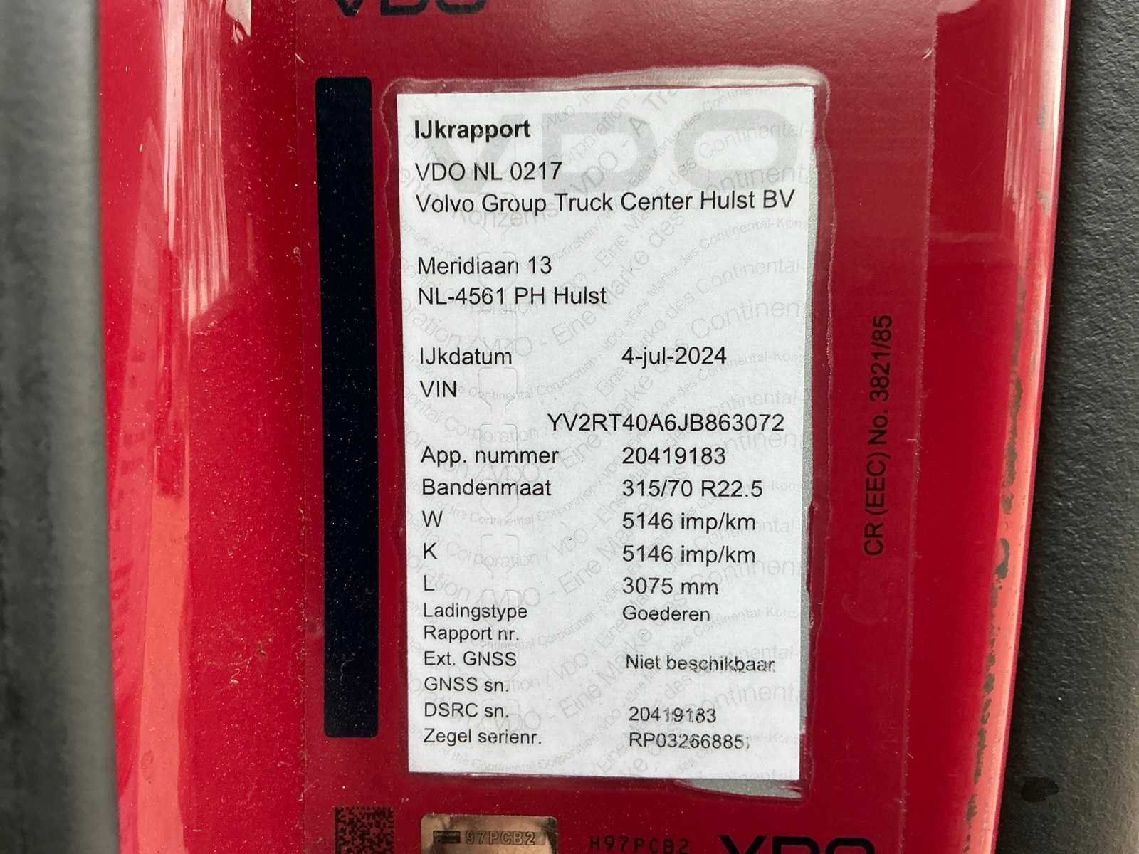 Wettelijke max massa 19500kg, technische max massa 21000kg, max massa samenstel 50000kg, max opleggertrekgewicht 42206kg, oorzien van luchtgeveerde achter-as, climatecontrol/airco, cruisecontrol, lane departure warning, airbag, navigatie/audio, 1 bed, standverwarming, koelkast, luchtgeveerde bijrijdersstoel, standverwarming Nee Kenteken: 40-BLF-3 Merk: Volvo Type: FH Bouwjaar: 2018 Chassisnummer VIN: YV2RT40AJB863072 Cilinderinhoud: 12777cc APK vervaldatum: 2026-08-28 Datum eerste toelating: 2018-07-17 Datum eerste toelating (NL): 2018-07-17 Type transmissie: Automaat Aantal assen: 2 Asconfiguratie: 4x2 Laadvermogen: 11806kg Aantal sleutels: 2 Emissieklasse: 6 Slaapcabine: true Navigatie: true Xenon verlichting: true Eigen gewicht: 7794kg Afgelezen kilometerstand: 594747km Nationaliteit documenten: Nederlands Aantal zitplaatsen: 2 Zelf rijdend exporteren: Ja Automaat: true Diesel: true