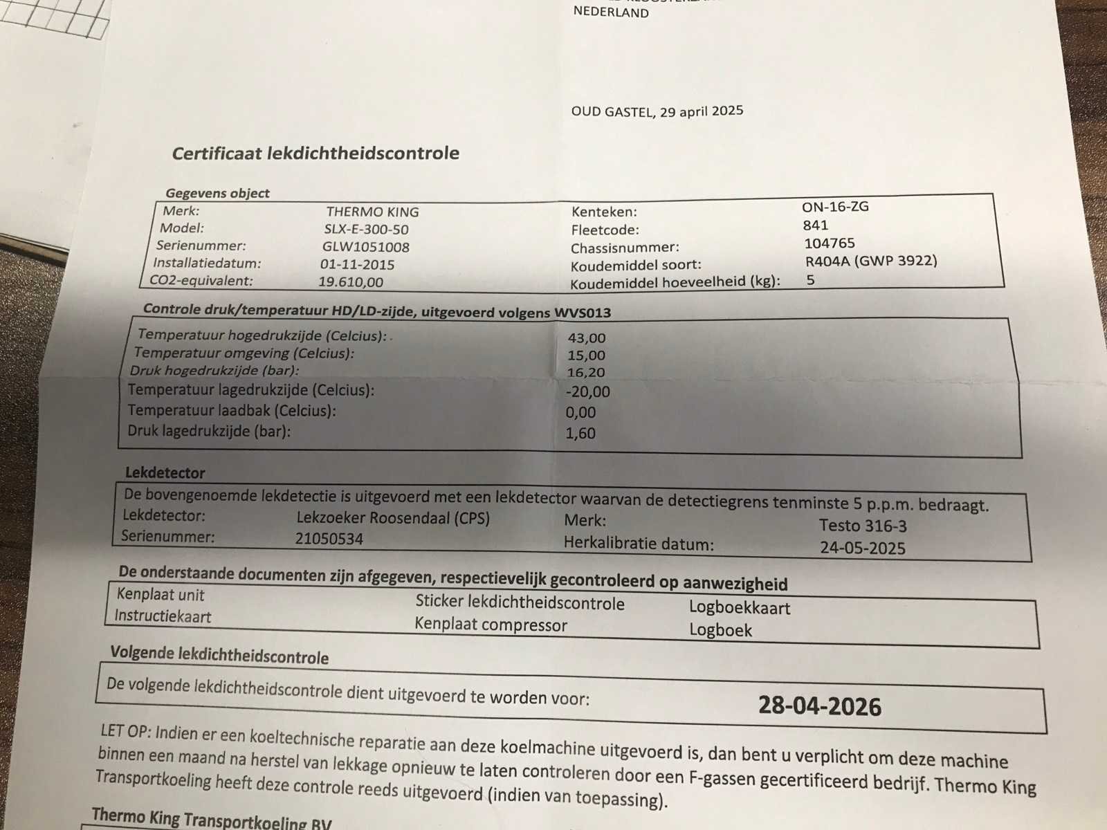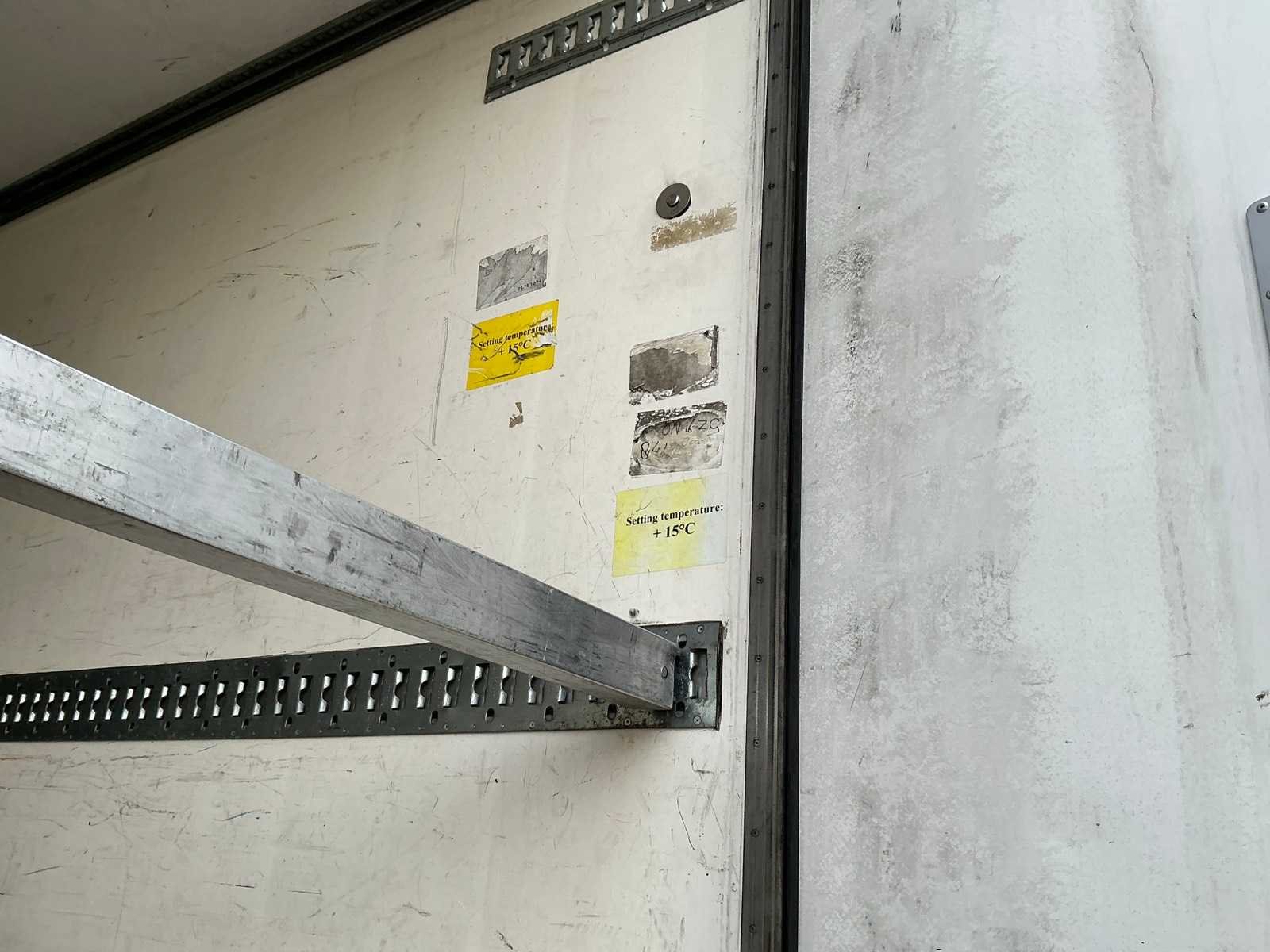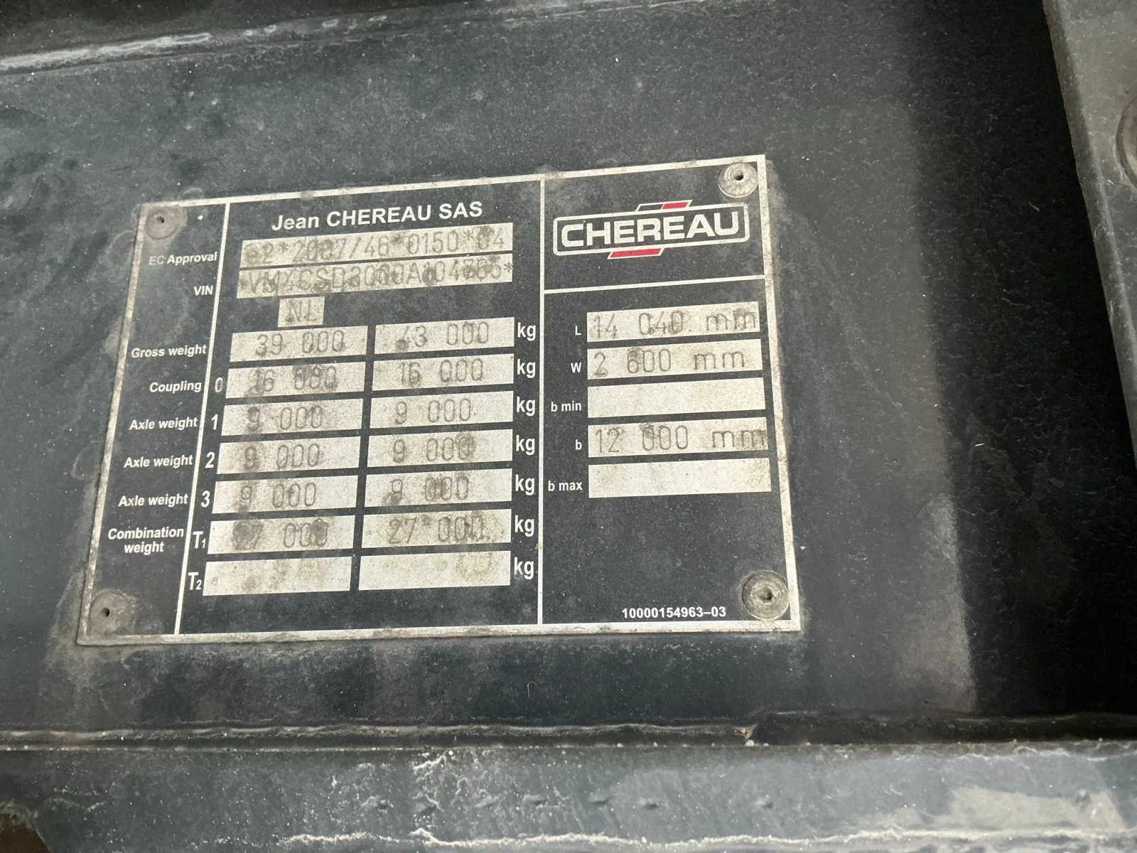 Max massa 43000kg, wielbasis 876cm, voorzien van ThermoKing SLX-E-400-50 koelmotor met 400Volt aansluiting, luchtgeveerde SAF assen, roestvast stalen achterkalf Nee Merk: Chereau Type: CSD3 Bouwjaar: 2015 Chassisnummer VIN: VM4CSD3000A104765 Kenteken: ON-16-ZG Datum eerste toelating (NL): 2015-10-22 Datum eerste toelating: 2015-10-22 APK vervaldatum: 2026-08-21 Aantal assen: 3 Laadvermogen: 33850kg Koeltrailer: true Eigen gewicht: 9150kg Zelf rijdend exporteren: Ja