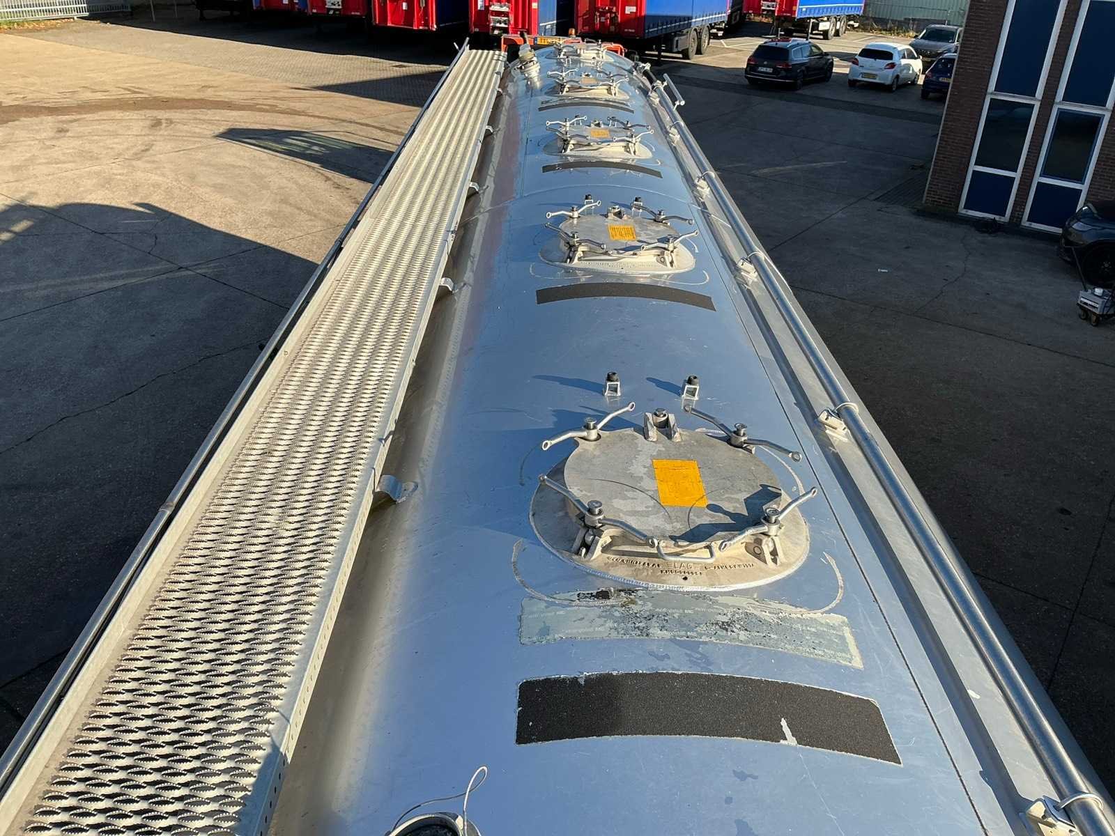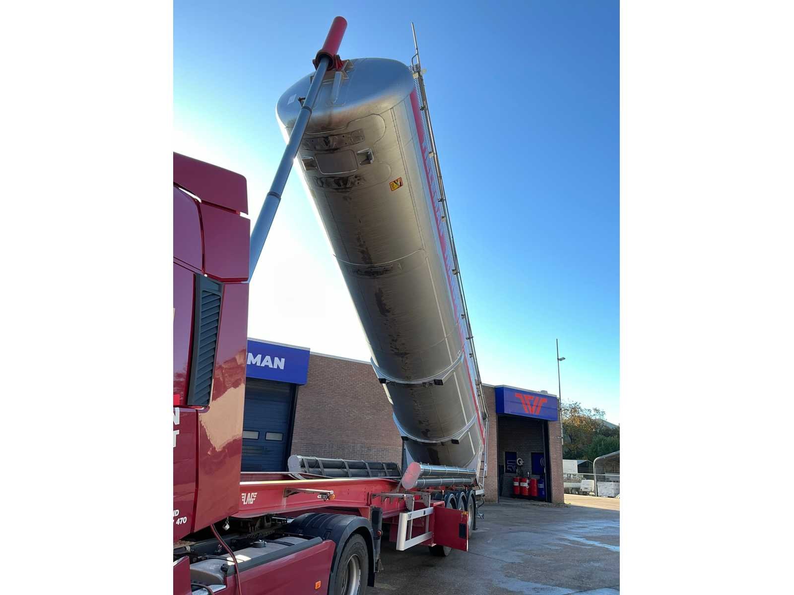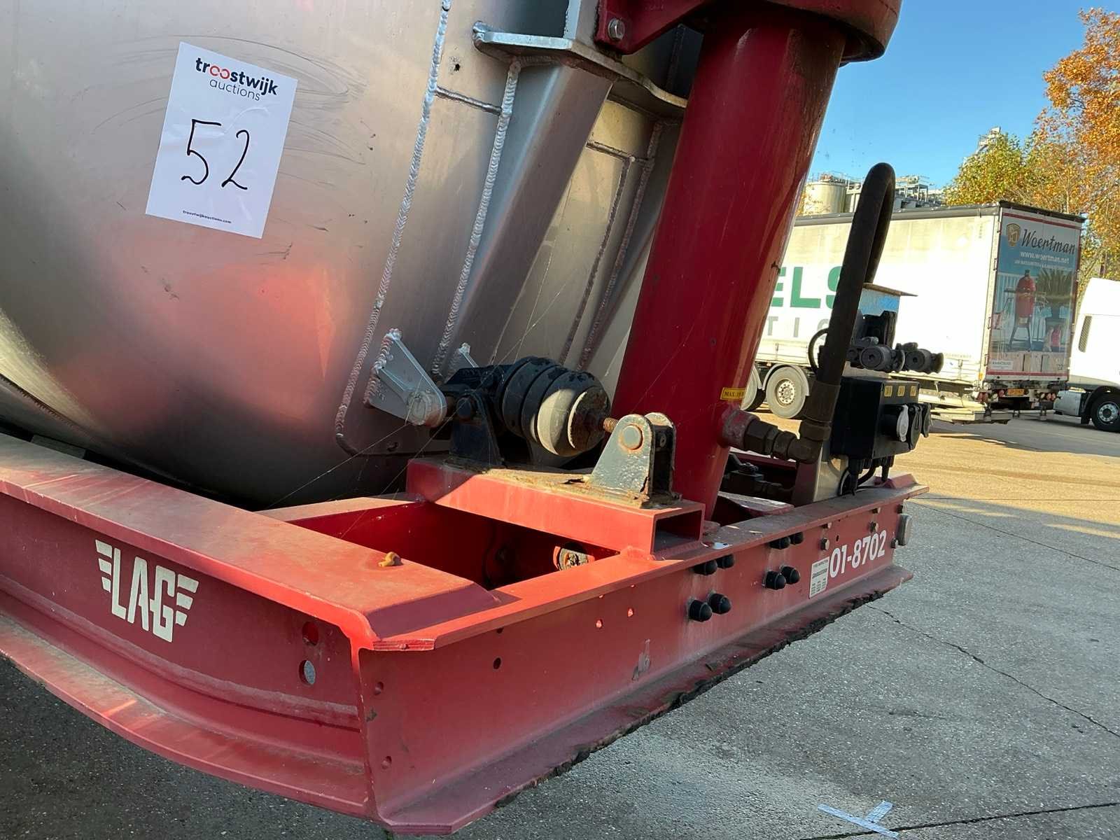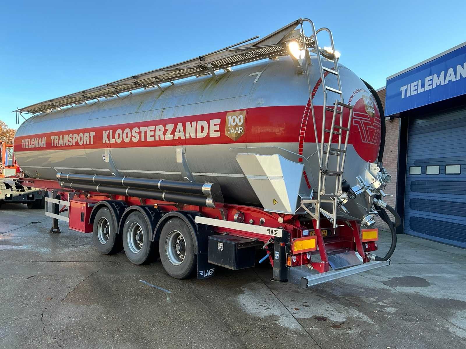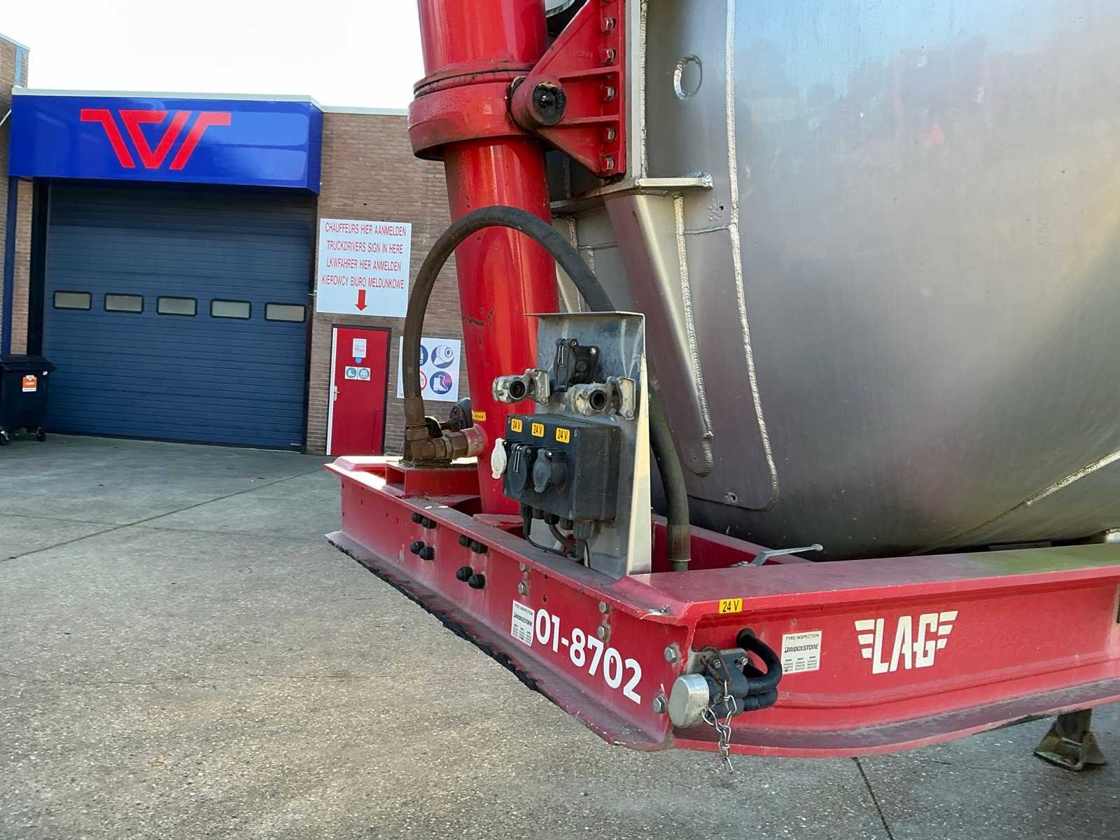 Max massa 39000kg, wielbasis 866cm., voorzien van BPW Eco plus assen waarvan 1e as als lift-as, tank, tankcapaciteit 61000liter, 6 deksels, bedrijfsdruk max 2 bar, max bpvacuum 0,016 bar, elektrische hydrauliekpomp, laatste transport met sepioliet, tank niet gereinigd, kan residu aanwezig zijn Nee Merk: LAG Type: 0-3TI Type aanhangwagencarrosserie: Tankopbouw Bouwjaar: 2014 Chassisnummer VIN: YB4301013EL048415 Kenteken: OR-54-XZ Datum eerste toelating (NL): 2019-05-10 Datum eerste toelating: 2014-09-25 APK vervaldatum: 2026-10-04 Aantal assen: 3 Laadvermogen: 32100kg Eigen gewicht: 6900kg Totale afmeting L: 13470mm Totale afmeting Breedte: 2550mm Zelf rijdend exporteren: Ja