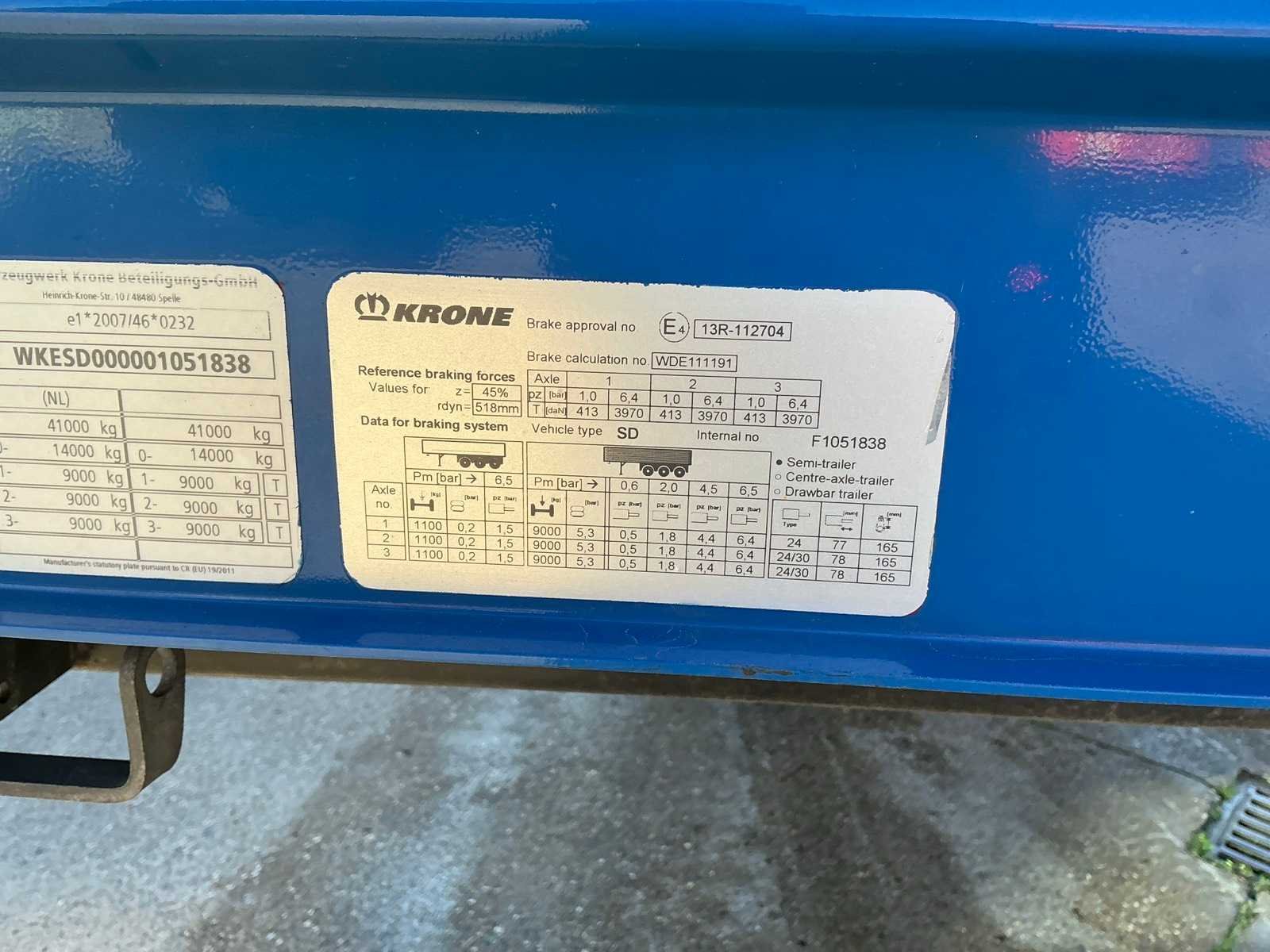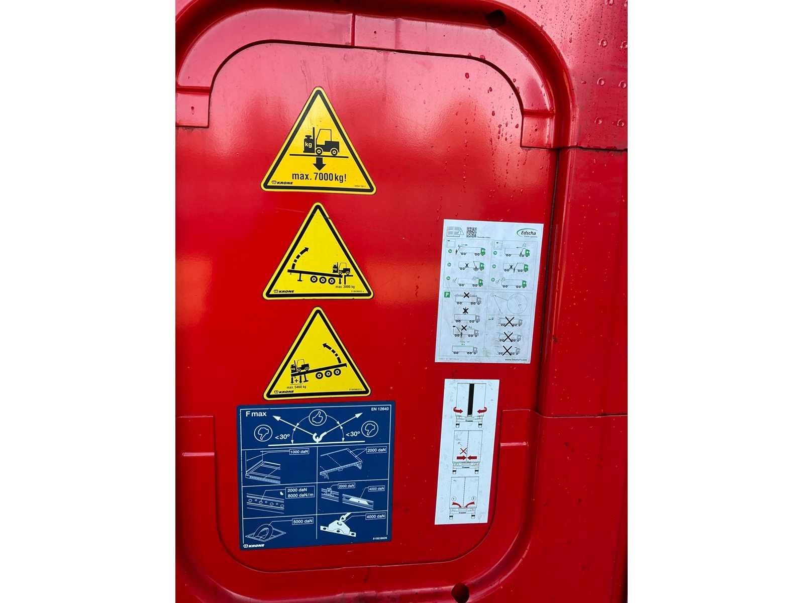 Max massa 41000kg, Afstand hart koppeling tot achterzijde voertuig 1200cm; Wielbasis 879 cm; Krone luchtgeveerde assen, 1e as is hefas; Voorzien van schuifzeilen, aluminium zijborden, schuifdak en palletkist Nee Merk: Krone Type: SD Type aanhangwagencarrosserie: Tautliner Bouwjaar: 2022 Chassisnummer VIN: WKESD0000001051838 Kenteken: OT-39-NP Datum eerste toelating (NL): 2022-10-06 Datum eerste toelating: 2022-10-06 APK vervaldatum: 2026-10-06 Aantal assen: 3 Laadvermogen: 33790kg Eigen gewicht: 7210kg Totale afmeting L: 13860mm Totale afmeting Breedte: 2550mm Zelf rijdend exporteren: Ja