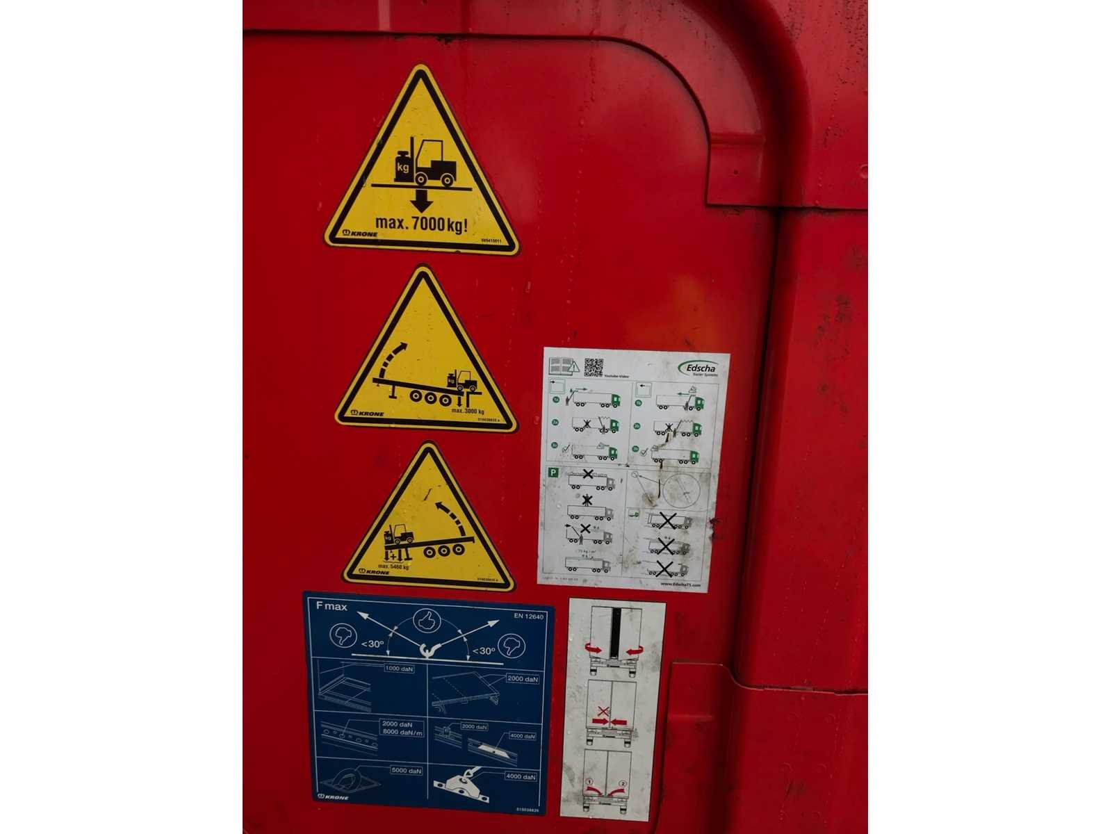 Max massa 41000kg, Afstand hart koppeling tot achterzijde voertuig 1200cm; Wielbasis 879 cm; 1e as is hefas; Voorzien van schuifzeilen, zijborden, schuifdak en palletkist Nee Merk: Krone Type: SD Type aanhangwagencarrosserie: Tautliner Bouwjaar: 2021 Chassisnummer VIN: WKESD000000974926 Kenteken: OS-95-SV Datum eerste toelating (NL): 2021-04-30 Datum eerste toelating: 2021-04-30 APK vervaldatum: 2026-04-30 Aantal assen: 3 Laadvermogen: 33822kg Eigen gewicht: 7207kg Totale afmeting L: 13860mm Totale afmeting Breedte: 2550mm Zelf rijdend exporteren: Ja