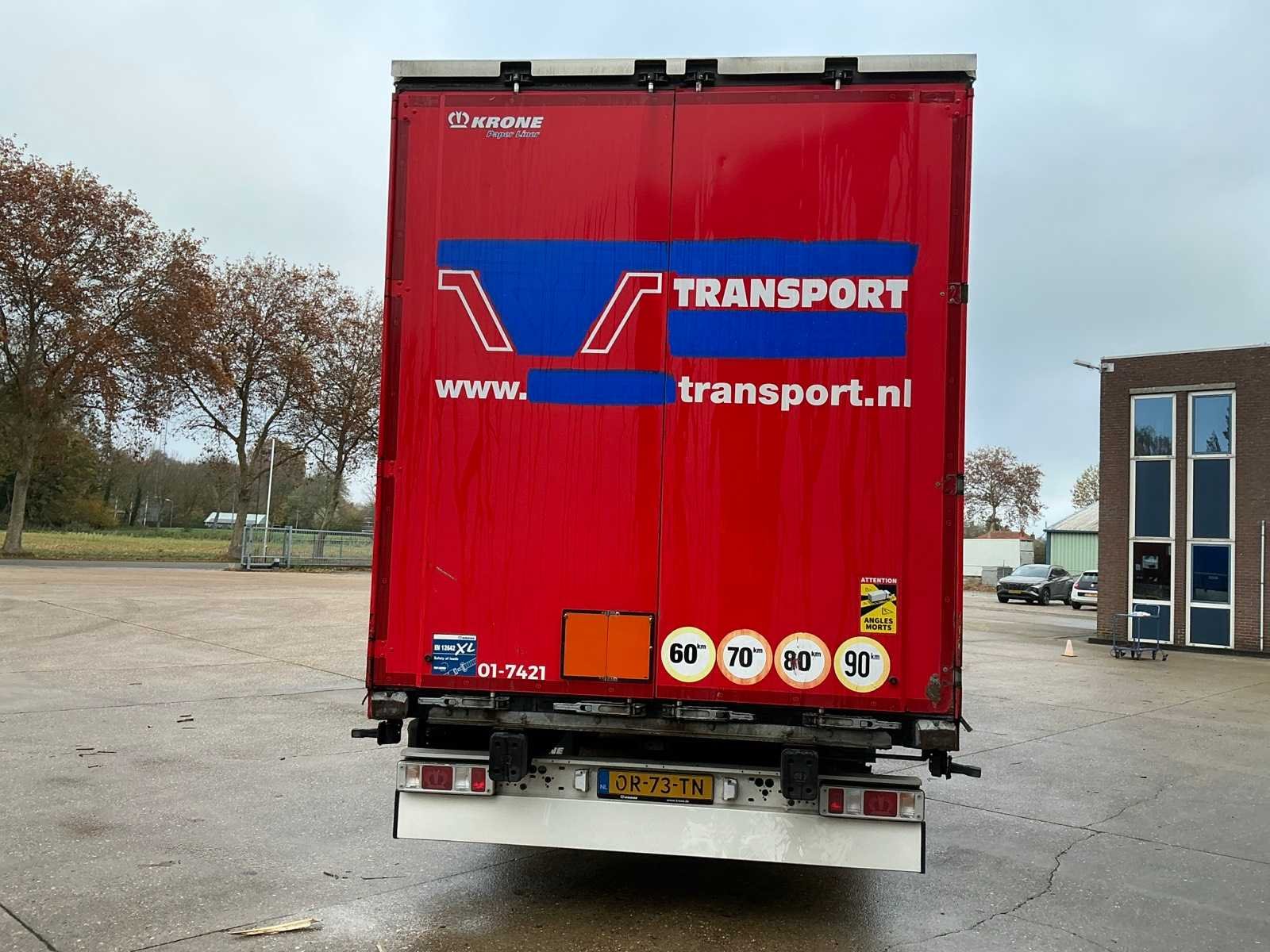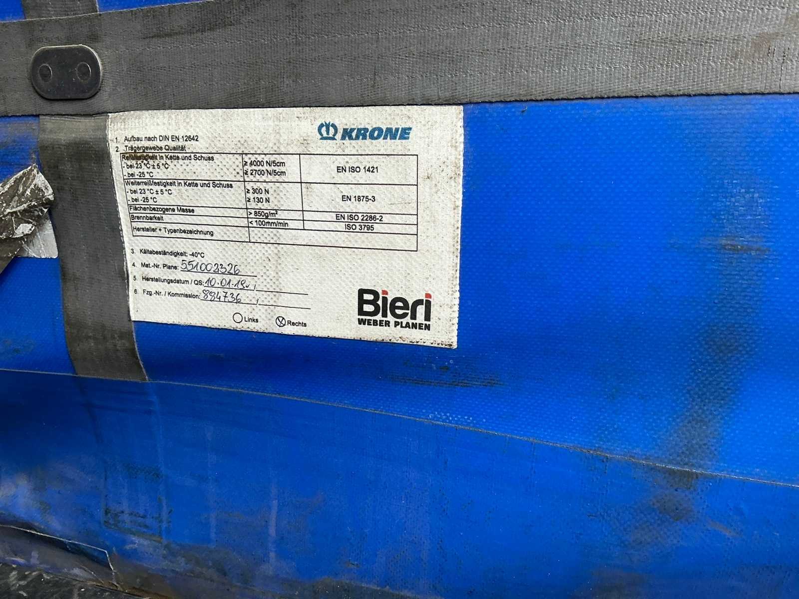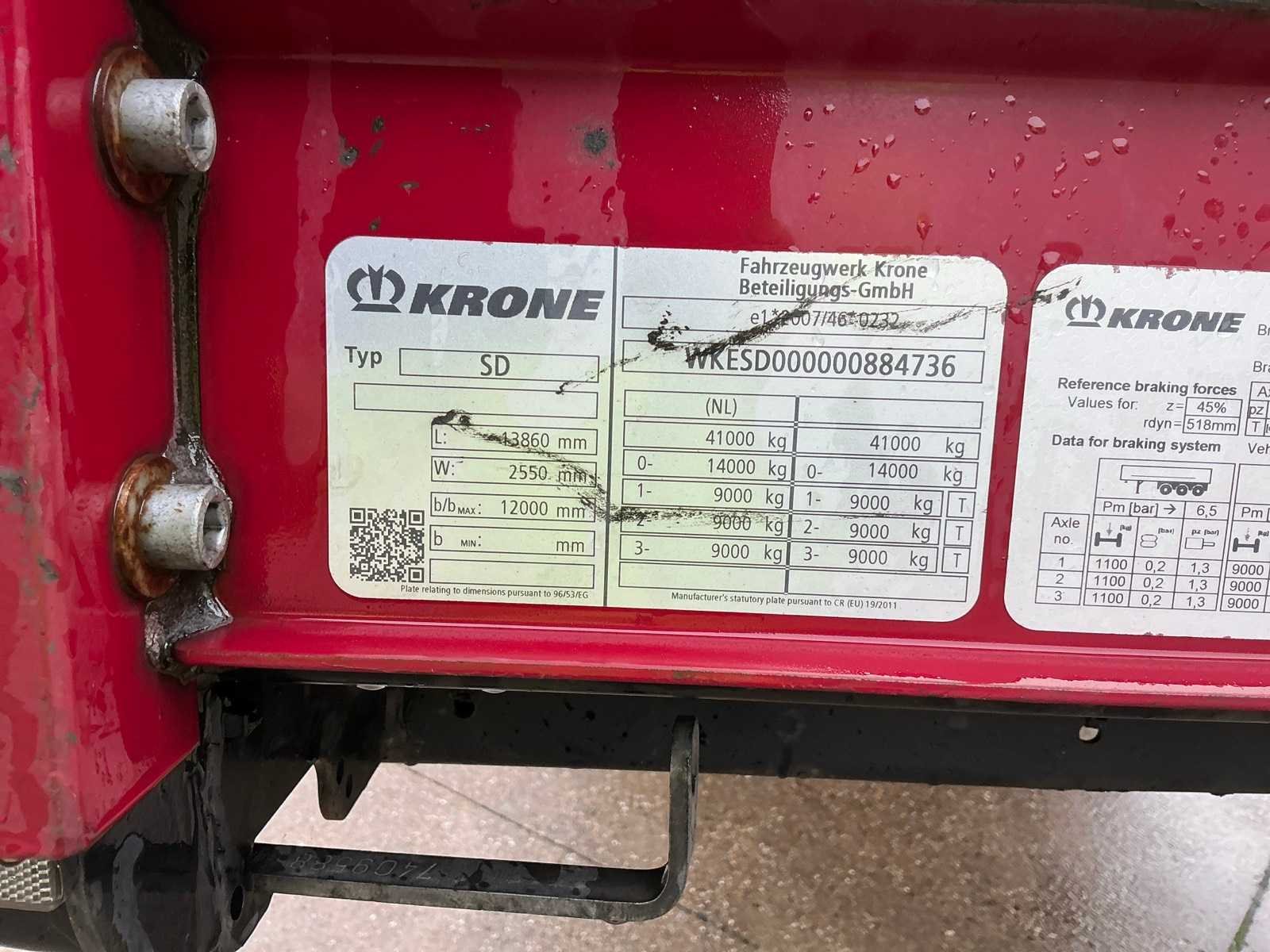 Voorzien van luchtgeveerde BPW assen, 1e as is lift-as, schuifzeilen, schuifdak, palletkist, bandenmaat 385/65R22.5 Nee Merk: Krone Type: SD Type aanhangwagencarrosserie: Tautliner Bouwjaar: 2019 Chassisnummer VIN: WKESD000000884736 Kenteken: OR-73-TN Datum eerste toelating (NL): 2019-02-15 Datum eerste toelating: 2019-02-15 APK vervaldatum: 2026-02-15 Aantal assen: 3 Laadvermogen: 33793kg Zelf rijdend exporteren: Ja