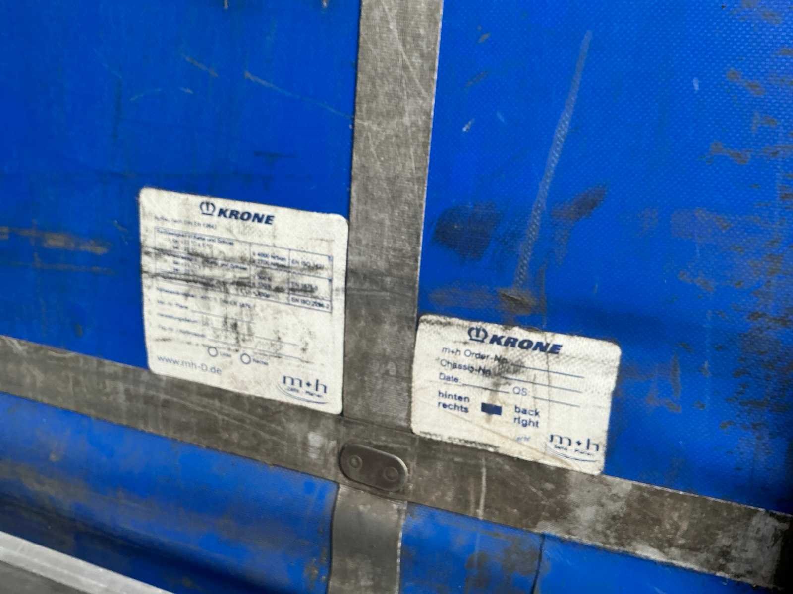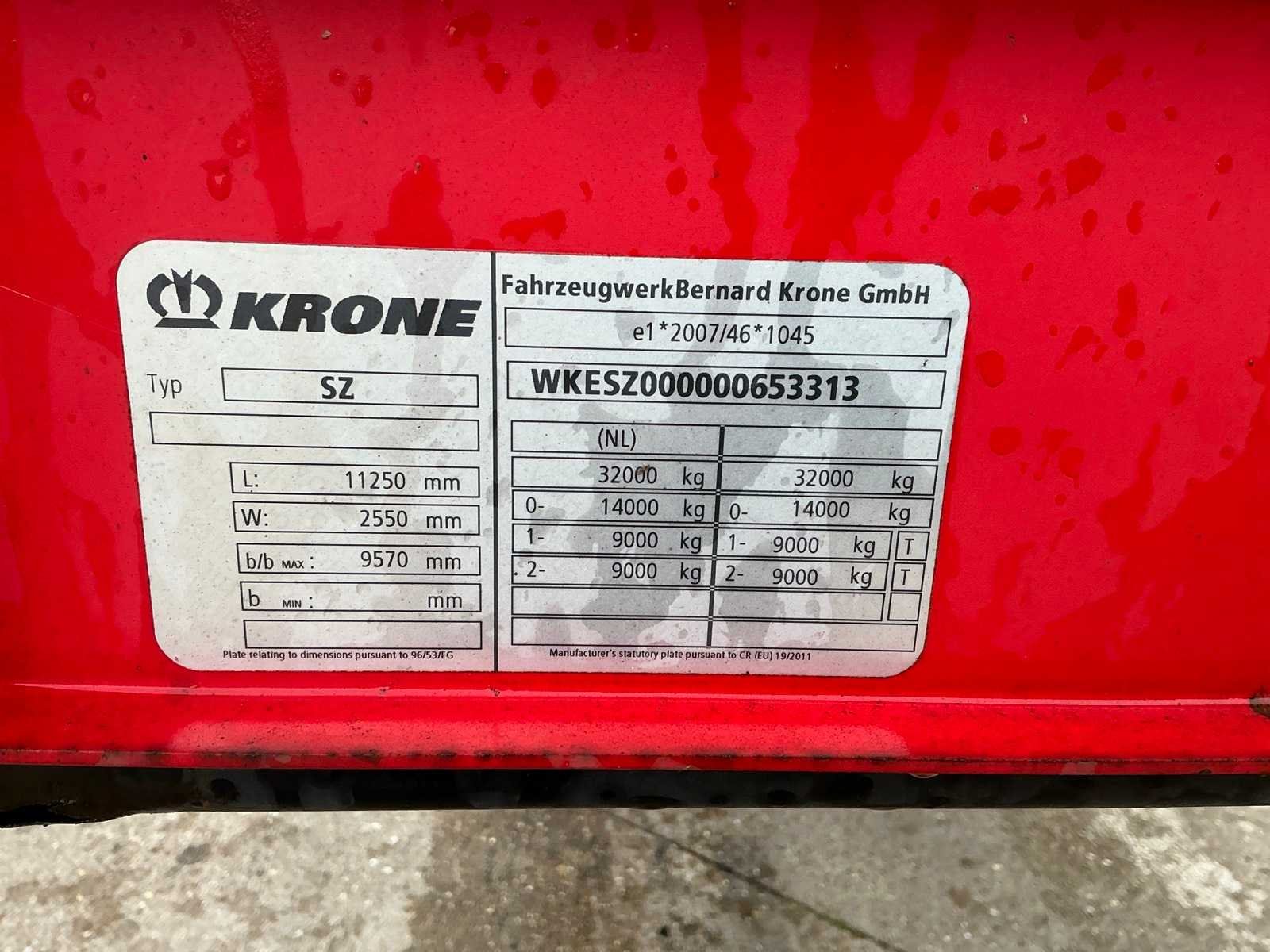 Max massa 32000kg, wielbasis 653cm, voorzien van luchtgeveerde BPW Eco plus assen, gestuurde achter-aszijborden, Dhollandia laadklep en schuifdak Nee Merk: Krone Type: SZ Type aanhangwagencarrosserie: Tautliner Bouwjaar: 2015 Chassisnummer VIN: WKESZ000000653313 Kenteken: ON-94-SF Datum eerste toelating (NL): 2015-04-02 Datum eerste toelating: 2015-04-02 APK vervaldatum: 2026-04-02 Aantal assen: 2 Laadvermogen: 25381kg Eigen gewicht: 6619kg Zelf rijdend exporteren: Ja