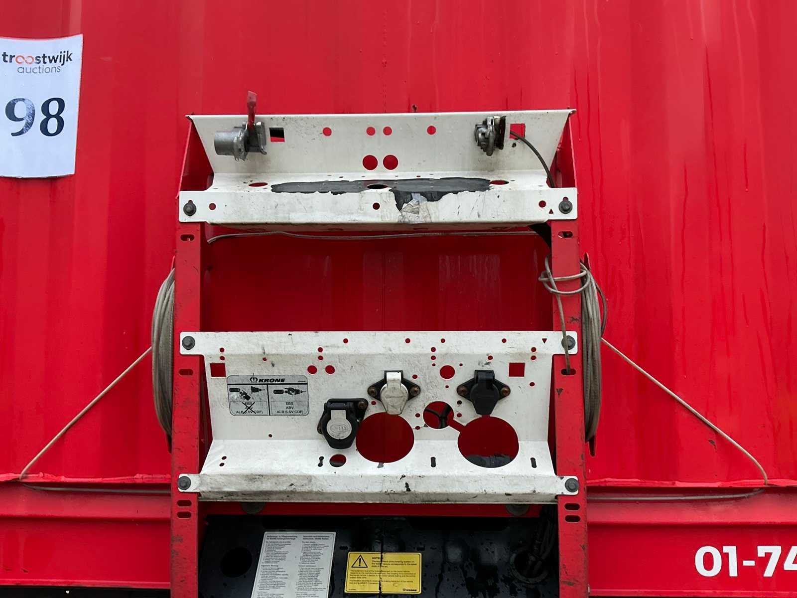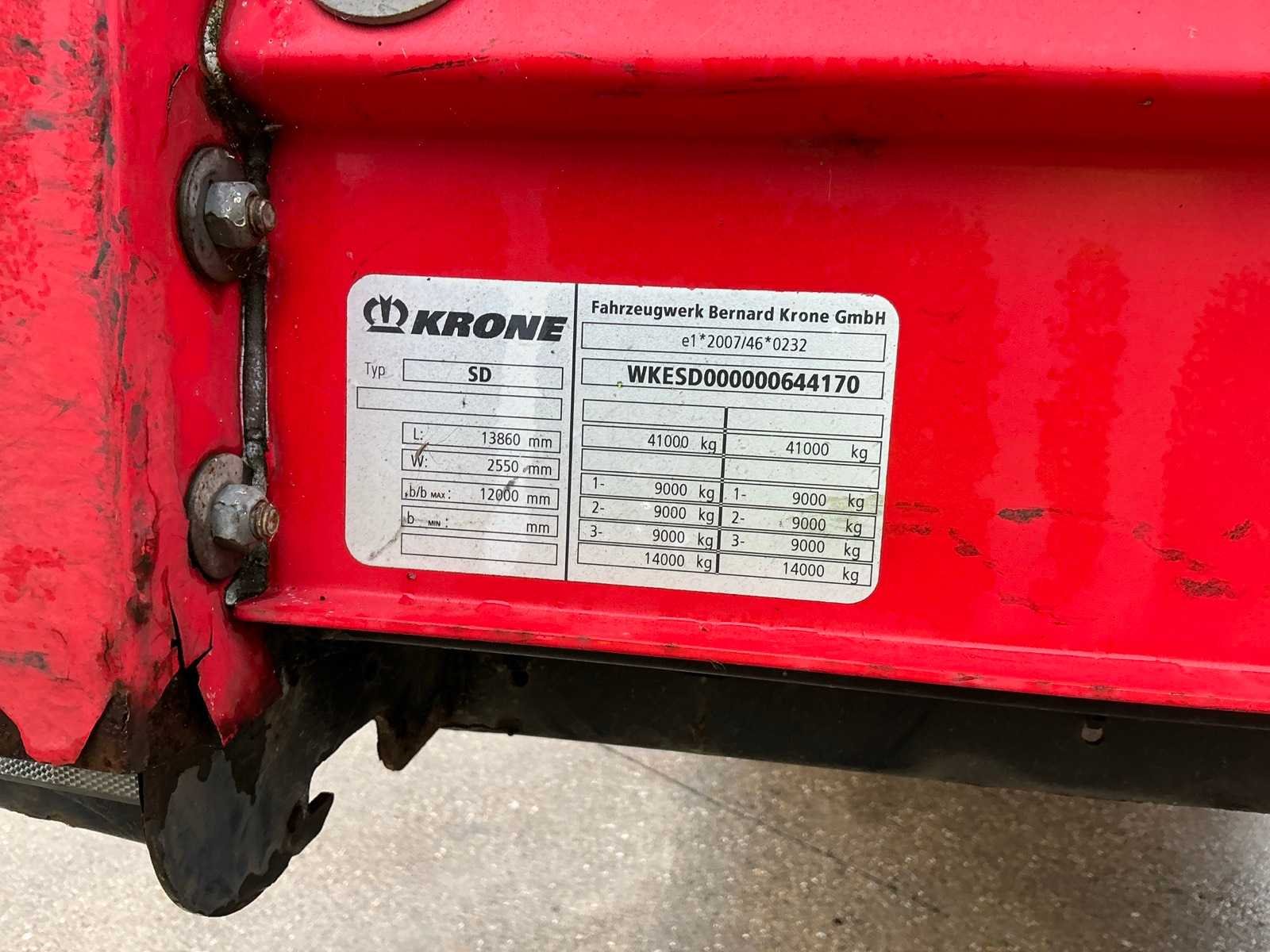 Voorzien van luchtgeveerde BPW assen, 1e as is lift-as, zonder inhoud Nee Merk: Krone Type: SD Type aanhangwagencarrosserie: Tautliner Bouwjaar: 2014 Chassisnummer VIN: WKESD000000644170 Kenteken: ON-54-NR Datum eerste toelating (NL): 2015-01-06 Datum eerste toelating: 2015-01-06 APK vervaldatum: 2026-01-10 Aantal assen: 3 Laadvermogen: 34111kg Totale afmeting Breedte: 2550mm Zelf rijdend exporteren: Nee No self drive export!: true