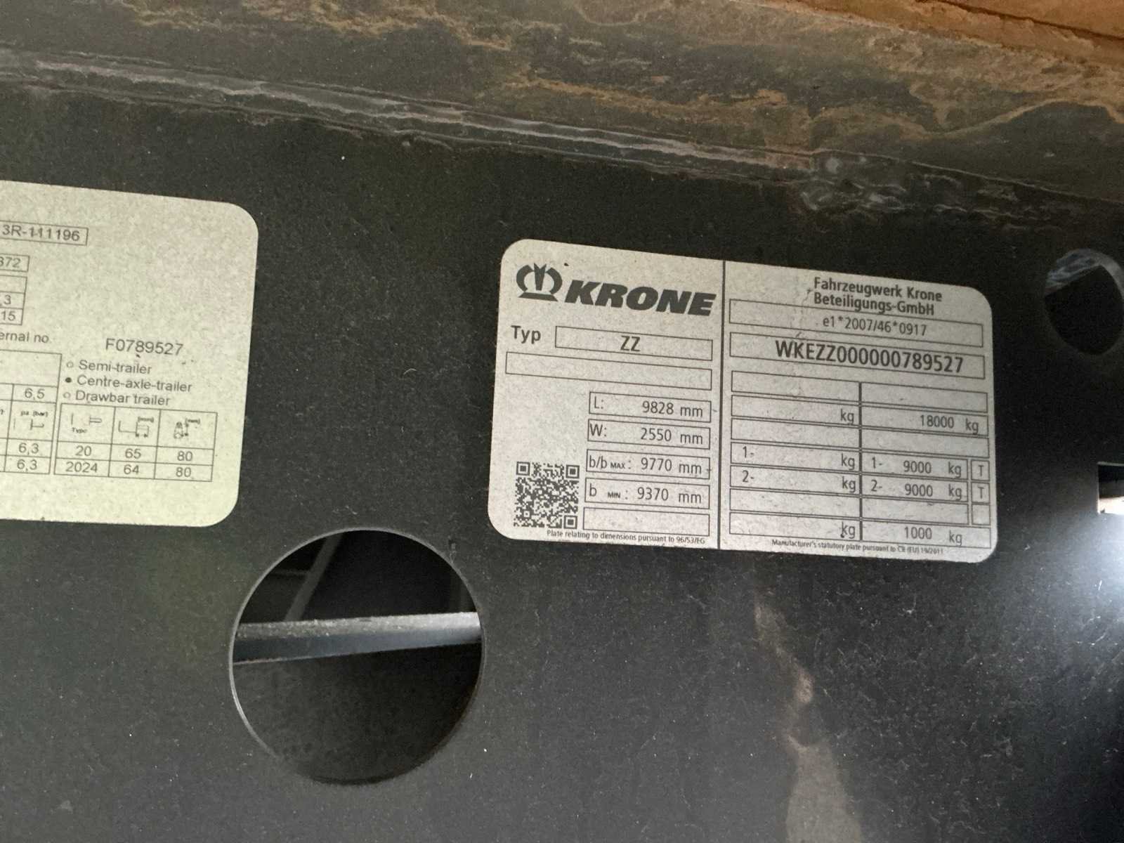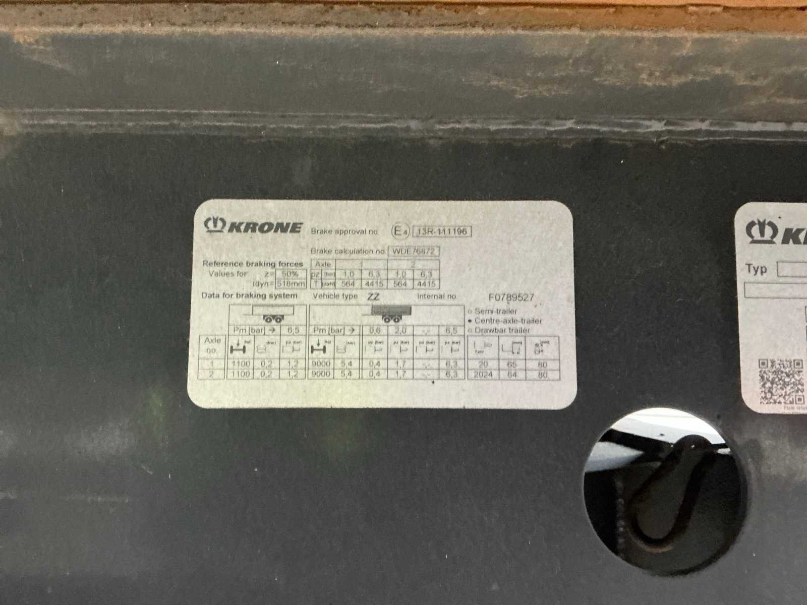 Max massa 18000kg; Wielbasis 663cm, Afstand hart koppeling tot achterzijde voertuig 977cm, voorzien van luchtgeveerde BPW assen, 1 steunpoot voor, 2 steunpoten achter. No Merk: Krone Type: ZZ Model: 18XFO Bouwjaar: 2017 Chassisnummer: WKEZZ000000789527 Aantal assen: 2 Ledig gewicht: 4920kg Laadvermogen: 13080kg Zeiltrailer: true Datum eerste toelating: 2017-12-01 Datum eerste toelating (NL): 2017-12-01 APK vervaldatum: 2025-12-04 Kenteken: 83-WR-XT Lengte: 968cm Breedte: 255cm Nationaliteit documenten: Nederlands Zelf rijdend exporteren: Nee No self drive export!: true