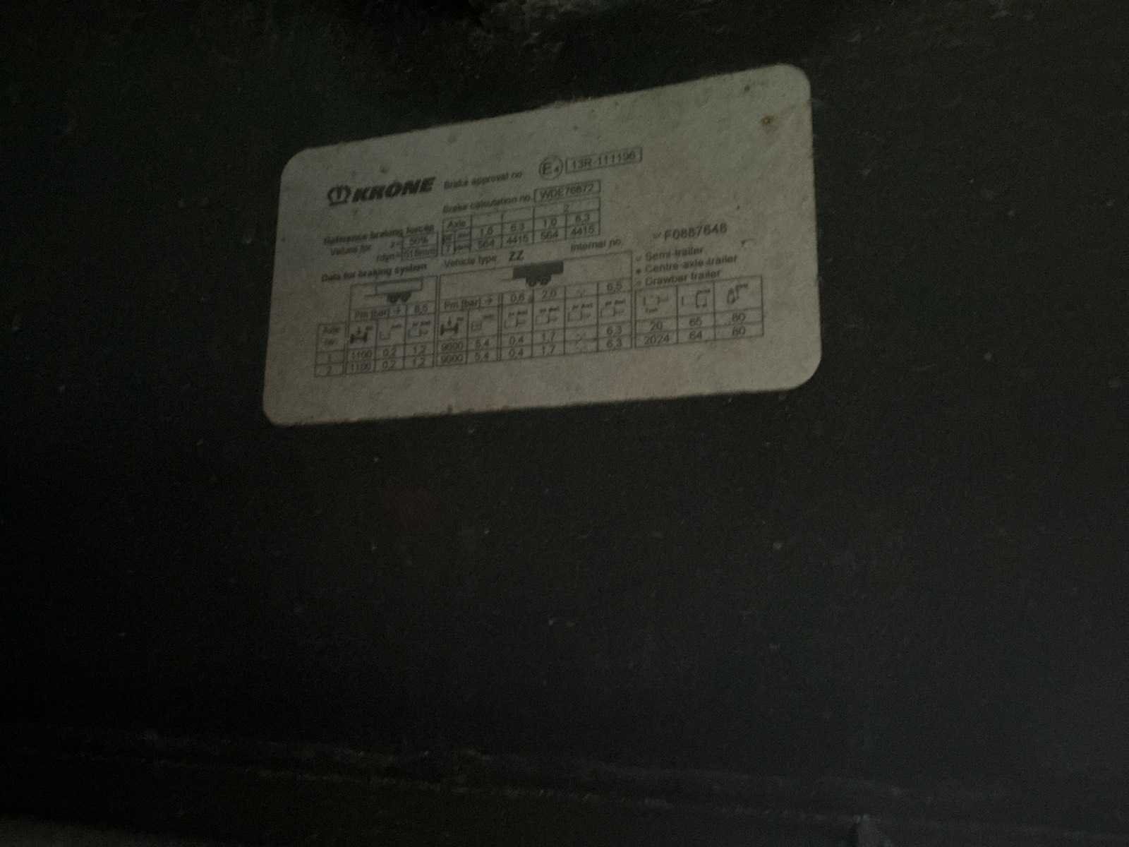 Wipkar, Max massa 18000kg; Wielbasis 638cm, Afstand hart koppeling tot achterzijde voertuig 977cm, voorzien van luchtgeveerde BPW assen, 1 steunpoot voor en 2 steunpoten achter, schuifzeilen, schuifdak en aluminium zijborden No Merk: Krone Type: ZZ Model: 18XFO Bouwjaar: 2019 Chassisnummer: WKEZZ000000887648 Aantal assen: 2 Ledig gewicht: 4720kg Laadvermogen: 13280kg Zeiltrailer: true Datum eerste toelating: 2019-08-29 Datum eerste toelating (NL): 2019-08-29 APK vervaldatum: 2026-03-27 Kenteken: 75-WV-HK Lengte: 943cm Breedte: 255cm Nationaliteit documenten: Nederlands Zelf rijdend exporteren: Ja