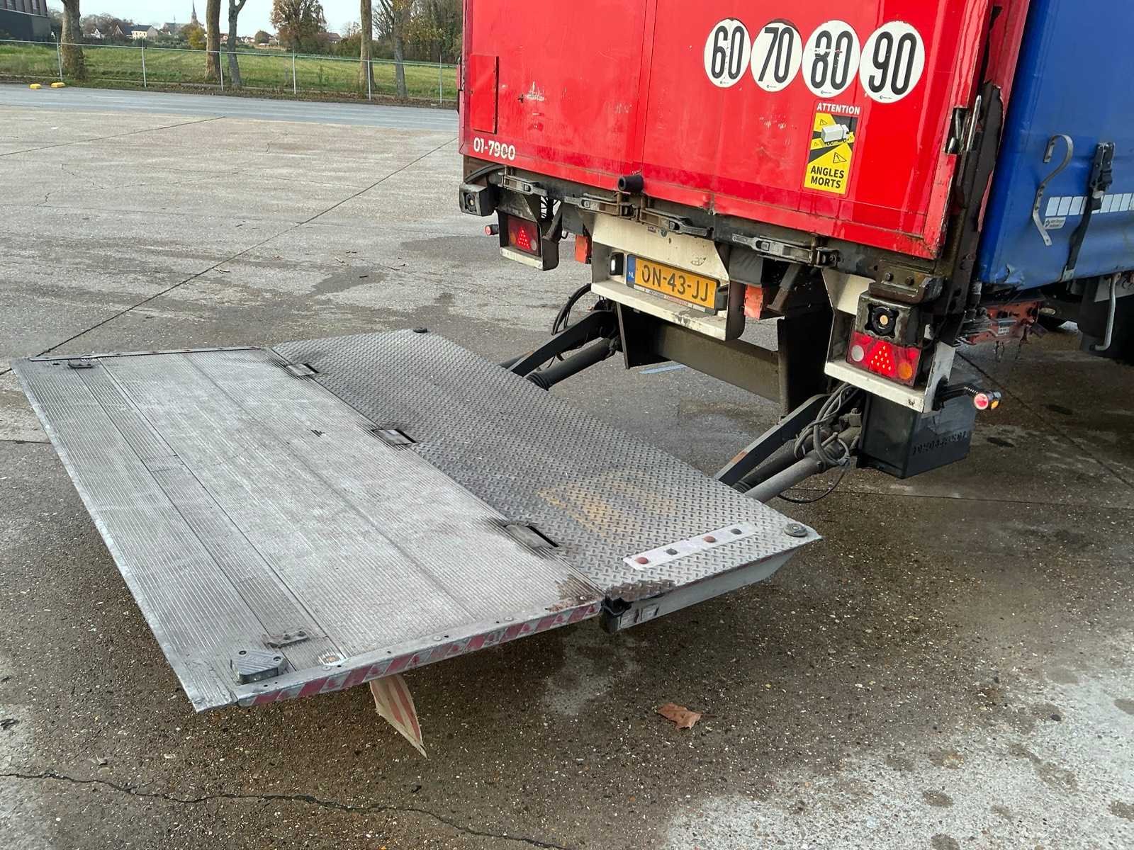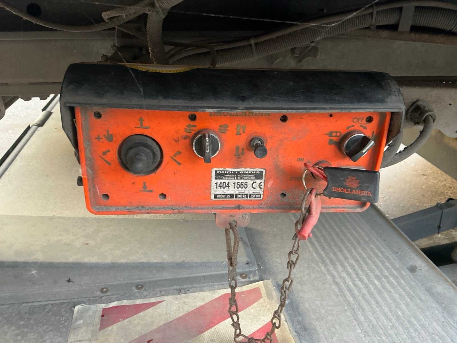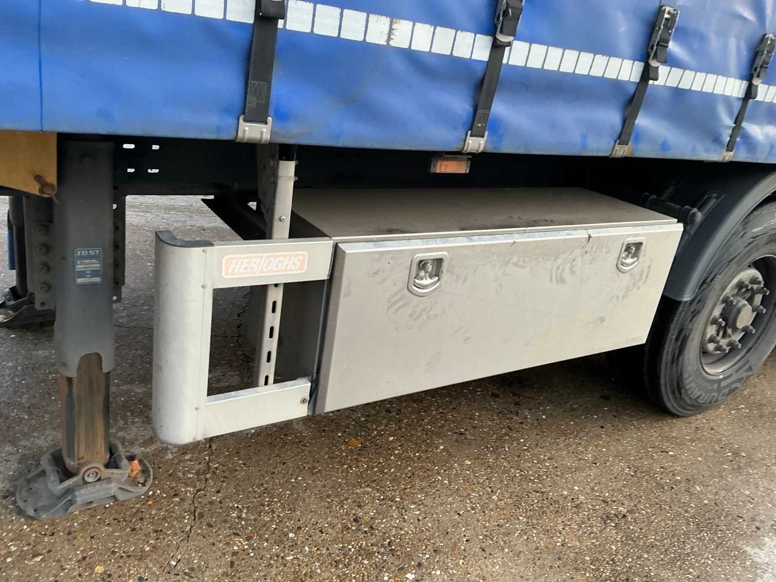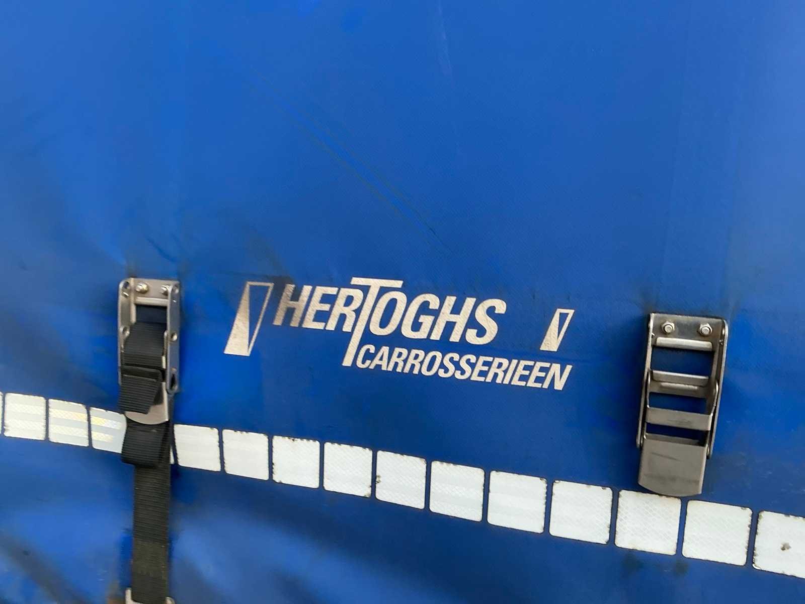 Max massa 33000kg. Wielbasis 677cm, Voorzien van luchtgeveerde BPW Eco plus assen waarvan achterste as gedwongen gestuurd, Dhollandia ondervouw laadklep, aluminium zijborden schuifzeilen en schuifdak Nee Merk: Hertoghs Type: O2 Type aanhangwagencarrosserie: Tautliner Bouwjaar: 2014 Chassisnummer VIN: XL90D233BES196443 Kenteken: ON-43-JJ Datum eerste toelating (NL): 2014-06-19 Datum eerste toelating: 2014-06-19 APK vervaldatum: 2026-06-23 Aantal assen: 2 Laadvermogen: 27290kg Eigen gewicht: 5710kg Totale afmeting L: 11720mm Totale afmeting Breedte: 2550mm Zelf rijdend exporteren: Ja