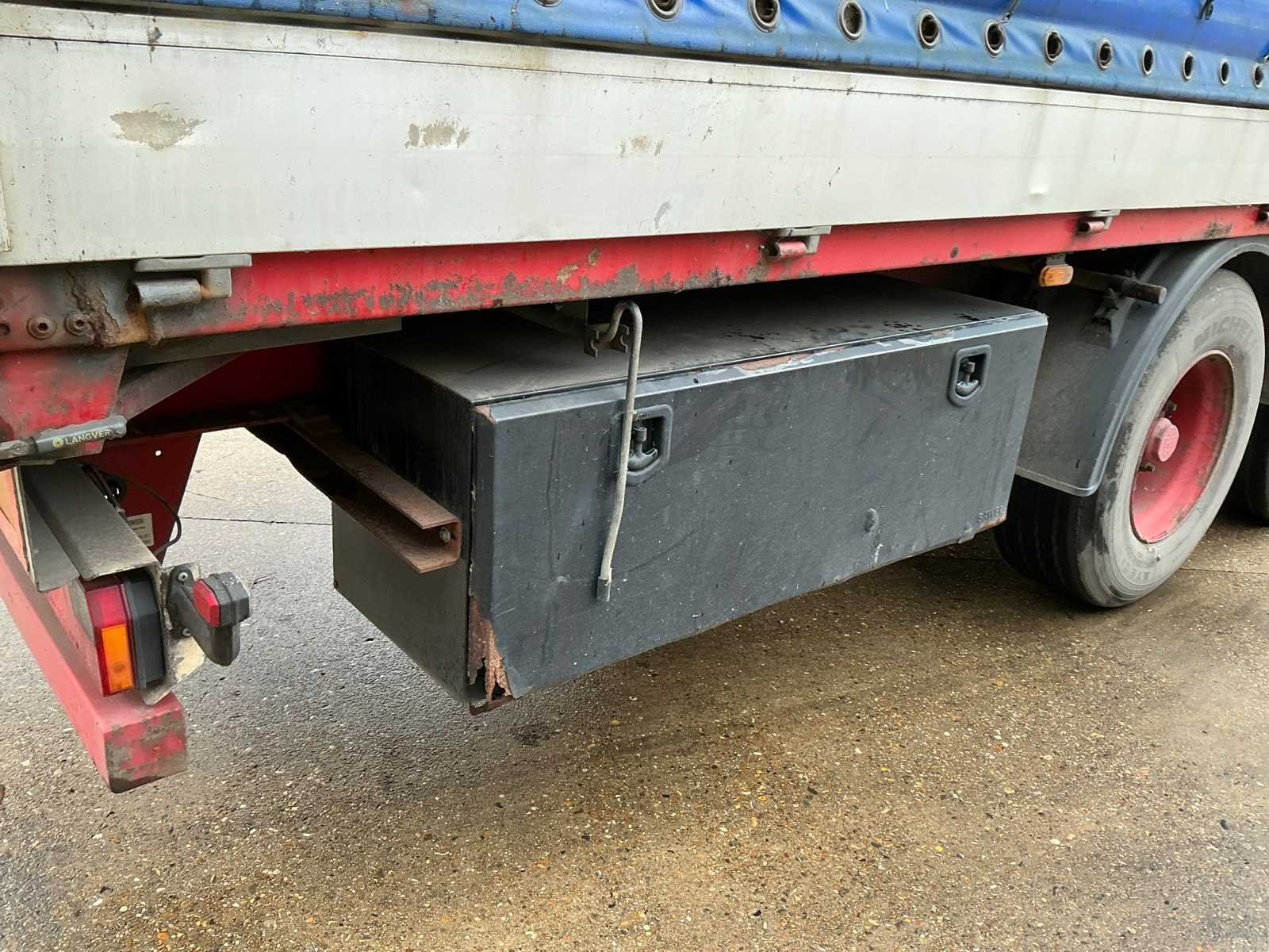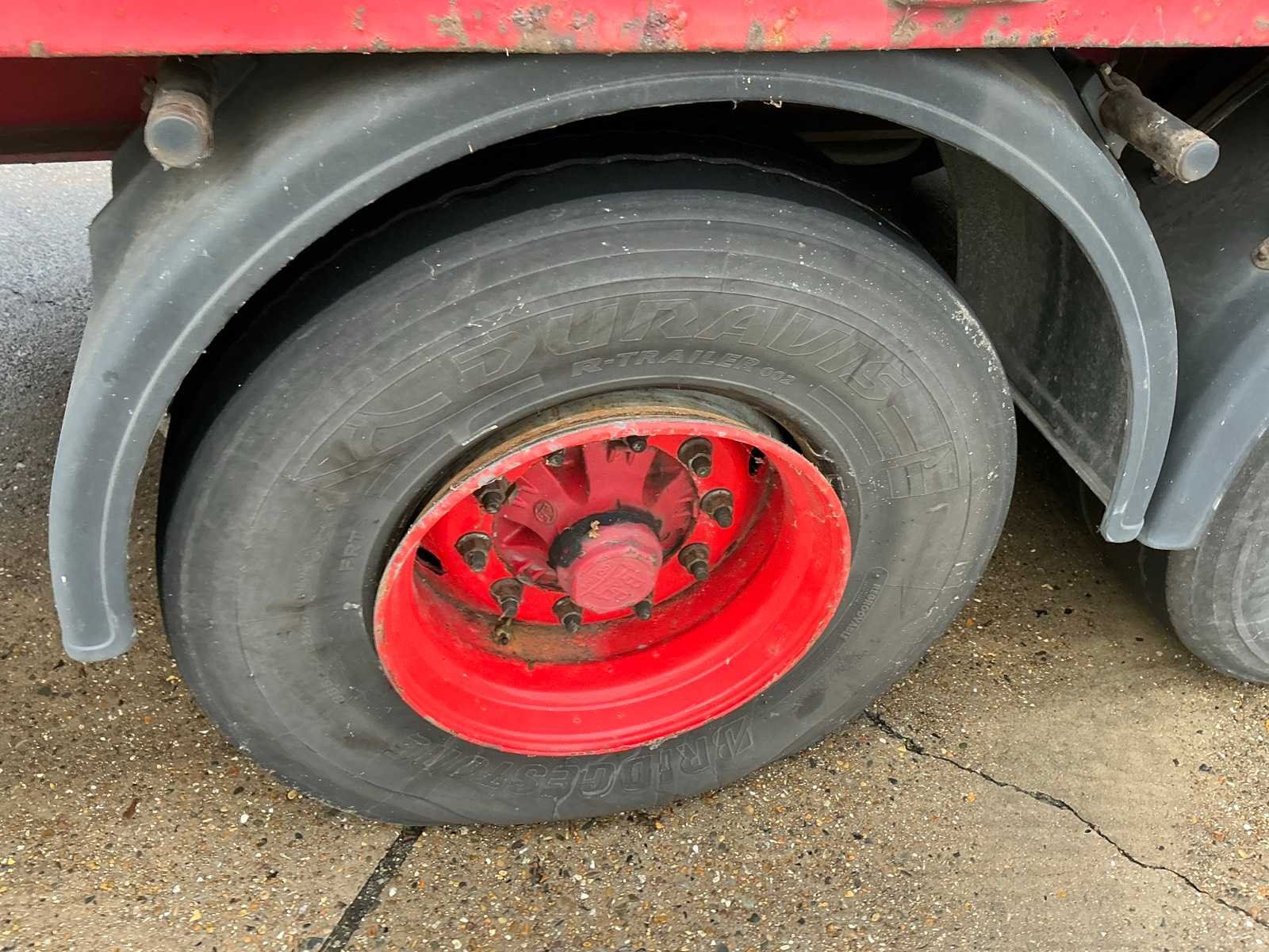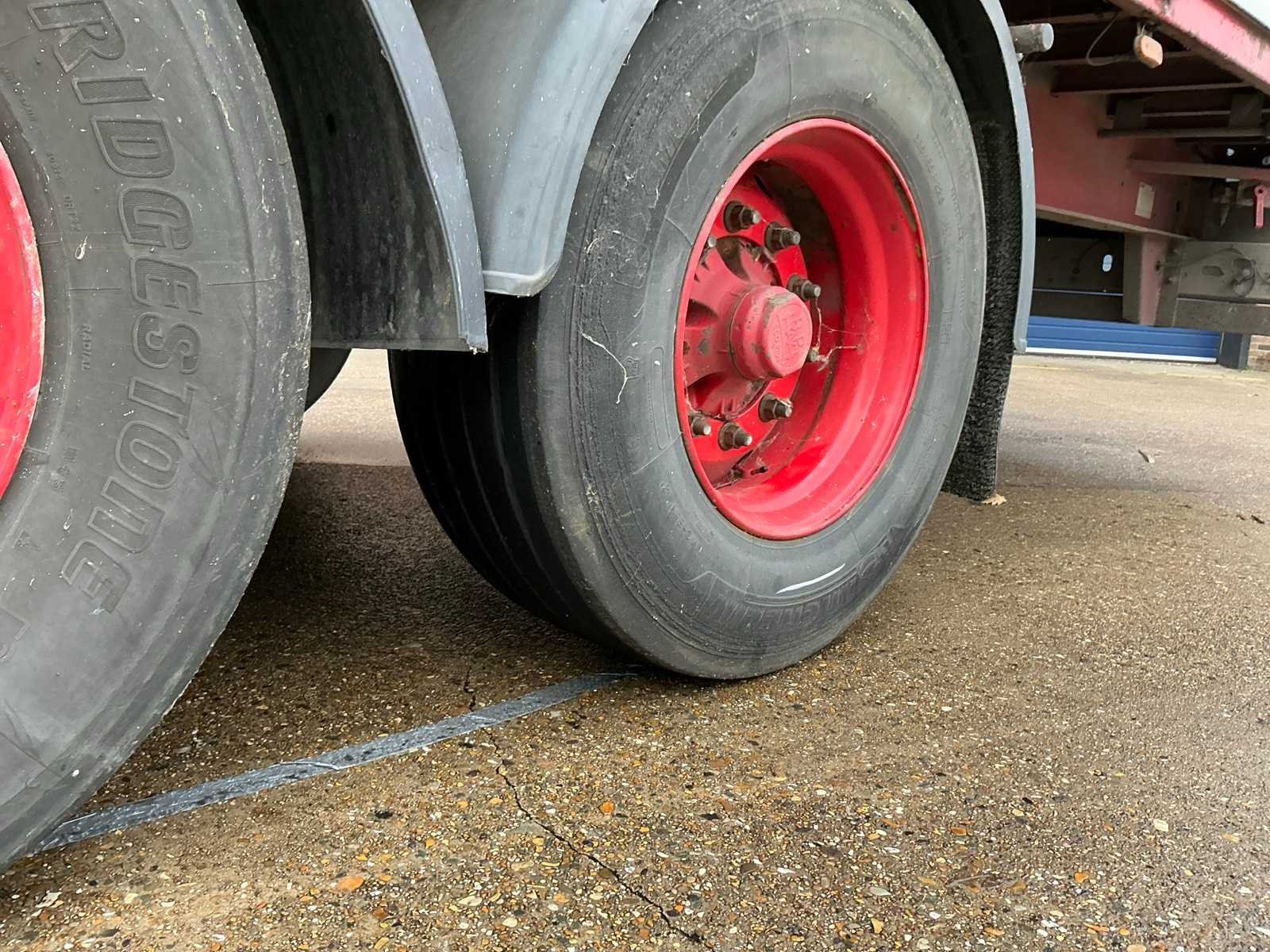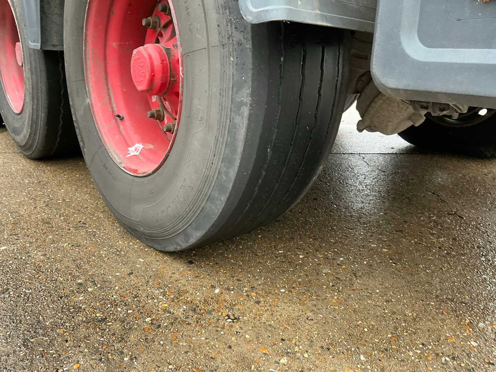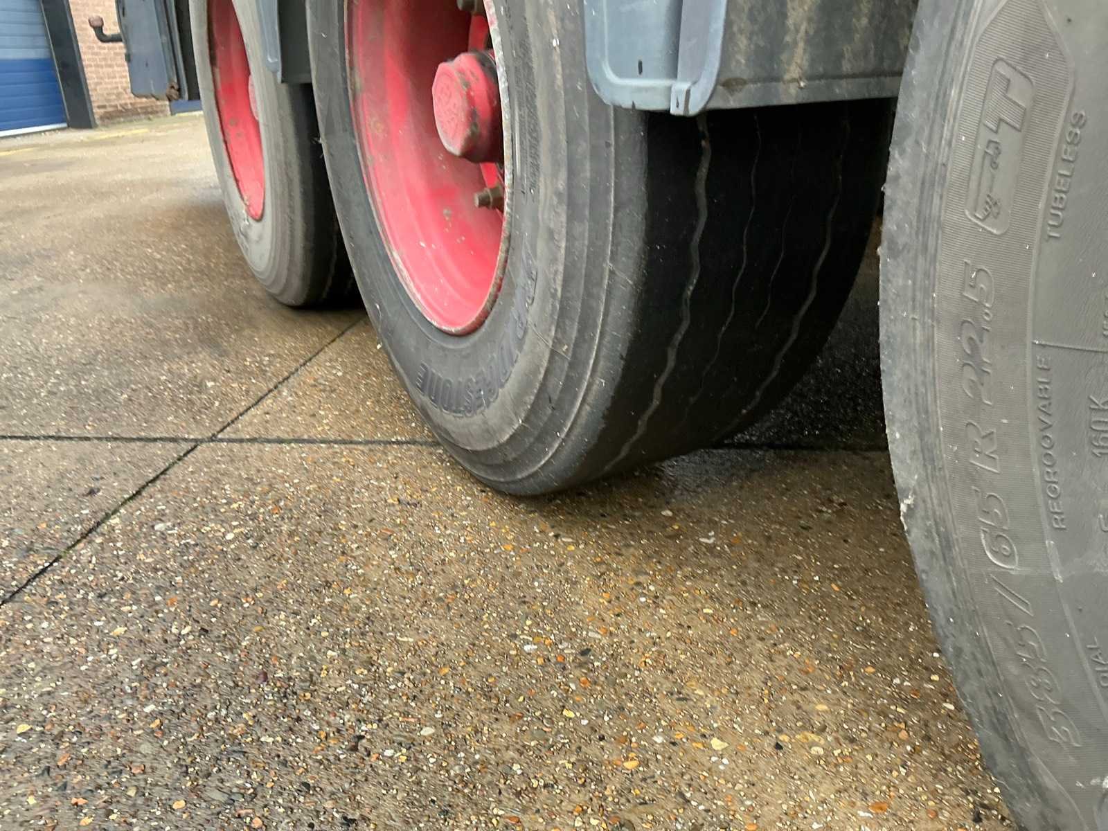 Max massa 41000kg., wielbasis 879cm; Afstand hart koppeling tot achterzijde voertuig 1200cm, As 1 uitgevoerd als hefas; Voorzien van luchtgeveerde BPW assen, 1e as is lift-as, aluminium zijborden, schuifzeilen en schuifdak, bandenmaat 385/65R22.5, 1deur ontbreekt, lekke ban(en) Nee Merk: Groenewegen Type: DRO-14-27 OK-32-NF Type aanhangwagencarrosserie: Tautliner Bouwjaar: 2008 Chassisnummer VIN: XL962000080002567 Kenteken: OK-32-NF Datum eerste toelating (NL): 2008-08-14 Datum eerste toelating: 2008-08-14 APK vervaldatum: 2024-04-26 Aantal assen: 3 Laadvermogen: 33700kg Eigen gewicht: 7300kg Totale afmeting L: 13860mm Totale afmeting Breedte: 2550mm Zelf rijdend exporteren: Nee No self drive export!: true