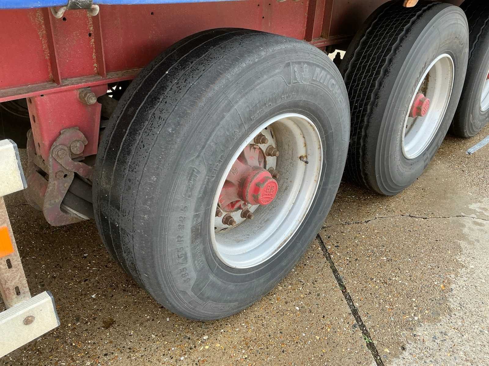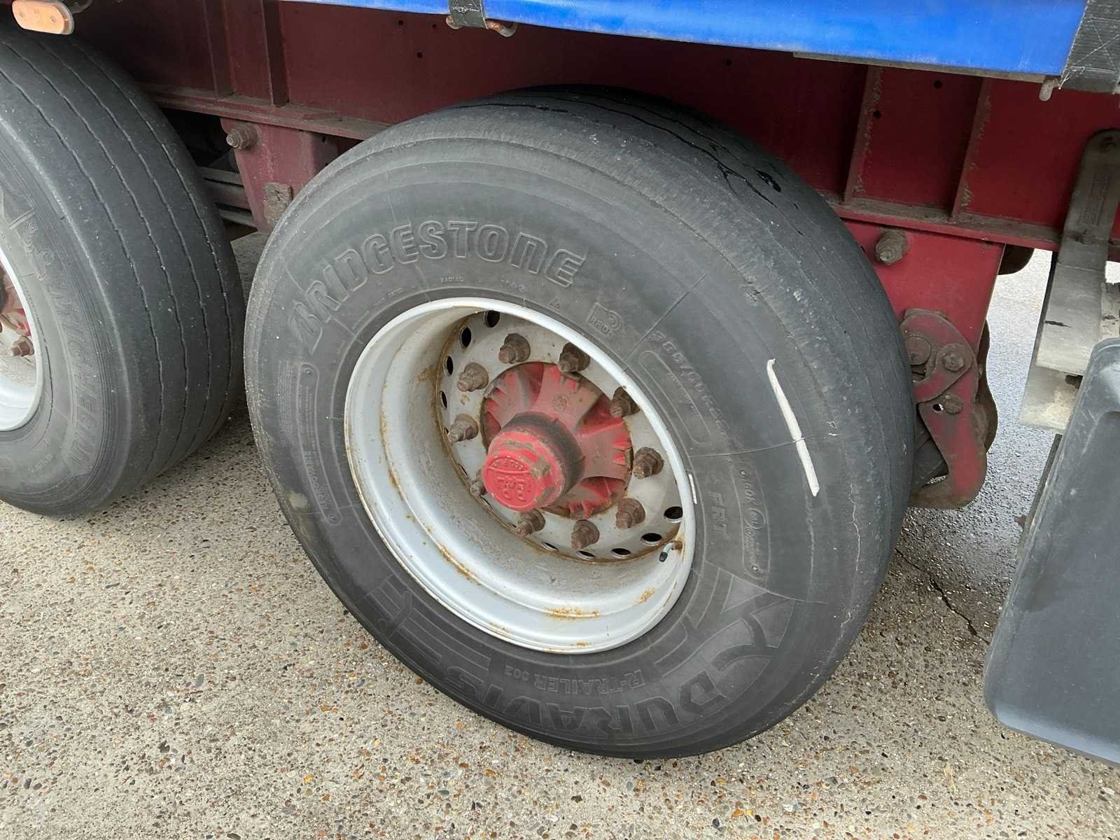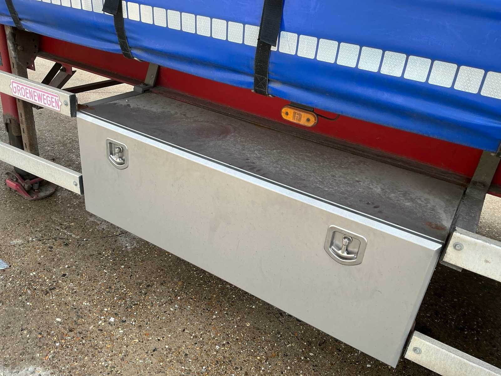 Max massa 41000kg., wielbasis 879cm; Afstand hart koppeling tot achterzijde voertuig 1200cm, As 1 uitgevoerd als hefas; Voorzien van luchtgevverde BPW Eco assen, aluminium schotten en AMA laadklep Nee Merk: Groenewegen Type: DRO-12-27 Type aanhangwagencarrosserie: Tautliner Bouwjaar: 2006 Chassisnummer VIN: XL962000060002055 Kenteken: OJ-87-DS Datum eerste toelating (NL): 2006-02-06 Datum eerste toelating: 2006-02-06 APK vervaldatum: 2026-03-02 Aantal assen: 3 Laadvermogen: 33700kg Hydraulische laadklep: true Eigen gewicht: 7300kg Totale afmeting L: 13860mm Totale afmeting Breedte: 2550mm Zelf rijdend exporteren: Ja