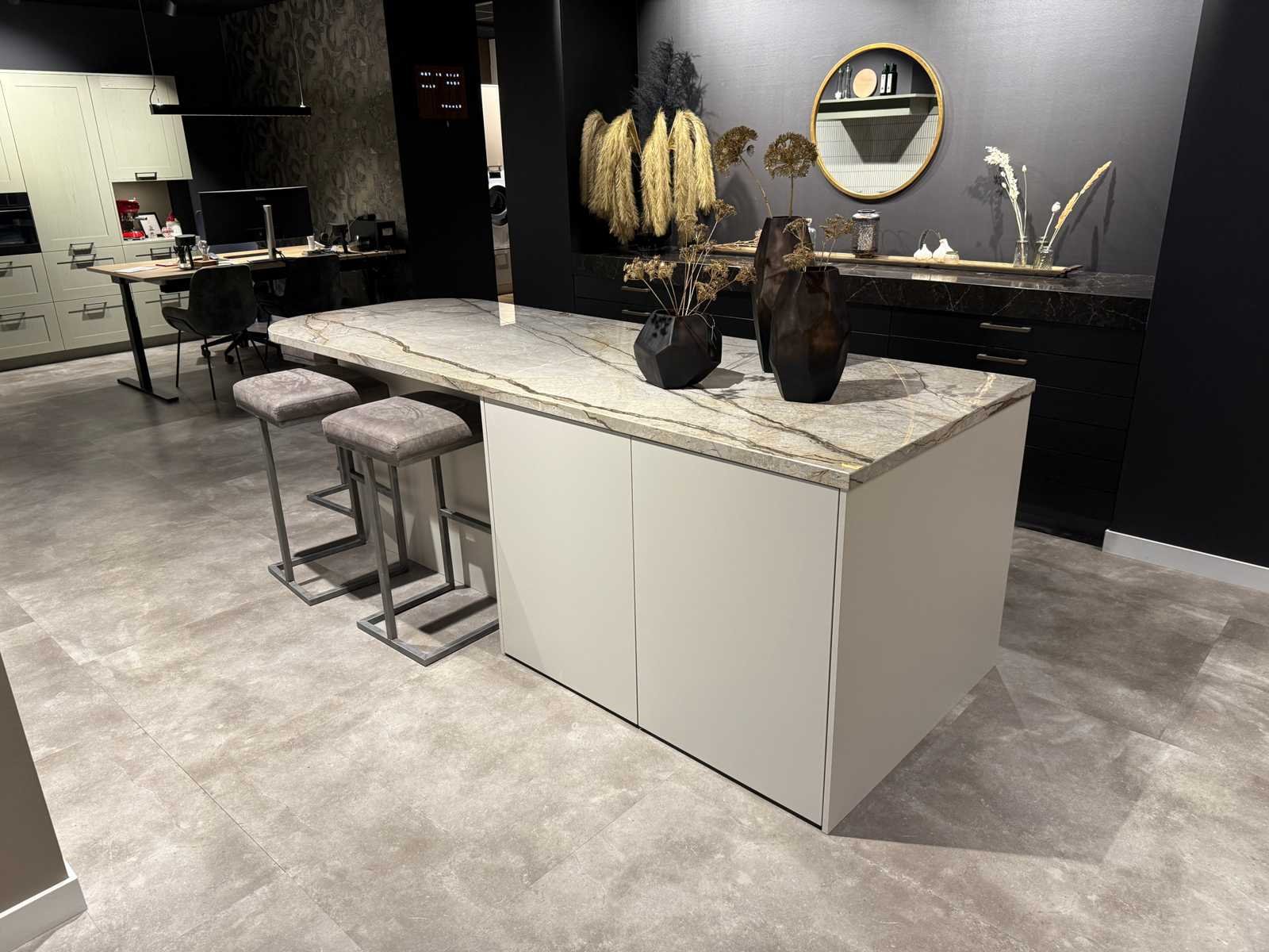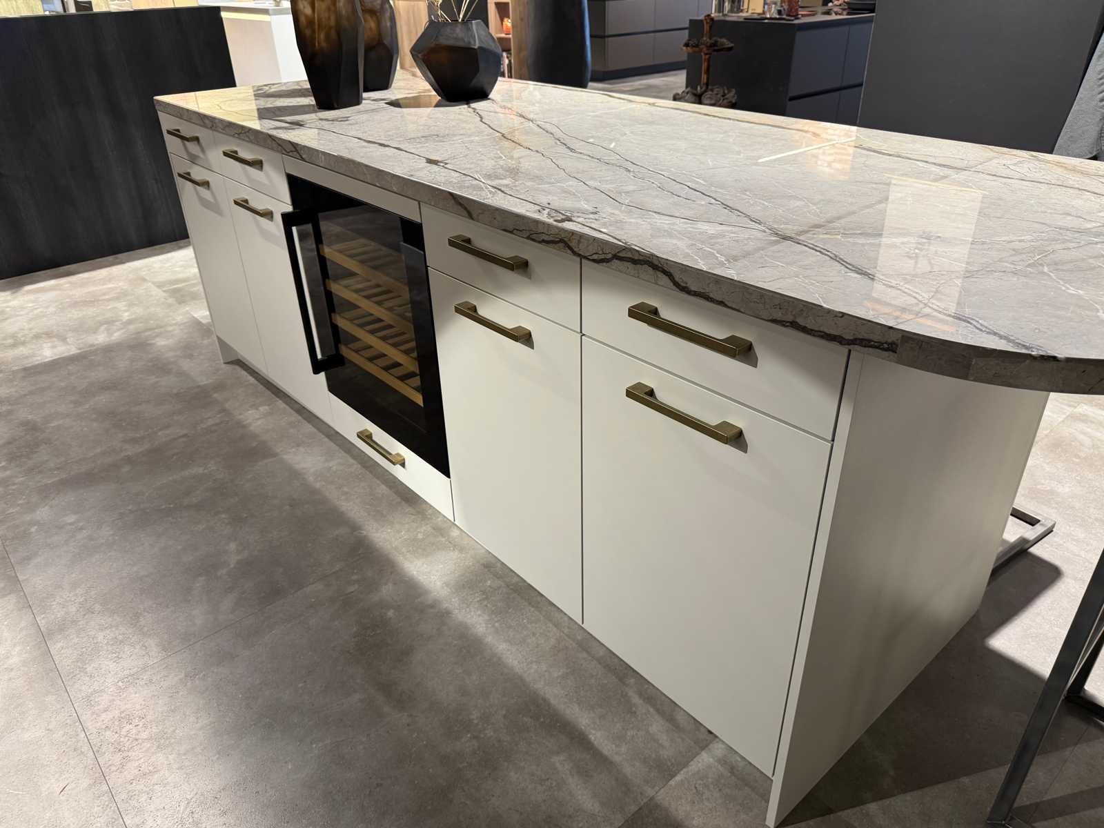 Inclusief wijnkoeler Frilec Berlin-WS1-36-GTE-012FBL; zonder krukken; reeds gedemonteerd en ingepakt op pallets. (afstapelen, omruilen of statiegeld per pallet); Pallets zijn niet inbegrepen; statiegeld betalen bij afhalen, of pallets afstapelen; werkblad niet ingepakt op pallets (25-HNG-02568) Nee Merk: Pronorm Type keukenopstelling: Eiland Aanrechtblad: Marmer Softclose: true Lengte kookeiland: 270cm Breedte kookeiland: 105cm Hoogte kookeiland: 94cm Kleur: Sahara beige