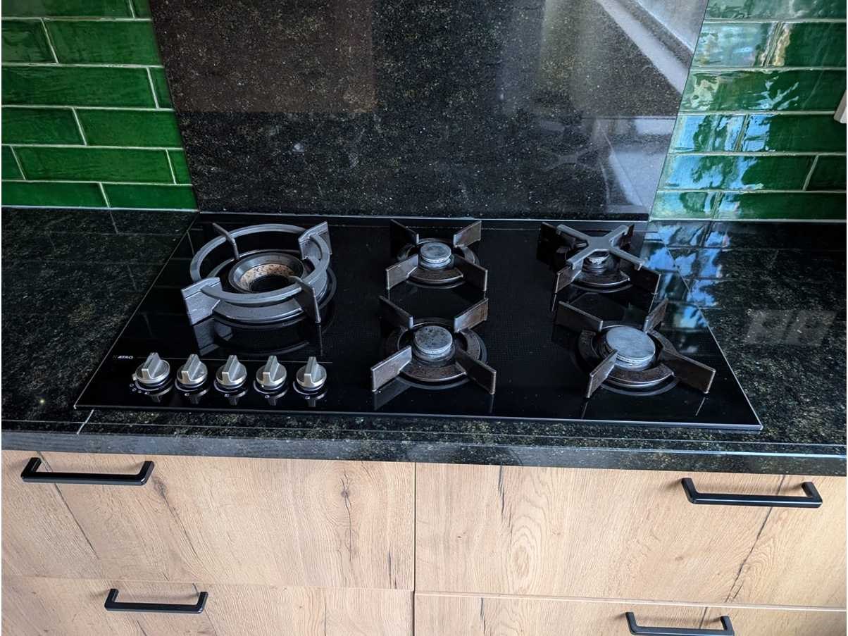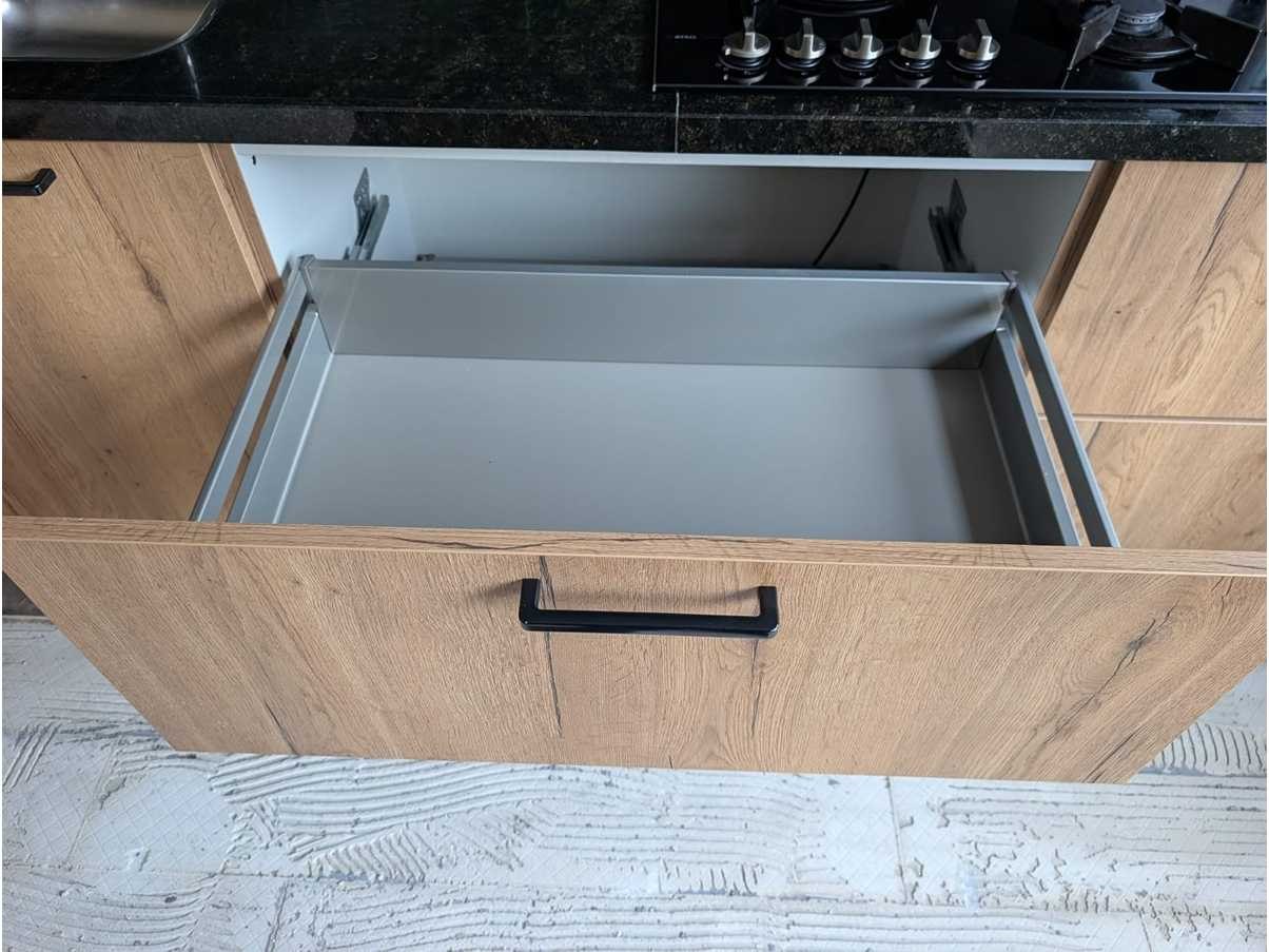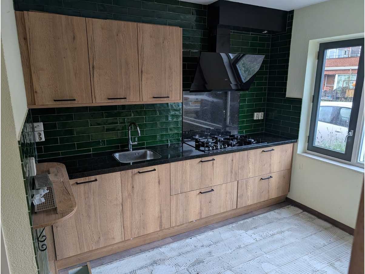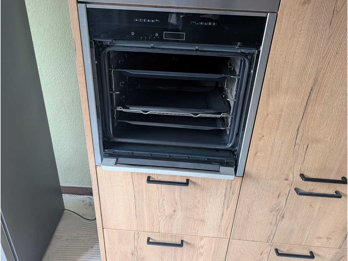 Conditie gebruikt; Blad beschadigd; afmetingen lxb ca. 302x60 cm; hoge kasten lxbxh ca. 125x60x200 cm; Reeds gedemonteerd en ingepakt op pallets. (afstapelen, omruilen of statiegeld per pallet); Pallets zijn niet inbegrepen; statiegeld betalen bij afhalen, of pallets afstapelen; werkblad niet ingepakt op pallets Nee Aanrechtblad: Steen zwart Magnetron: Whirllpool Fornuis: Atag Koelkast: niet aanwezig Vriezer: niet aanwezig Softclose: true Oven: Neff Afzuigkap: AEG Vaatwasser: Bosch Hoofdkleur: Houtkleur