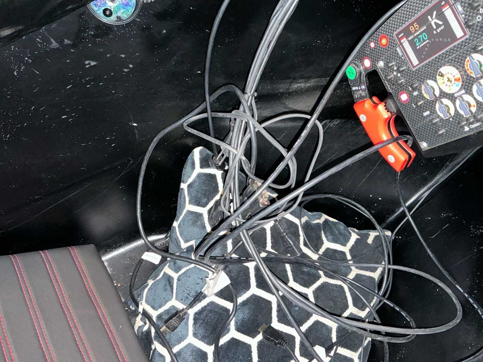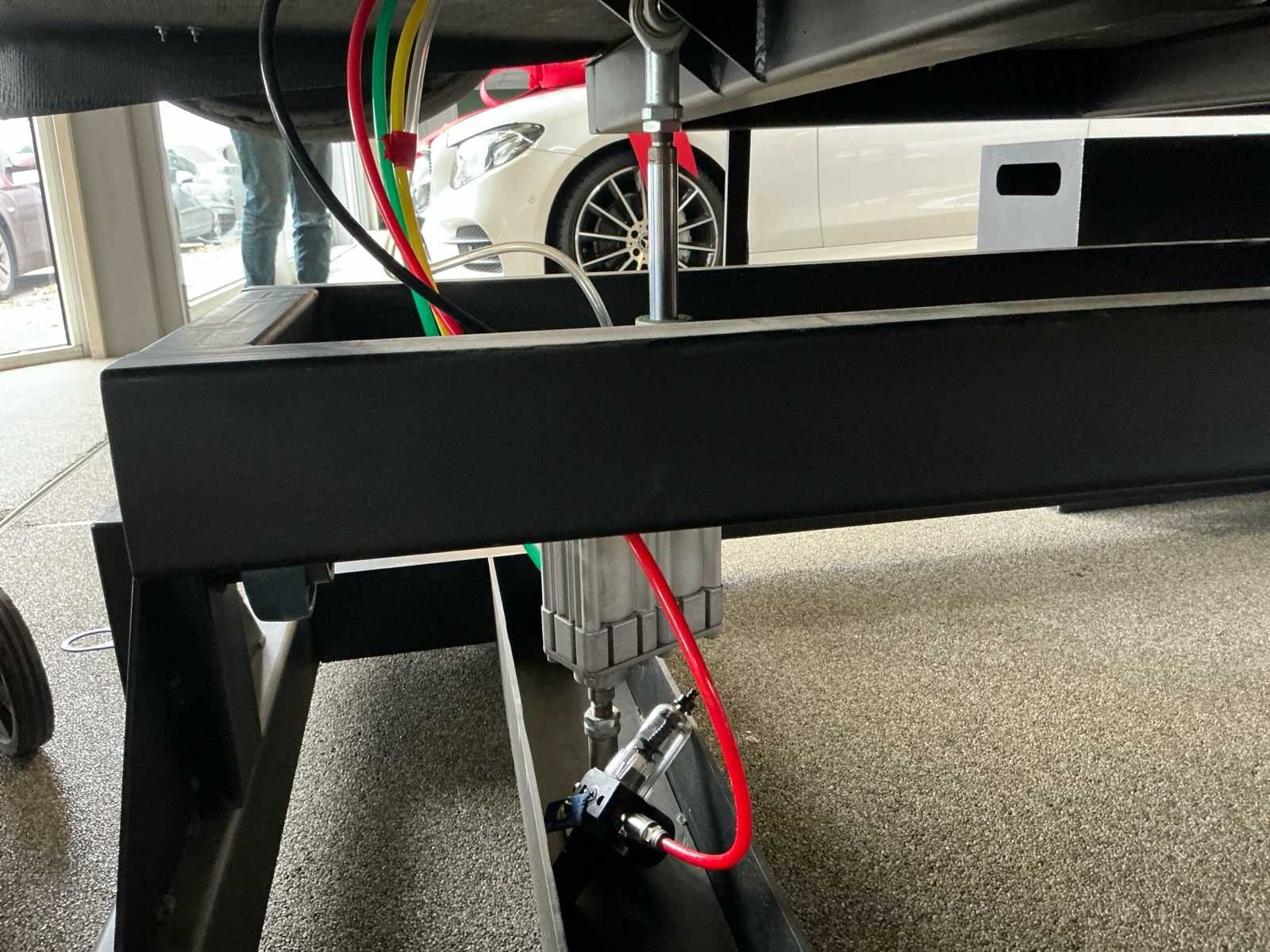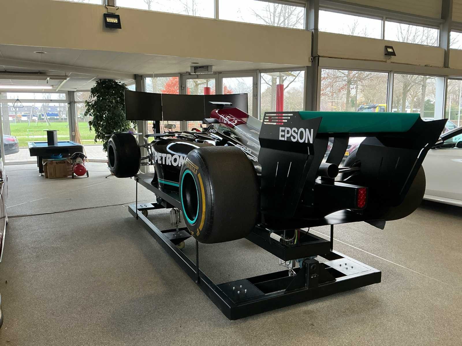 Voorzien van Einhell compressor, Kolink KLA-002 PC, Rapoo k2800 keyboard en 3x Samsung 27inch curved monitor. Onderstel van pneumatische cilinders Pirelli P Zero F1 medium compound banden. Verrijdbaar onderstel. Nee Lengte: 5100 Breedte: 1900 Hoogte: 1800