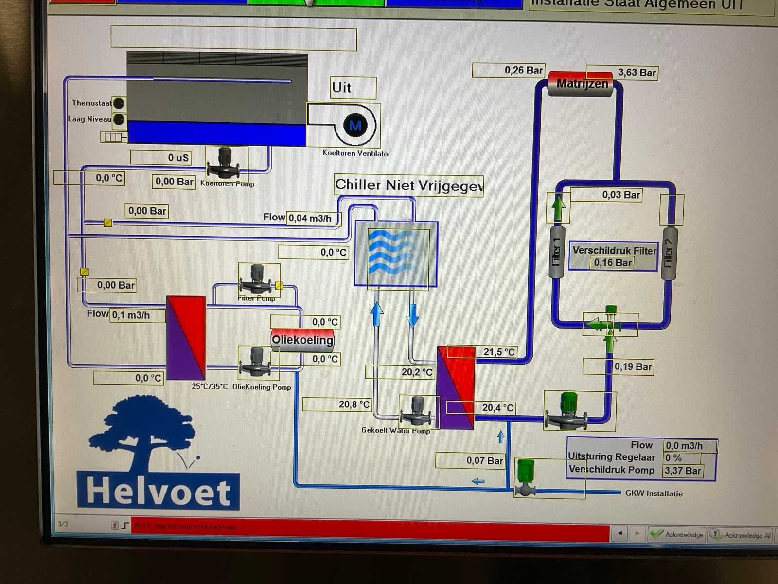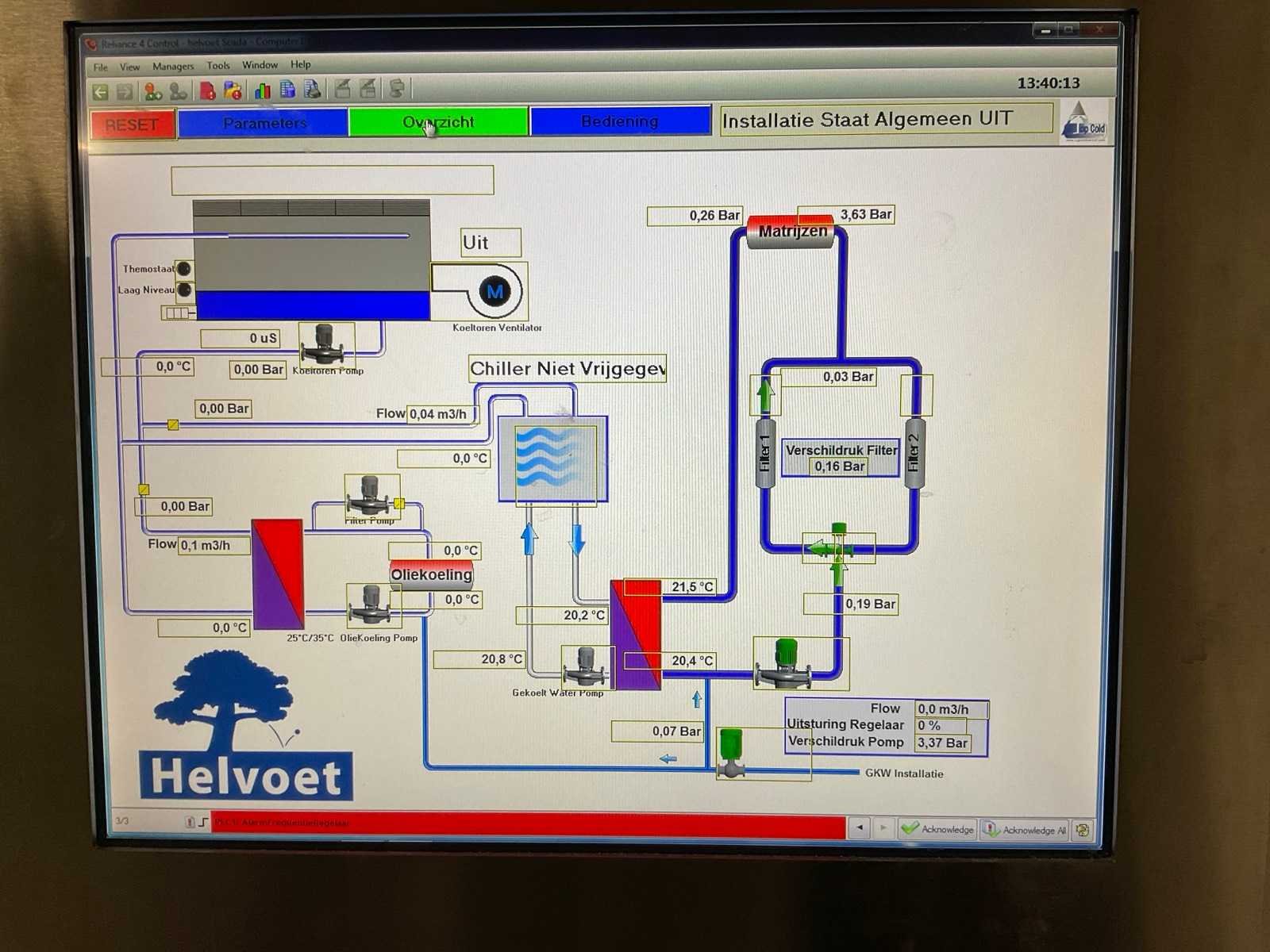 Voorzien van: Alfa Laval T8-BFM warmtewisselaar, pomp met AEG 15Kw elektromotor, Eco optidrive Invertek frequentieregelaar, TFT solutions 19” touchscreen bedieningspaneel (120GB), Windows 7, Reliance 4 Control programma/software, rvs frame Nee Totale afmeting Breedte: 1810mm Totale afmeting Hoogte: 2080mm Totale afmeting L: 850mm