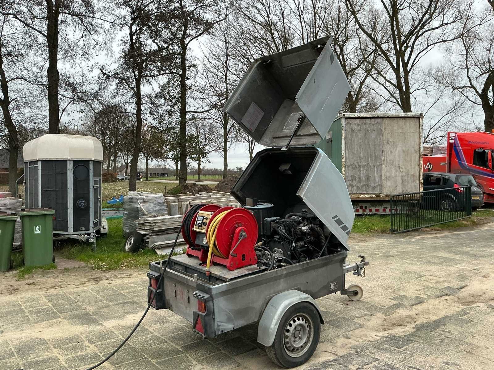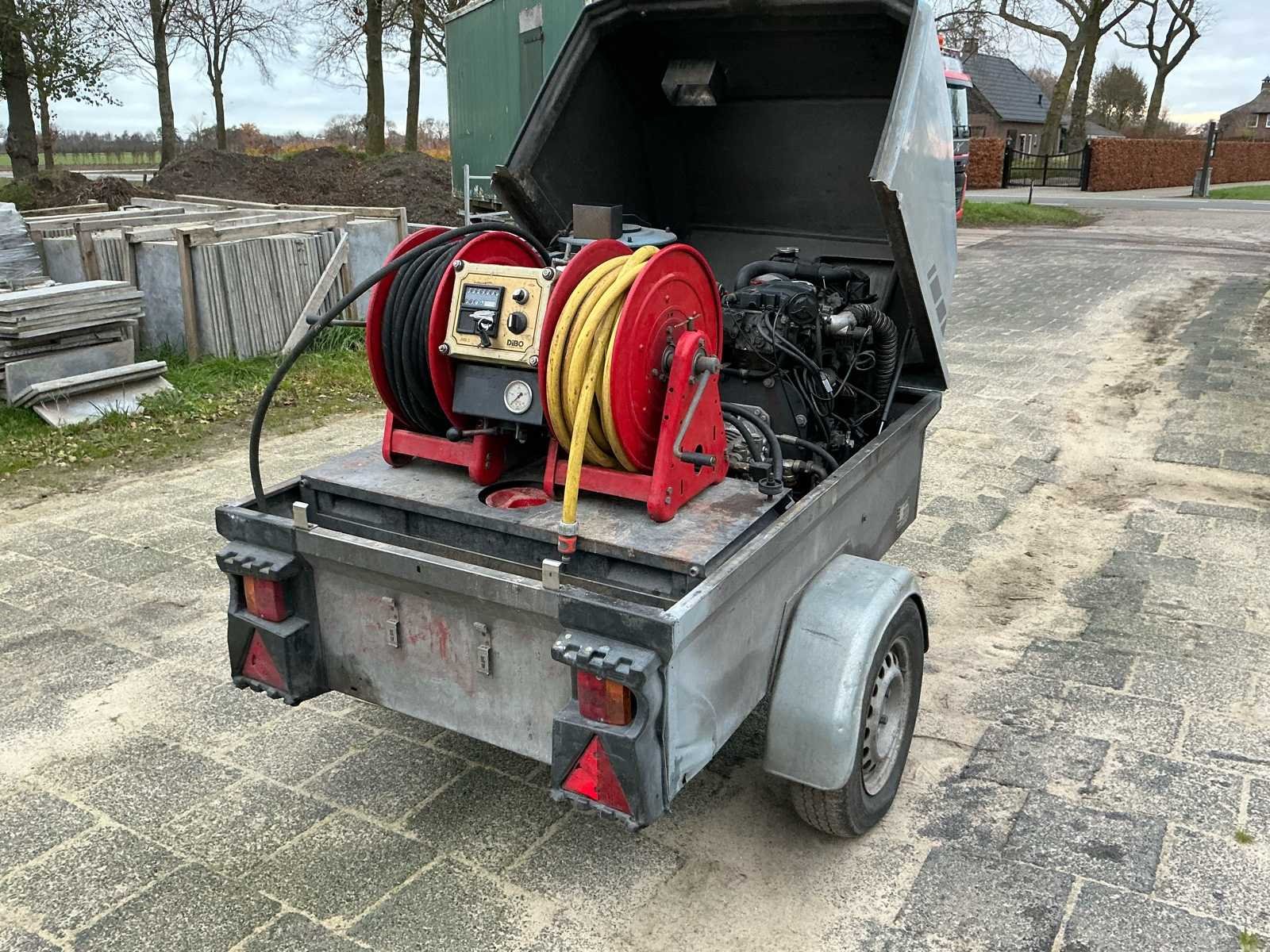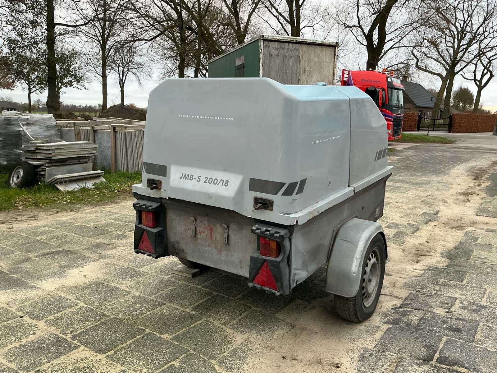 Werkend, op een Saris aanhangwagen Nee Merk: Dibo Type: JMB-S 200/18 Maximale werkdruk: 200bar Temperatuurbereik min.: 30°c Temperatuurbereik max.: 110°c Capaciteit.: 1080l/hr Dieselgestookt: true Mobiel: true Vermogen: 70kW Eigen gewicht: 705kg